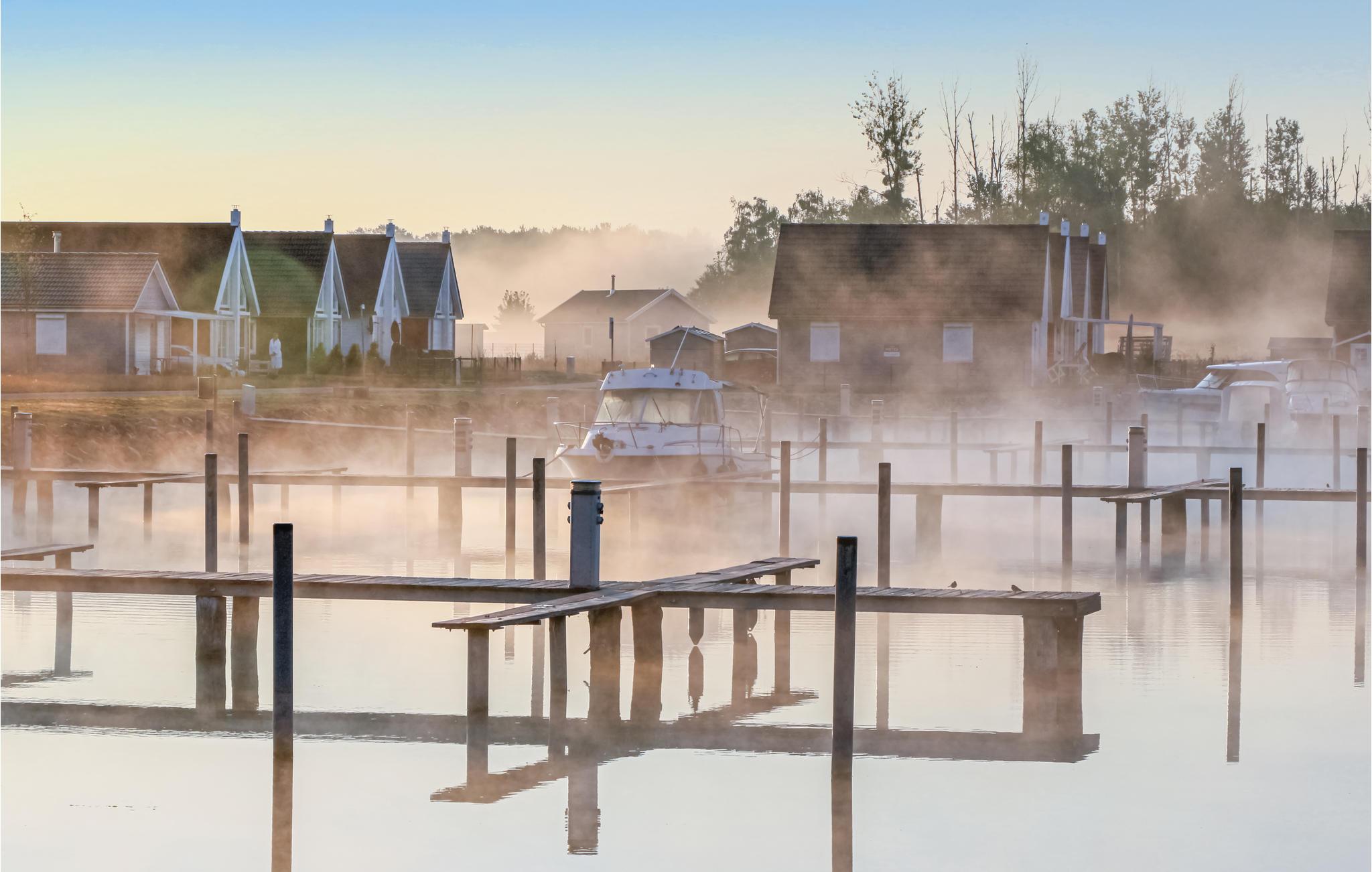 Det hyggelige og smagfuldt indrettede træferiehus ligger tæt ved vandet og byder på en vidunderlig udsigt over landskabet. Gennem de enorme panoramavinduer, der strækker sig fra gulv til tag, falder udsigten over det fortryllende landskab igen og igen og alle vegne fra. På alle tider af året kan I finde jer tilpas efter lange dage i naturen i den hyggelige stue i stueetagen. Når temperaturen falder, er der ikke noget hyggeligere end at læse en bog foran den brusende pejs eller lave mad og spille brætspil med familien.