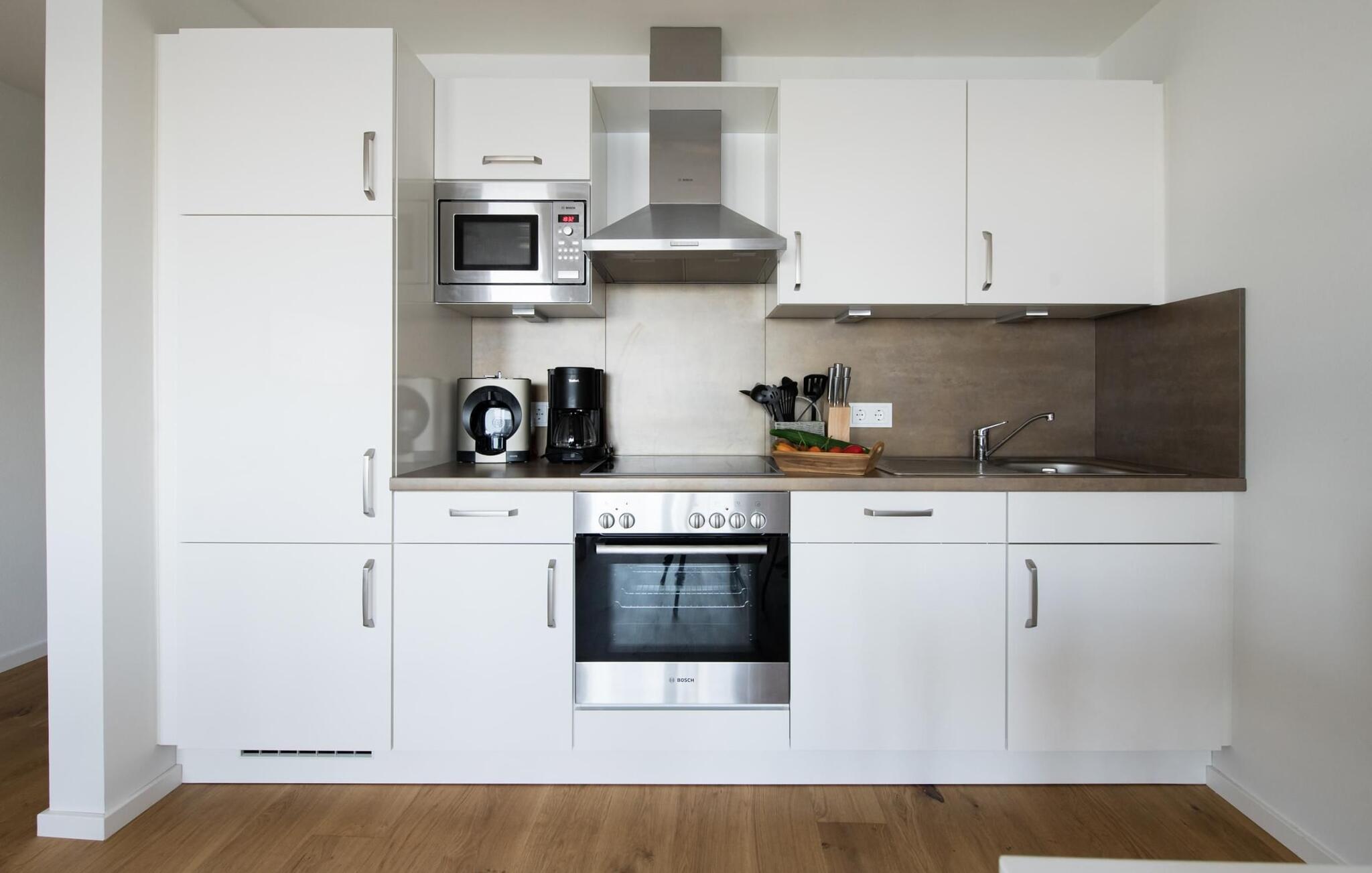 Det omfattende udstyret åbne køkken lader intet tilbage at ønske. Her kan man fremtrylle lækre feriemåltider. Altanen indbyder til en grillaften med udsigt til vandet.