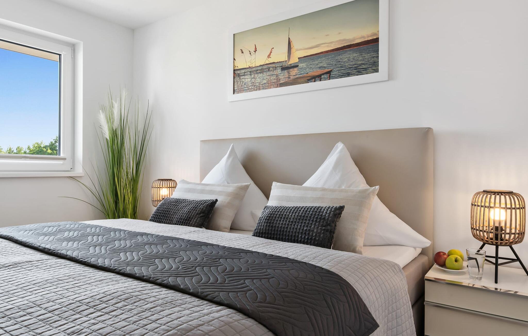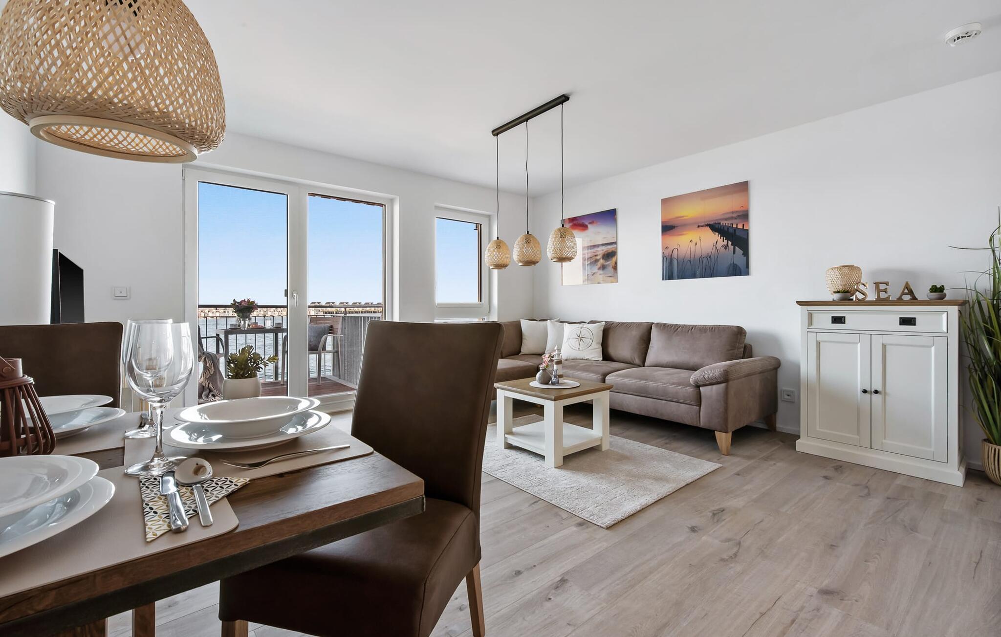Havnebiograf i fuld effekt: I kan nyde en betagende HAVNEUDSIGT over feriestedets lystbådehavn, østersøfjorden Slien, vores flydende huse og Schimmelünde fyrtårn. Afslut dagen med en af jeres yndlingsromaner ledsaget af en billedskøn solnedgang. Den stilfuldt indrettede ferielejlighed nær vandet ligger direkte på havnepromenaden i OstseeResort Olpenitz og byder på de bedste muligheder for at gå en tur med et voksende udvalg og korte afstande til indkøb. Sandstranden Weidefelder kan også nås hurtigt og giver mulighed for lange gåture på ethvert tidspunkt af året. Lejlighedens eksklusive indretning og udstyr, såsom den vellykkede rumlige forbindelse af det moderne tekøkken til den eksklusive opholdsstue, understreger den hyggelige atmosfære i de rolige omgivelser. I kan se både passere forbi ved indsejlingen til Østersøen fra hele opholds-/spiseområdet og balkonen. EN HARBOR HAVUDSIGT, der er uden sidestykke. Når det kommer til lækre feriemåltider, lader det fuldt udstyrede køkken intet tilbage at ønske. Så nyd de færdige lækkerier på altanen eller start en hyggelig grillaften. Ferielejligheden har soveværelse med dobbeltseng. Her finder I endnu et TV. Det smukke badeværelse har en moderne bruseniche i gulvniveau, en vaskemaskine og et stort spejl. Til lejligheden hører parkeringsplads, hvorfra lejligheden på 1. sal kan nås nemt og barrierefrit via elevator. Vores yndlingssted: Fra balkonen med udsigt til himlen kan I sætte fødderne op og, bevæbnet med en bog, nyde solnedgangen med lyden af havet... Bemærk venligst: OstseeResort Olpenitz er meget populært, og der bygges fortsat i parken. Ikke desto mindre kan I se frem til en 5-stjernet standard og et førsteklasses ophold. Byggeaktiviteterne kommer ikke til at forstyrre jer på ferien, og derfor gives der ikke yderligere afslag i prisen.