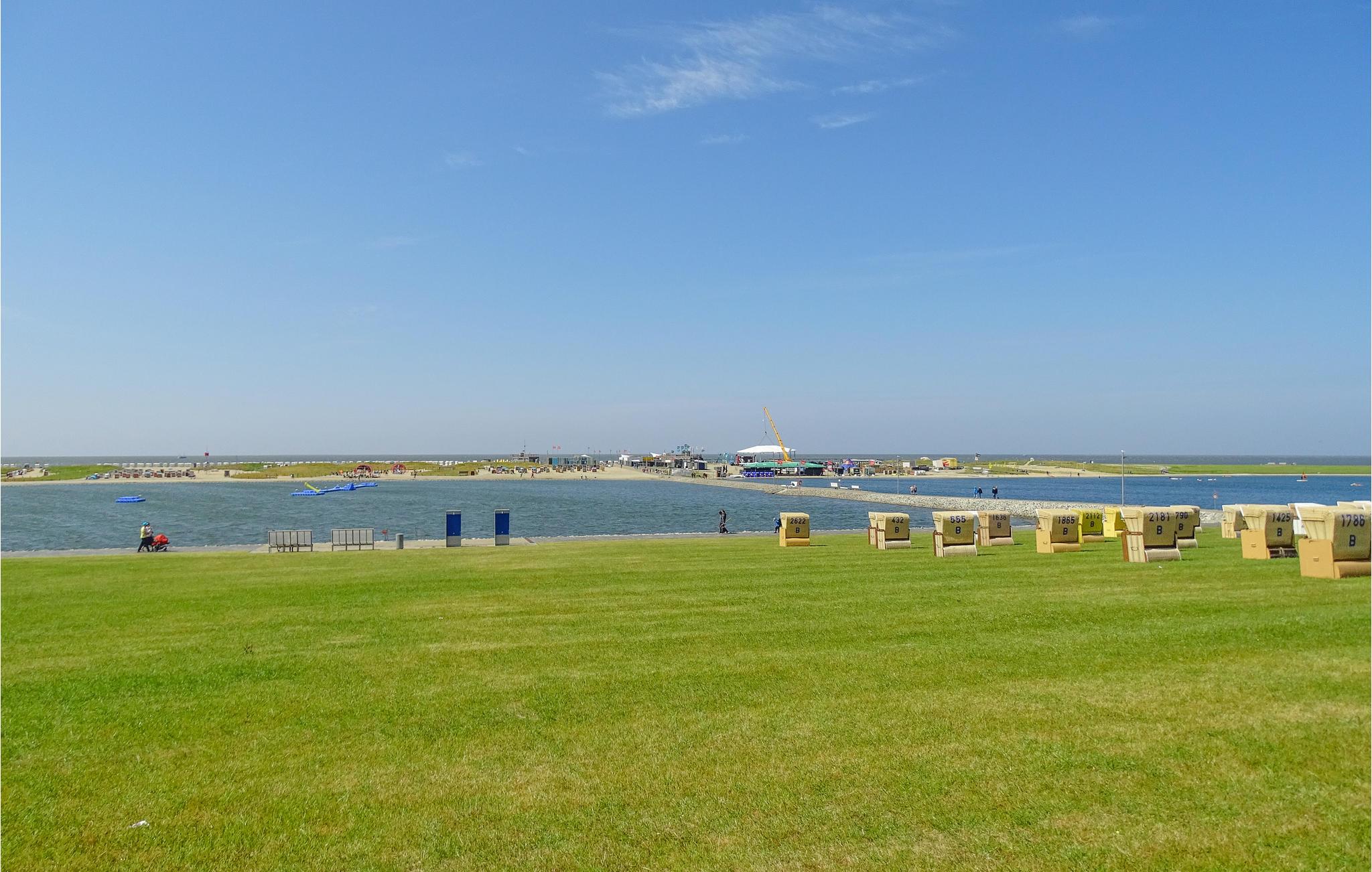 Büsum er et feriested i vækst og er frem for alt præget af Perlebucht og dens traditionelle havn. Vandsportelskere og badeentusiaster kan slå sig løs i to store separate pools. Der er et udvalg af legeredskaber, klatrestativ, gynger og meget mere til børn. Selvfølgelig er her også volleyball- og strandfodboldbaner. Talrige grillpladser, picnicpladser, bænke og et serviceområde med forplejningstilbud giver plads til hyggeligt samvær. På promenaden kan I slentre og slappe af direkte langs kysten.
