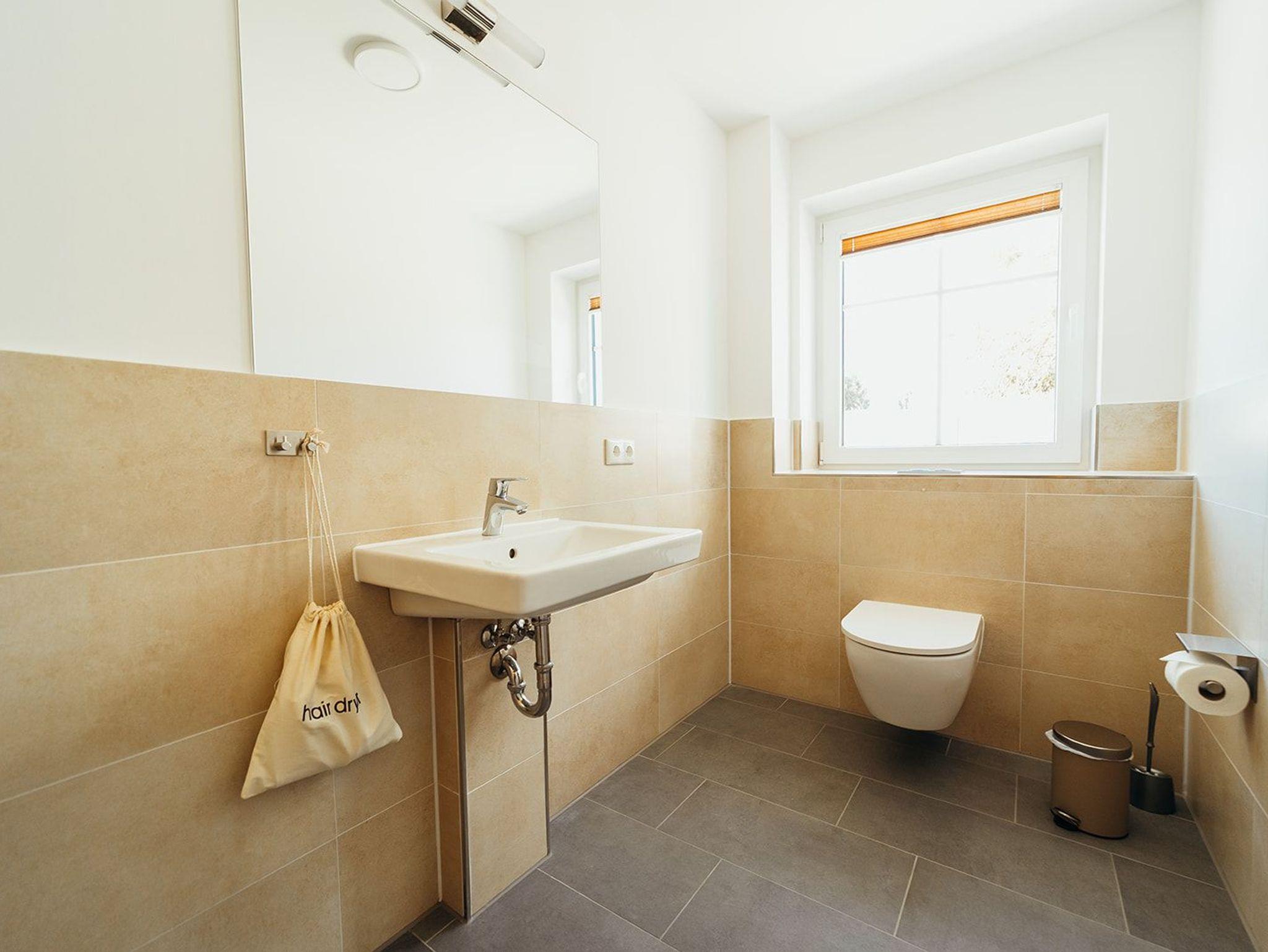 Herzlich Willkommen in dieser schönen, ebenerdigen 3 Zimmer-Neubauwohnung. Die Wohnung liegt im tiefpaterre, hat ca. 64m² Wohnfläche und verfügt über 2 Schlafzimmer. Vom Flur aus gelangt man in ein anheimelndes Wohn-Esszimmer mit integrierter, voll ausgestatteter Küchenzeile und einer Terrasse, die die Möglichkeit, Speisen in freien einzunehmen, bietet. Links vom Korridor aus, geht es in einen großzügigen Wohnraum, rechts findet man ein Duschbad/WC mit angrenzendem Schlafzimmer, geradeaus befindet sich ein Gäste/WC mit danebenliegendem Schlafzimmer. Die Schlafzimmer verfügen über Boxspringbetten. Ein Hund ist gegen eine Gebühr erlaubt.