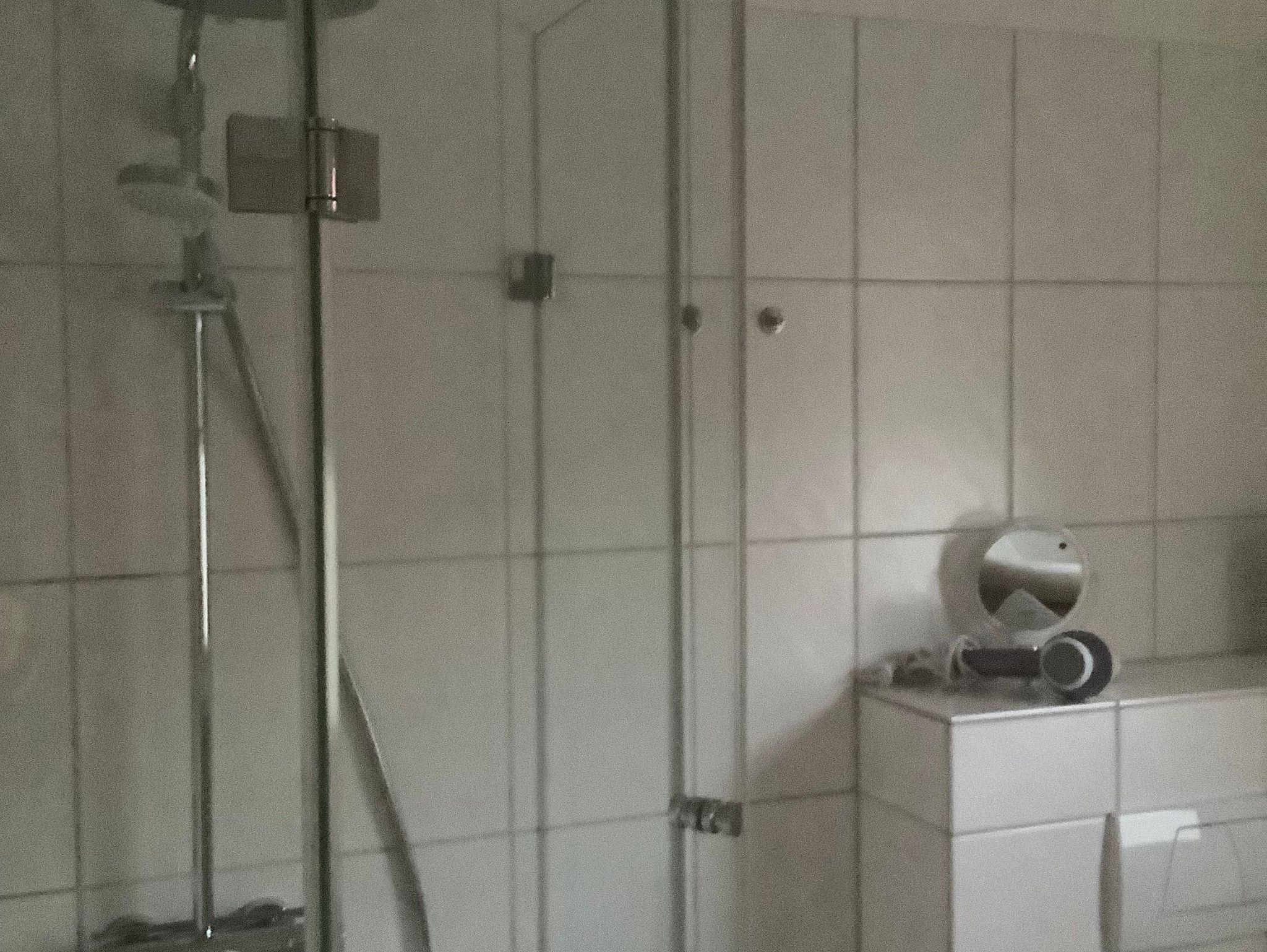 - ein großes Badezimmer mit Außenfenster sowie Fußbodenheizung + Regendusche + beheiztem Handtuchhalter und Föhn --> parkseitig