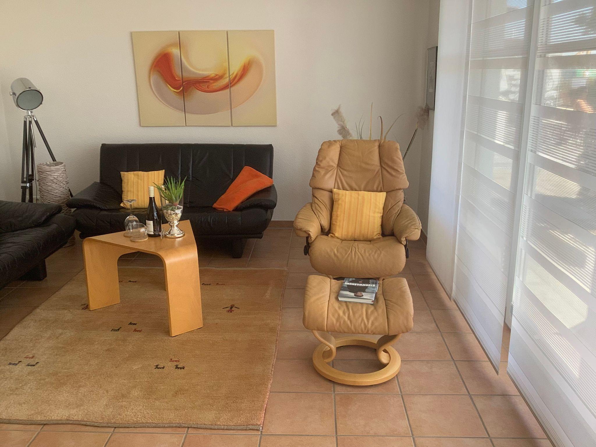 - weitere Ausstattungen: Verdunkelung mit Plisees + Schiebevorhänge/Raffrollo, Terrassenmöbel und Liegen mit Sonnenschirm, Rauchmelder in allen Räumen.