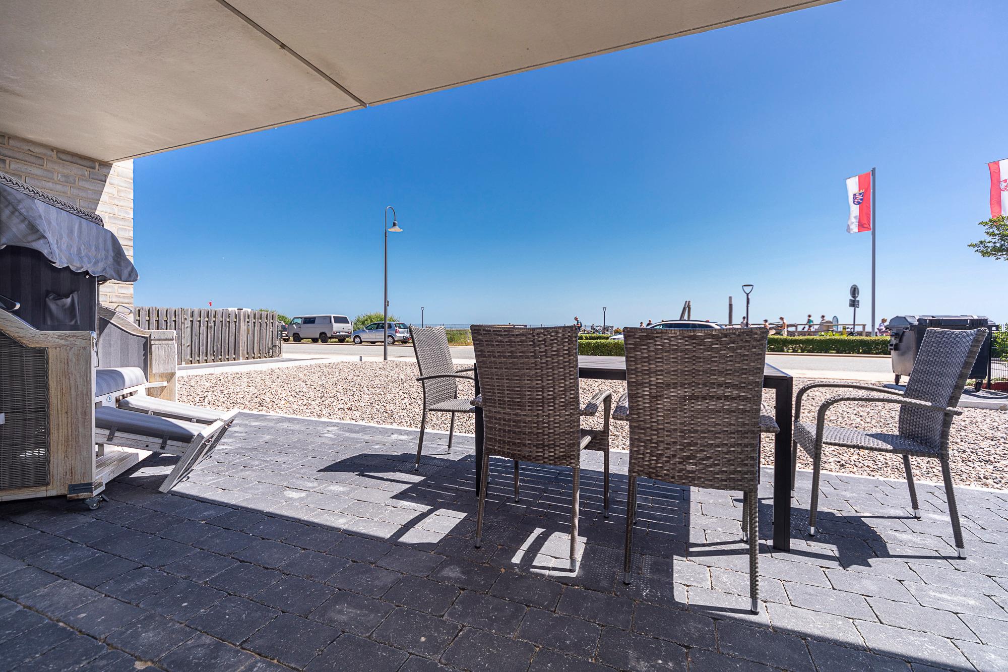 3-Zimmerwohnung, ca. 102 m², mit zwei Bädern, Terrasse und Meerblick.[nbsp] Kfz-Stellplatz und eine E-Ladestation (kostenpflichtig und saisonbedingt) befinden sich auf dem hauseigenen Parkplatz.