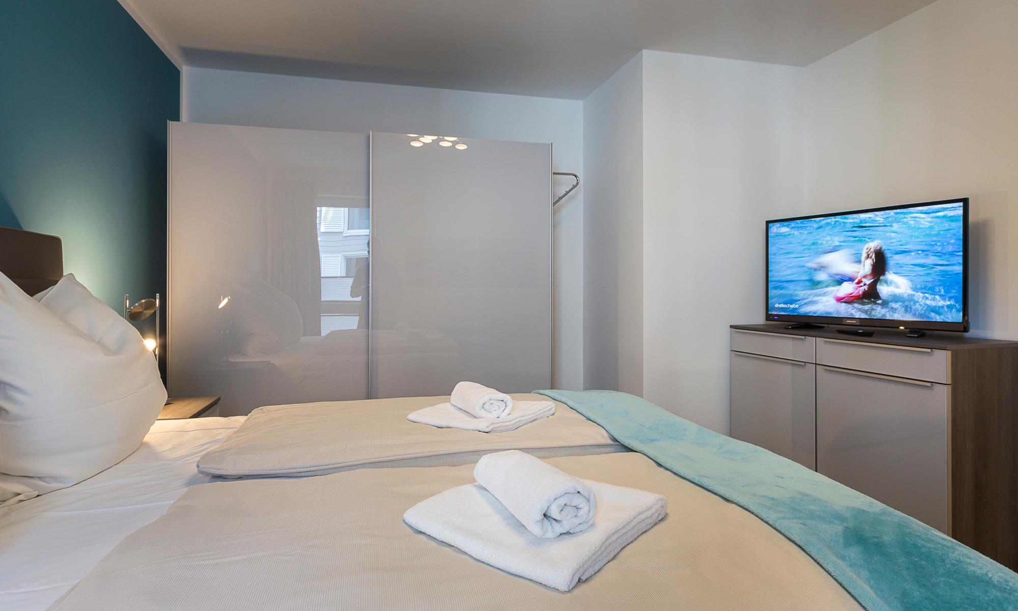 Es erwartet Sie eine hochwertig eingerichtete, barrierefreie Wohnung mit 74m² Wohlfühlfläche. Der Wohnbereich ist mit Massivholzschränken möbliert, das Kuschelsofa – welches zur hochwertigen Schlafstätte umgebaut werden kann – und der Ohrensessel werden zu Ihren Lieblingsplätzen gehören. Das Schlafzimmer ist mit einem Schlaraffia-Boxspringbett (1,90 m x 2,00 m) und LED Fernseher ausgestattet. Neben einer technisch voll ausgestatteten offenen Küche, inkl. modernster NEFF-Geräte, einem gemütlichen Essbereich, der zum Verweilen einlädt, gewährt Ihnen das großzügige und helle Wohnzimmer Behaglichkeit und Unterhaltung mit einem UltraHD-Smart-Flatscreen und einer HiFi-Anlage. Zudem steht Ihnen in der gesamten Wohnung kostenloses WLAN zur Verfügung. Die im ersten Stockwerk gelegene 74m² große Wohnung ist bequem mit dem Fahrstuhl zu erreichen.
