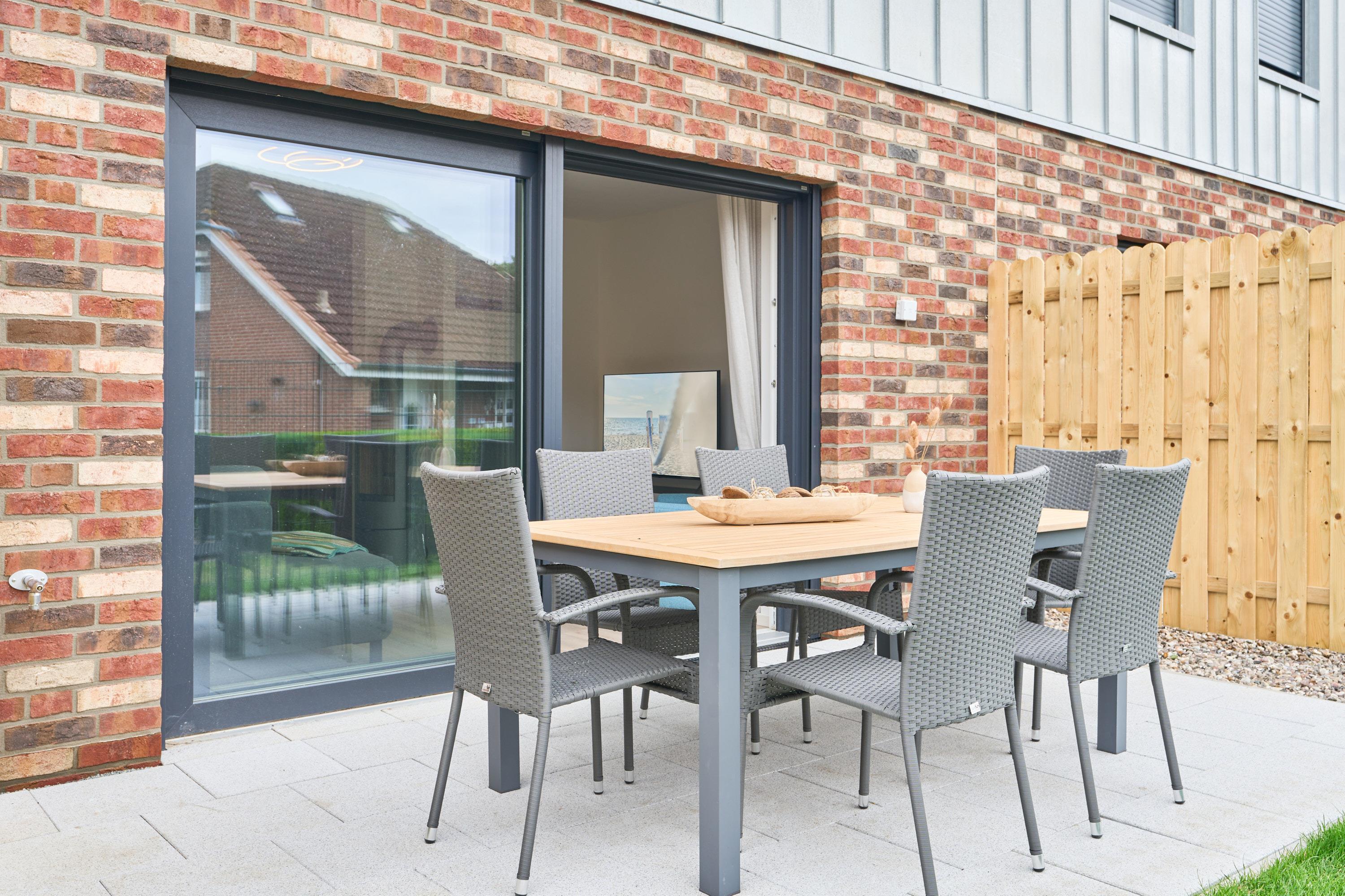 Großzügiges Ferienhaus, Pkw-Stellplatz direkt am Haus, mit Ladestation für E-Fahrzeuge. Abstellraum im Keller. Kurze Wege in den Kurpark sowie an den Strand.