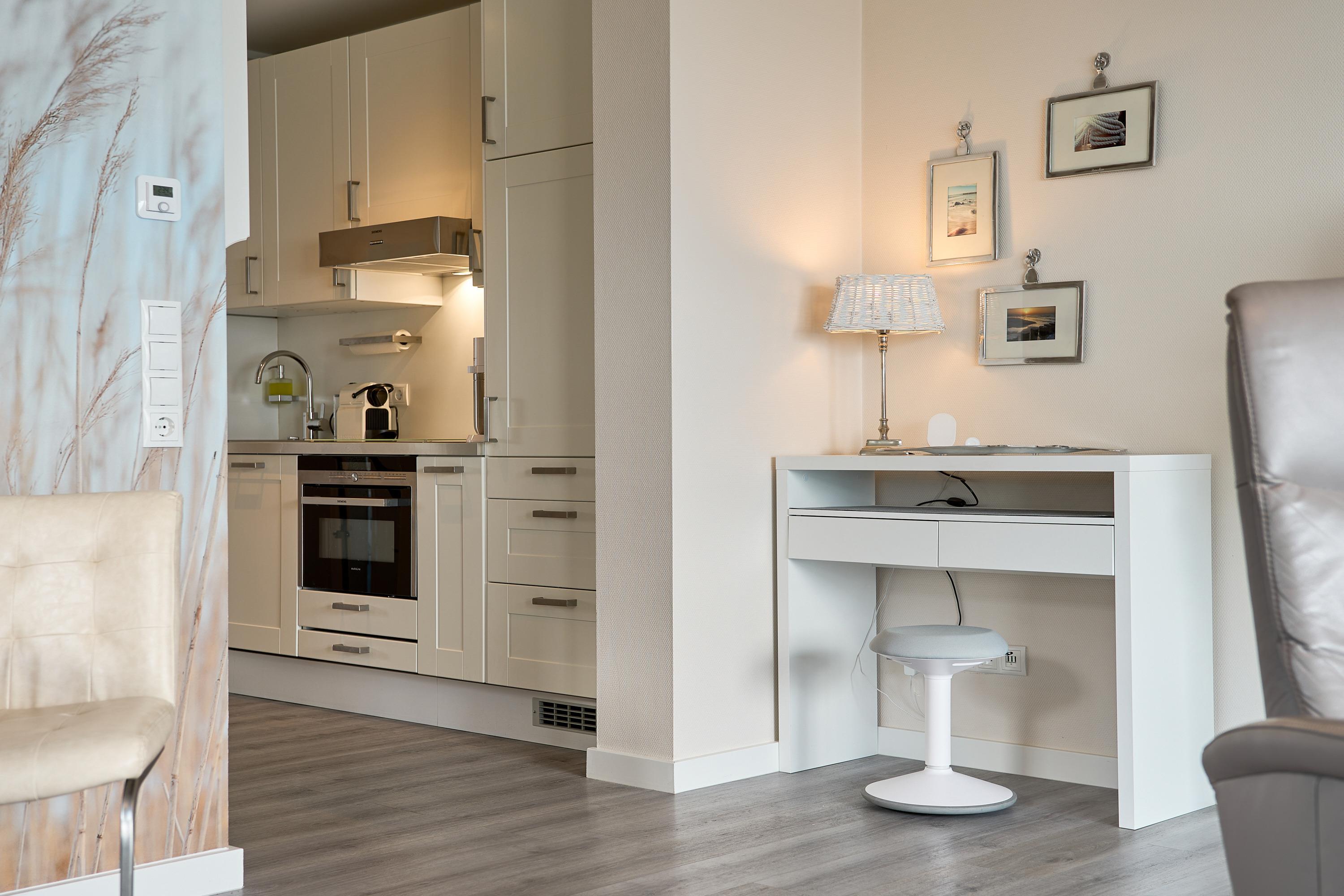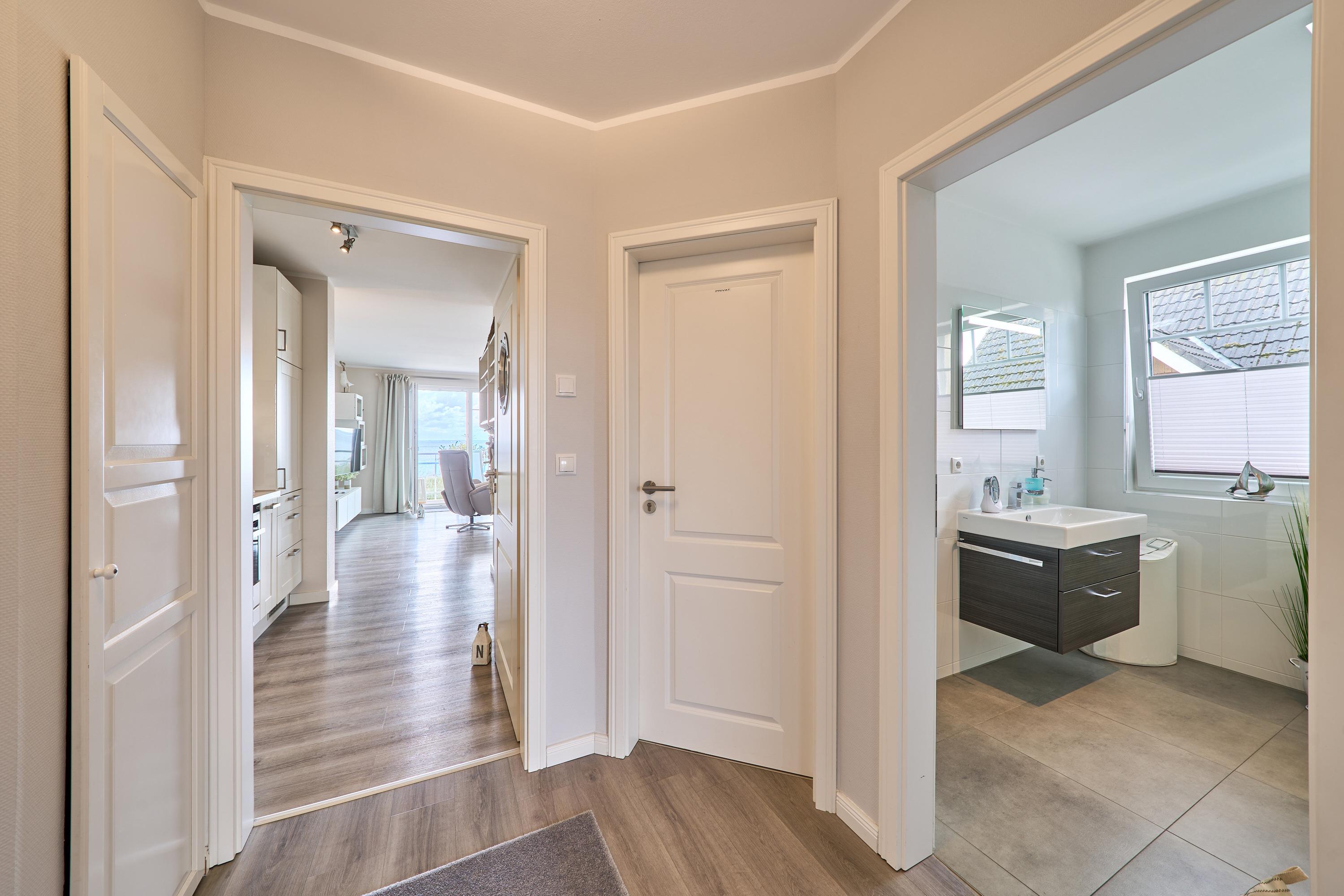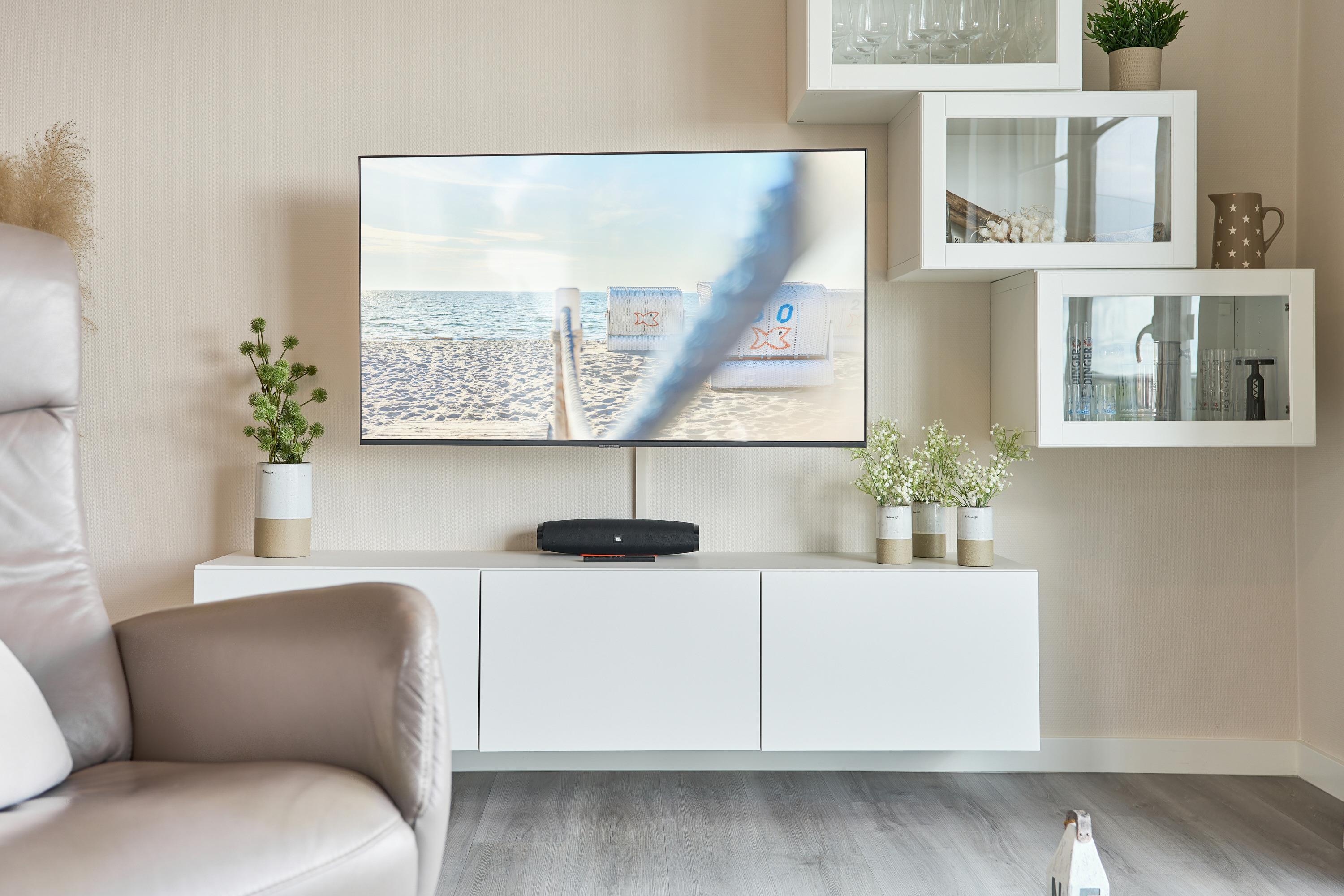 Die schöne Ferienwohnung Maison Baltique ist modern und freundlich eingerichtet. Vom offenen Wohn-Essbereich haben Sie einen direkten Blick auf die Ostsee. Die Küchenzeile ist mit einer Kaffeemaschine sowie einer Nespresso Maschine und einem Wasserkocher ausgestattet. Geschirrspüler, Kombigerät Backofen mit Mikrowelle, Ceran-Kochfeld und Kühlschrank sind für Sie vorhanden. Der Wohn- und Essbereich verfügt über einen Essplatz mit Meerblick sowie einen gemütlichen Sitzbereich mit Eck-Couch und einen bequemen Relax-Sessel sowie einem Schreibtisch. Smart-TV, kostenloses WLAN und Bluetooth-Lautsprecher stehen für Sie zur Verfügung. Das Tageslicht Badezimmer verfügt über eine Regendusche sowie einen Handtuchheizkörper und ist mit einer Waschmaschine und Fußbodenheizung ausgestattet. Das Schlafzimmer verzaubert mit einem bequemen Boxspringbett (1,80x2,00m), einem geräumigen Kleiderschrank sowie einem Flat TV. Beide Balkone sind möbliert. Ein Sonnenschutz steht für Sie zur Verfügung. Der Balkon zur Meerseite verfügt zudem über eine elektrische Markise.
