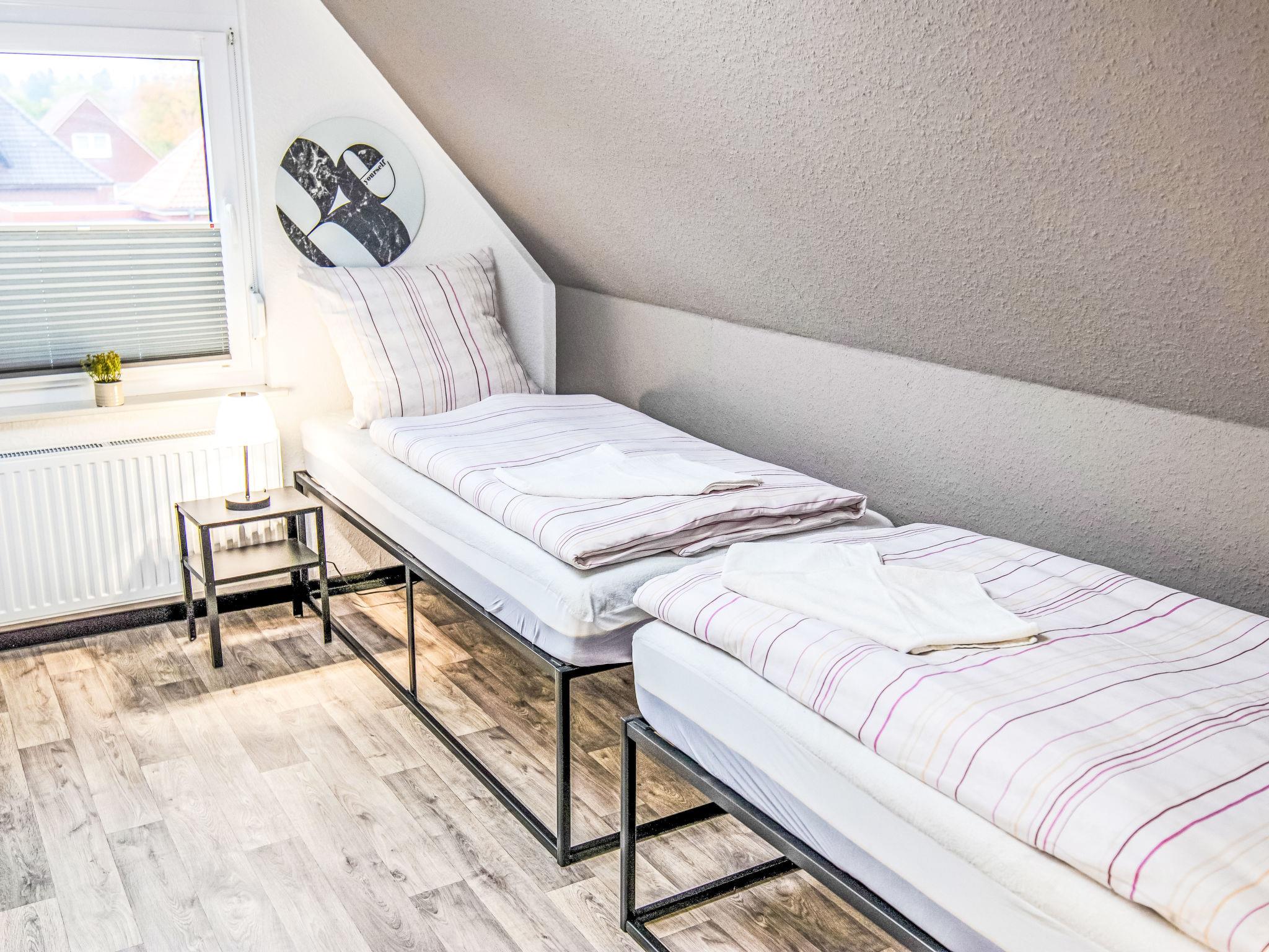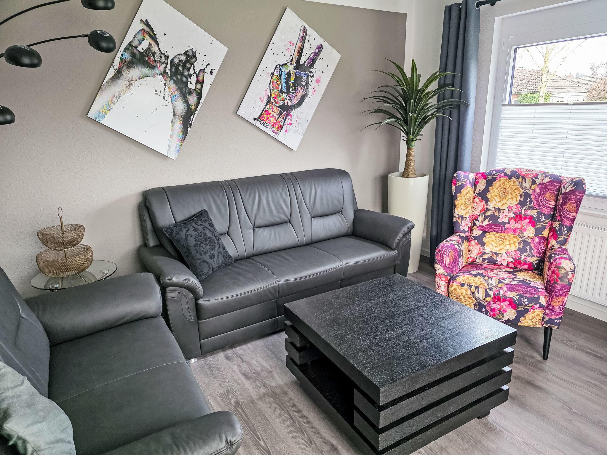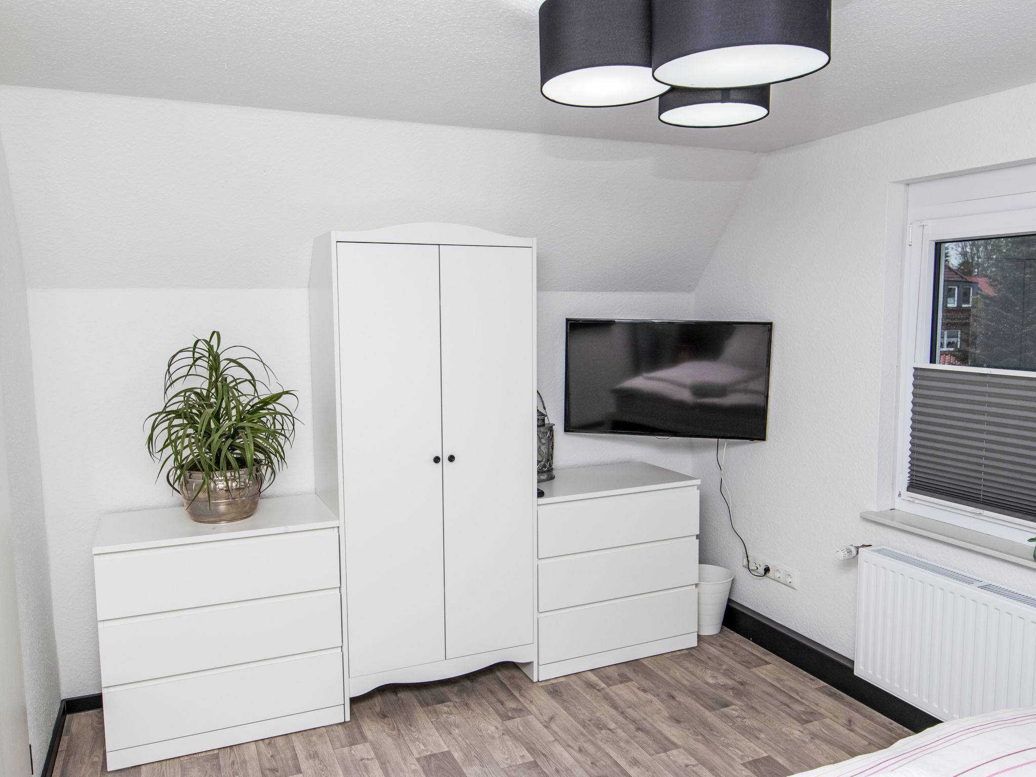 "Seeperle", 4-room house 84 m2 on 2 levels, on the ground floor. Cosy furnishings: living/dining room with satellite TV (flat screen). Exit to the terrace. Kitchen (oven, dishwasher, 4 ceramic glass hob hotplates, toaster, kettle, microwave, electric coffee machine) with dining table. Shower/WC. Upper floor: 1 room with 1 double bed and satellite TV (flat screen). 2 rooms, each room with 2 beds and satellite TV (flat screen). Sep. WC. 2 terraces, garden. Terrace furniture. Facilities: Internet (WiFi). Please note: non-smoking house. Maximum 2 pets/ dogs allowed. Smoke alarm.