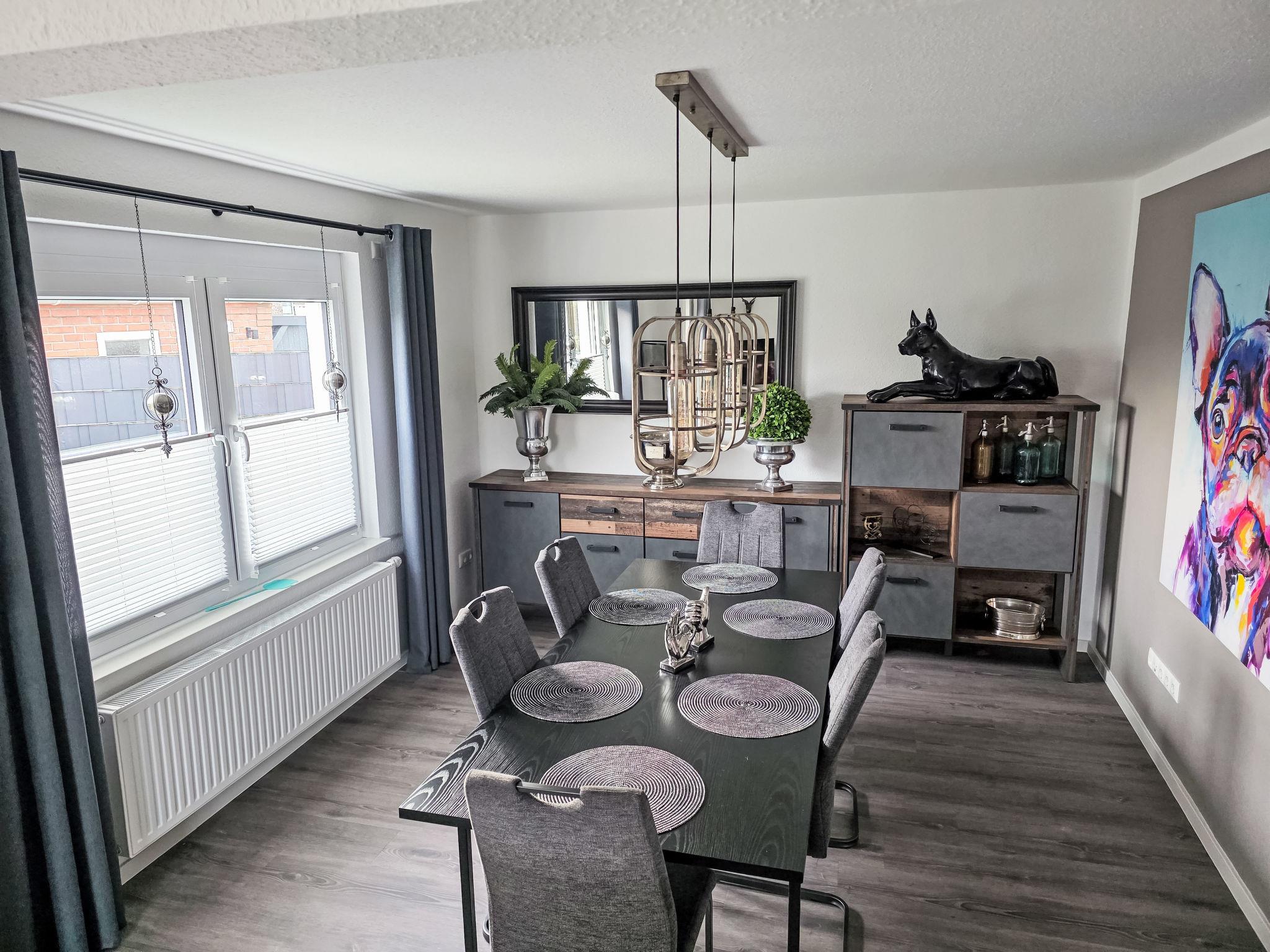 Beautiful single-family house. On the outskirts, 1 km from the centre of Hage, 12 km from the sea, 12 km from the beach. Private: large garden with lawn. In the house: storage room for bicycles, central heating system. Parking at the house. Shop 1.4 km, grocery 1.4 km, restaurant 1.4 km, bakery 1.4 km, bus stop 700 m, railway station "Norden" 9.2 km, ferry "Norddeich" 12 km, sandy beach 12 km, outdoor swimming pool 4.5 km, indoor swimming pool 4.5 km, bathing lake 4.5 km. Golf course (9 hole) 3.1 km, tennis 4.5 km, minigolf 4.5 km. Please note: car recommended.