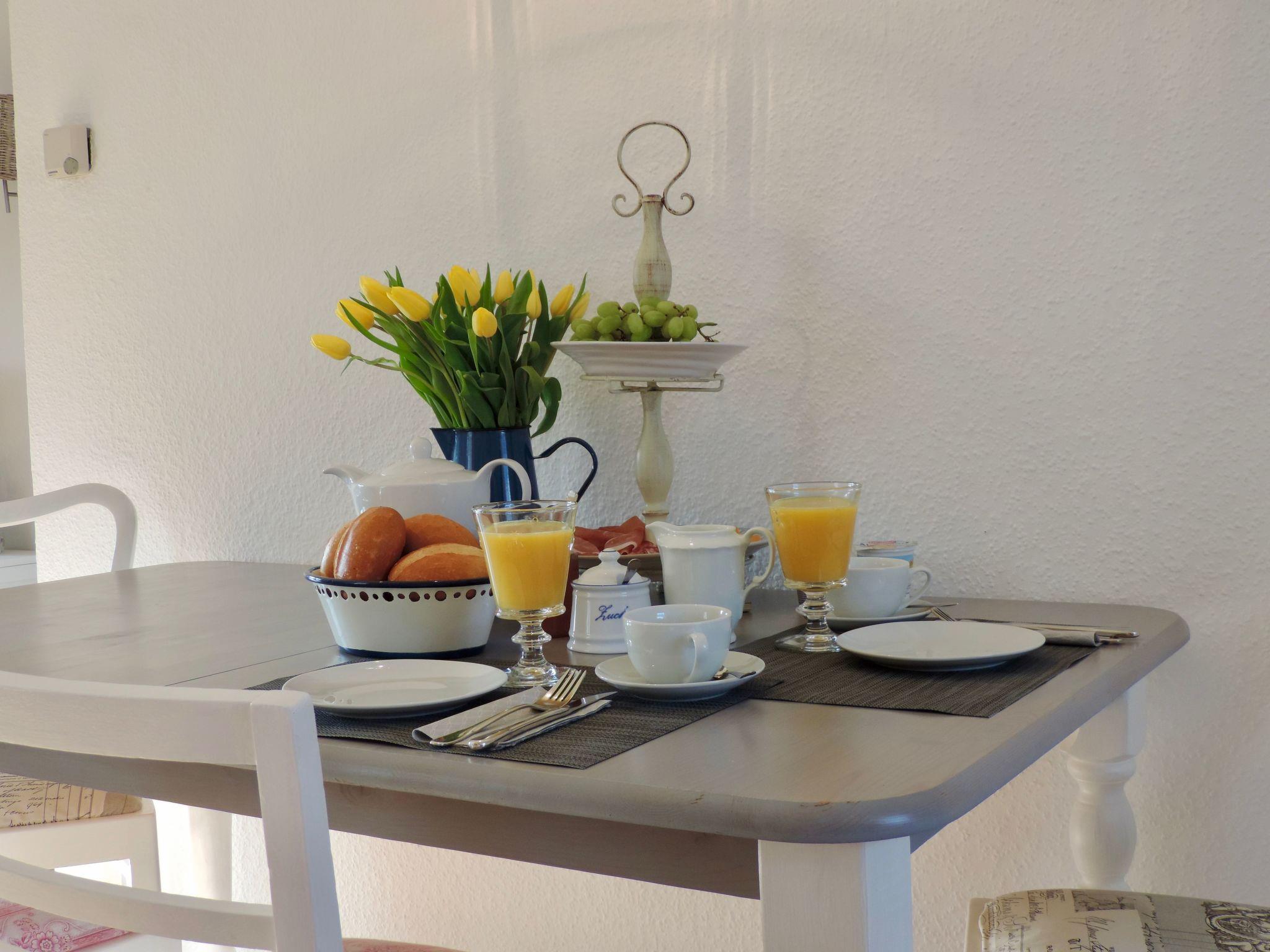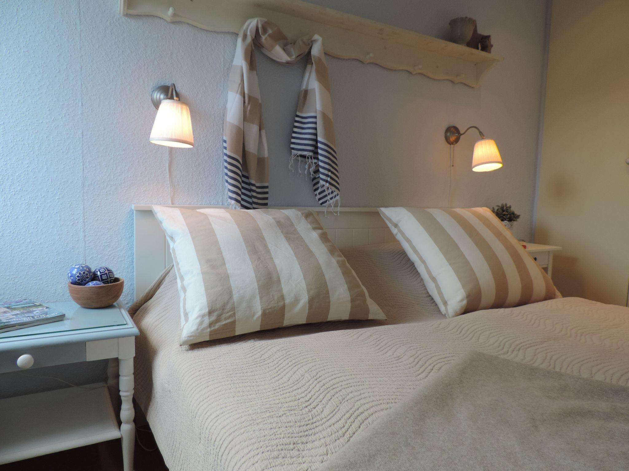 Our lovingly furnished holiday home has a bedroom with a double bed measuring 180 cm x 200 cm. The bathroom was renovated in 2017 and has a walk-in shower and plenty of shelves and storage space for your cosmetics. The kitchen is excellently equipped and has an electric cooker, dishwasher, fridge with freezer compartment and many other things that belong in a kitchen. The light-flooded living room has a sofa set that can also be converted into a bed as well as an armchair, TV, DVD player and radio. In the adjoining dining and reading area, the wood-burning stove invites you to spend cosy evenings reading, especially in winter. The house has W-Lan, 2 bicycles, barbecue grill and leaves nothing to be desired.