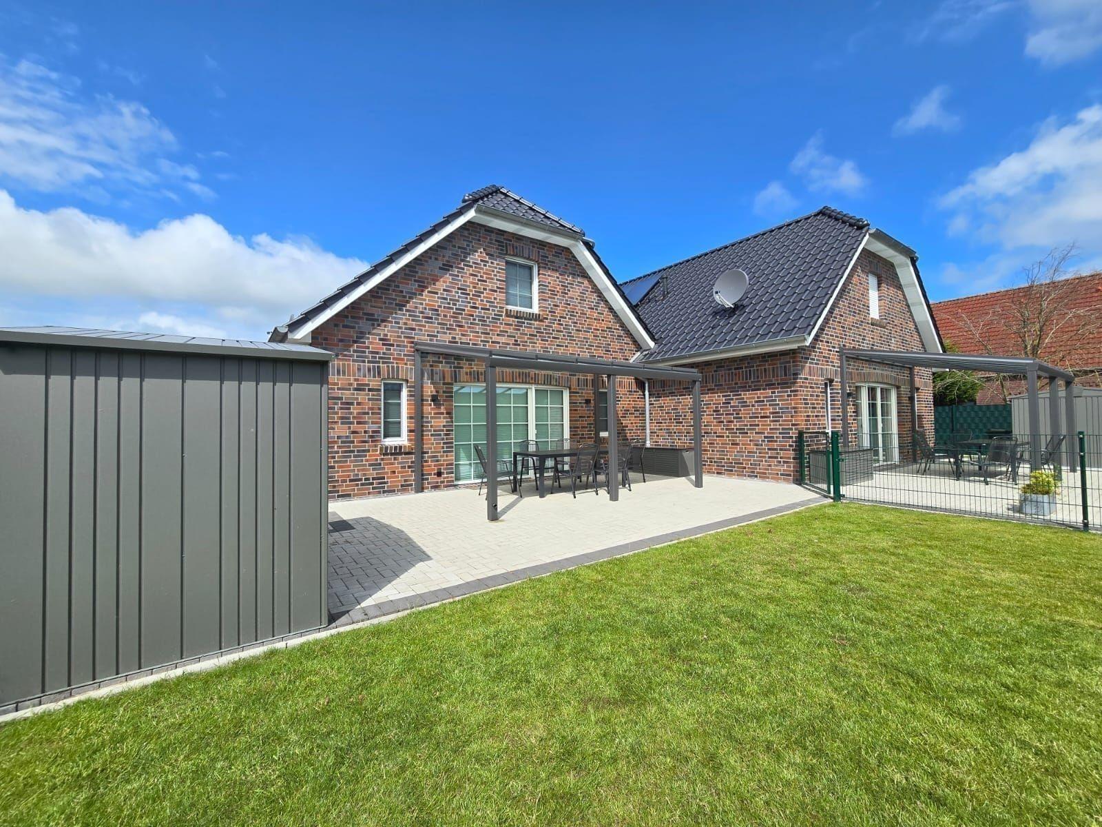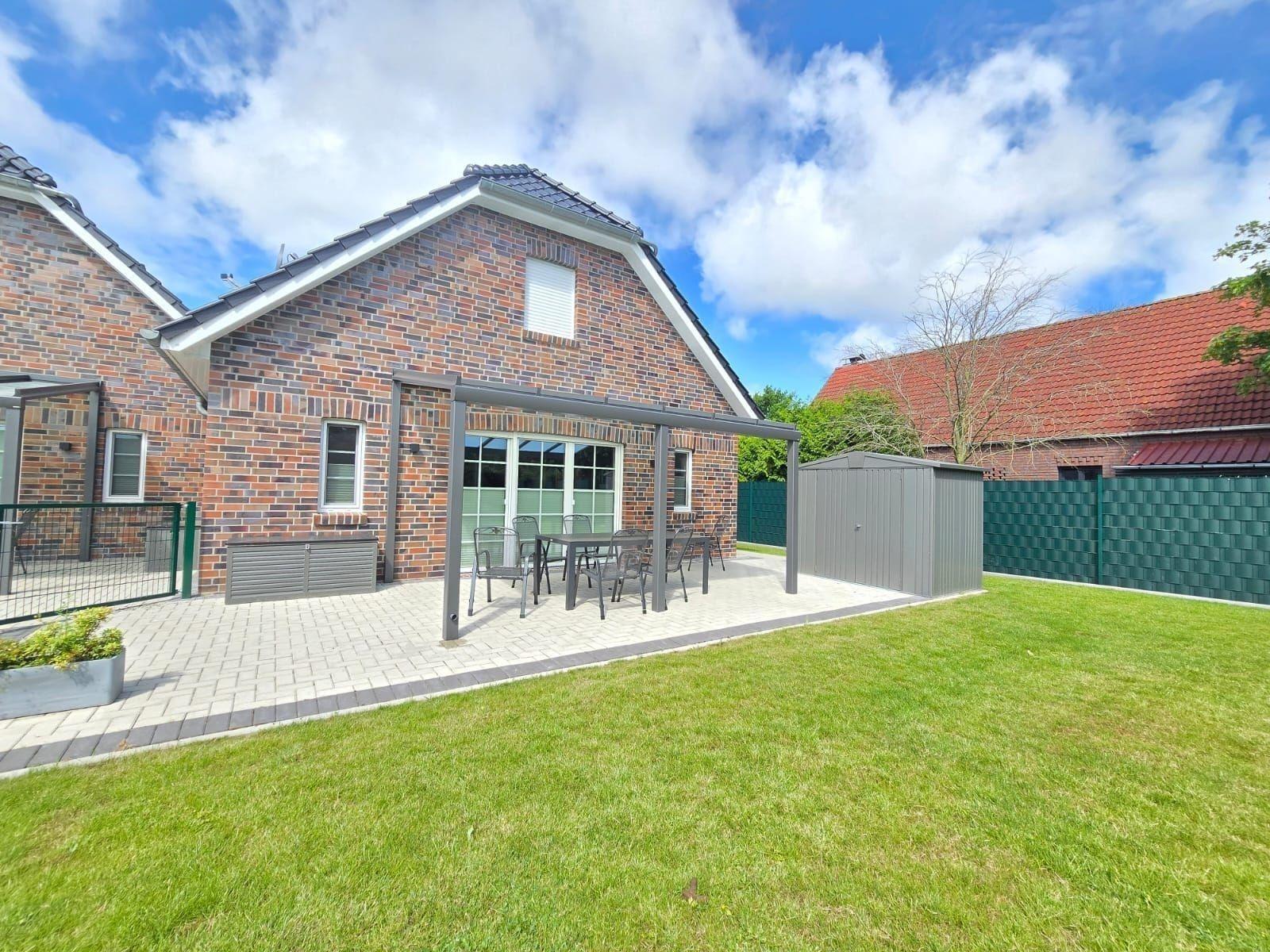 Die Ferienwohnung bietet eine private Terrasse mit direktem Zugang zu einem gepflegten Garten. Hier befindet sich eine gemütliche Liegewiese, ideal zum Entspannen unter freiem Himmel. Ein Holzkohlegrill lädt zu geselligen Grillabenden ein. Gäste können die ruhige Umgebung genießen und sich im eigenen Garten erholen. Diese Oase im Freien verspricht unvergessliche Urlaubsmomente.