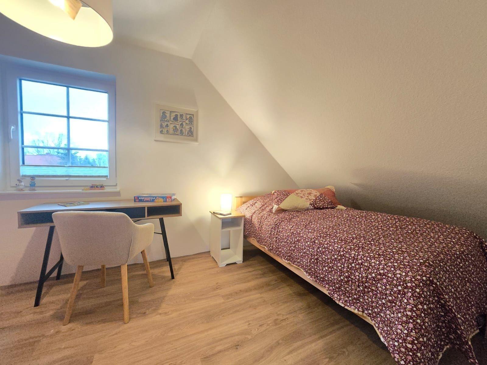 Die Ferienwohnung bietet barrierefreien Zugang und verfügt über einen eigenen Parkplatz. Ein komfortabler Arbeitsplatz ermöglicht produktives Arbeiten, während der Blick auf den gepflegten Garten für Entspannung sorgt. Ideal für Reisende, die Wert auf Komfort und Ruhe legen. Ungeeignet für Gäste, die eine weitere Ausstattung benötigen, da keine zusätzlichen Angebote vorhanden sind.