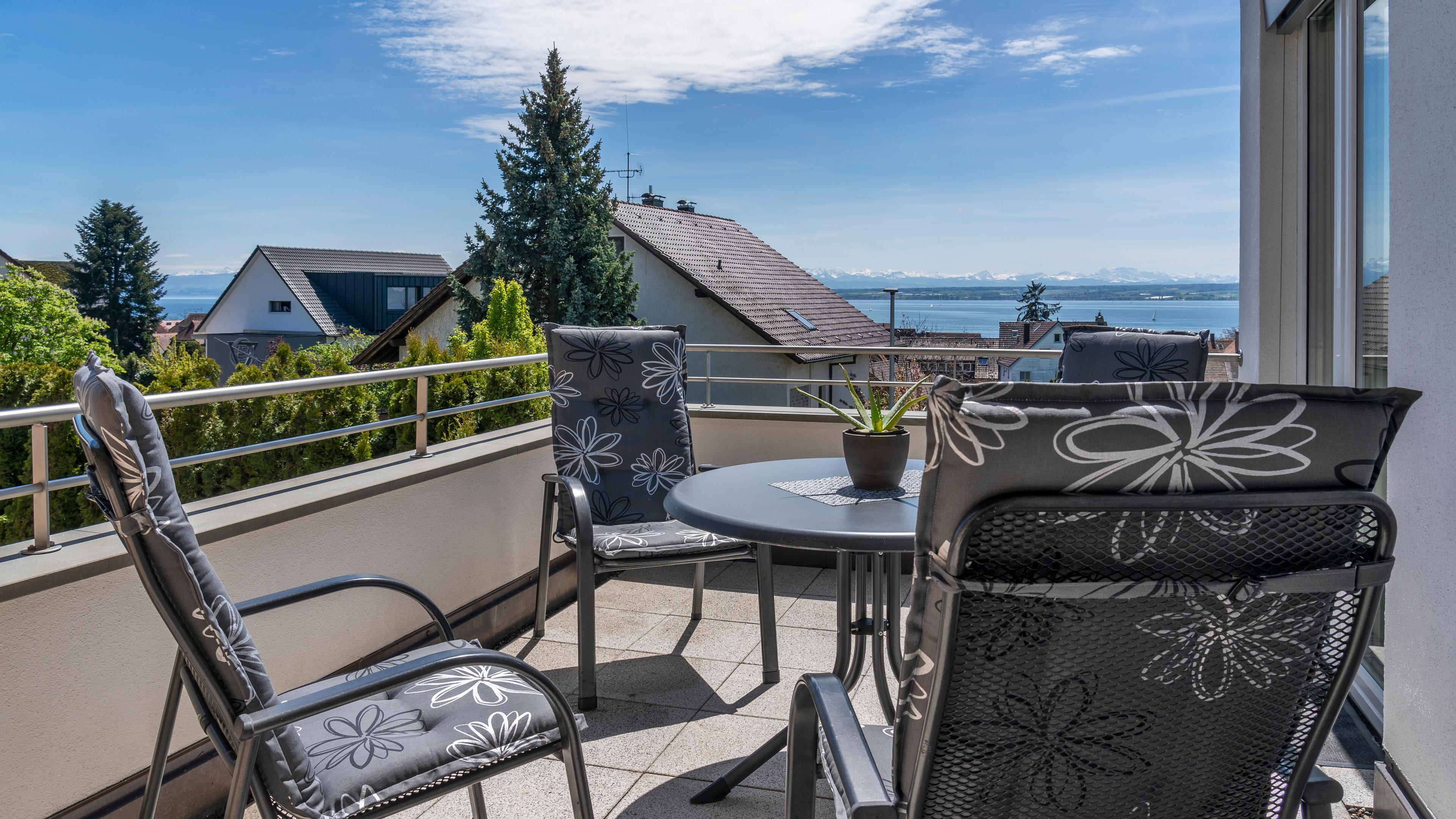 - Balkon mit Blick auf den Bodensee und die Alpen