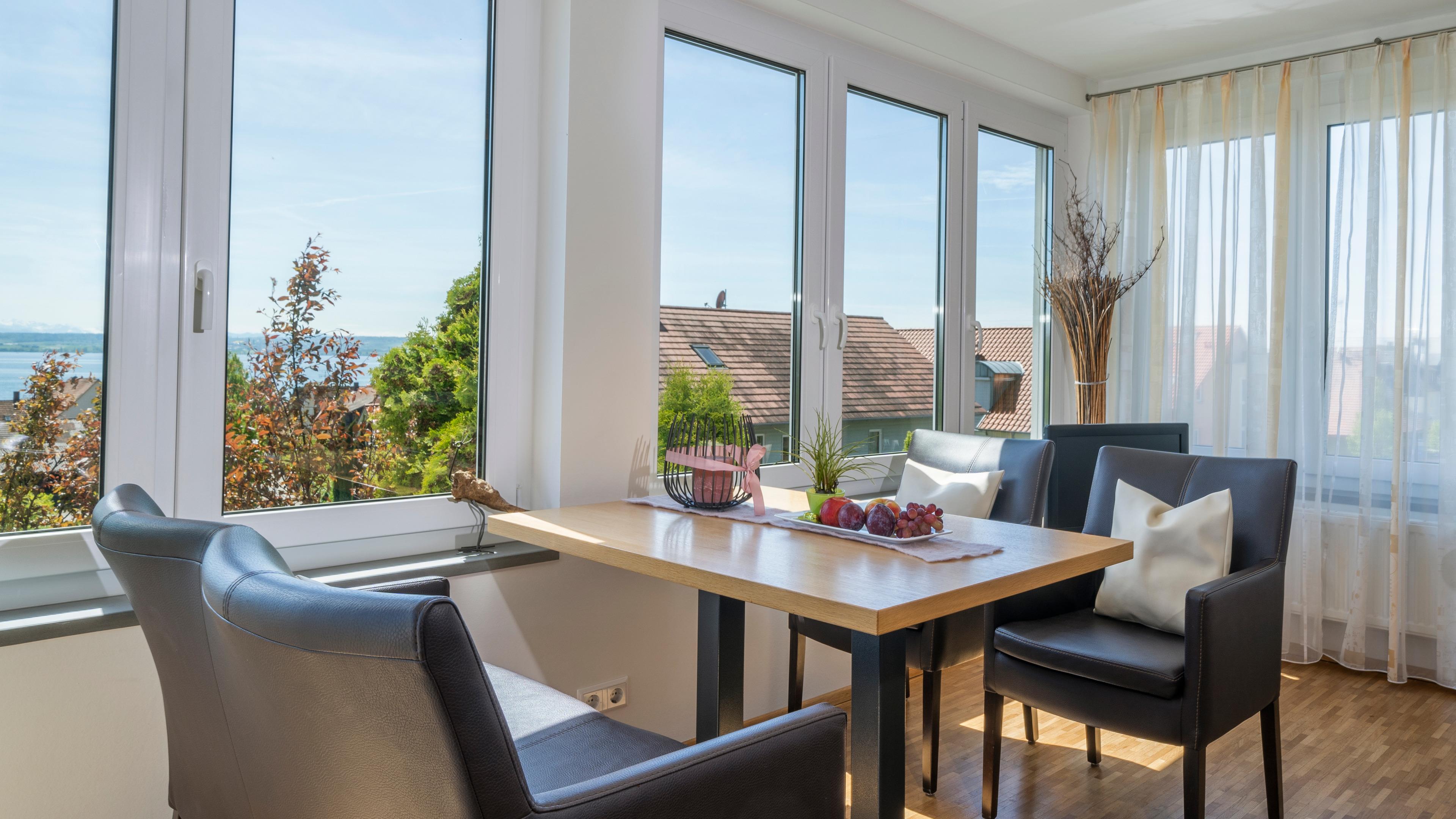 Genießen Sie Ihren Bodenseeurlaub in unserem FeWo Familienappartement mit herrlichem Blick auf den Bodensee und seinem Alpenpanorama: