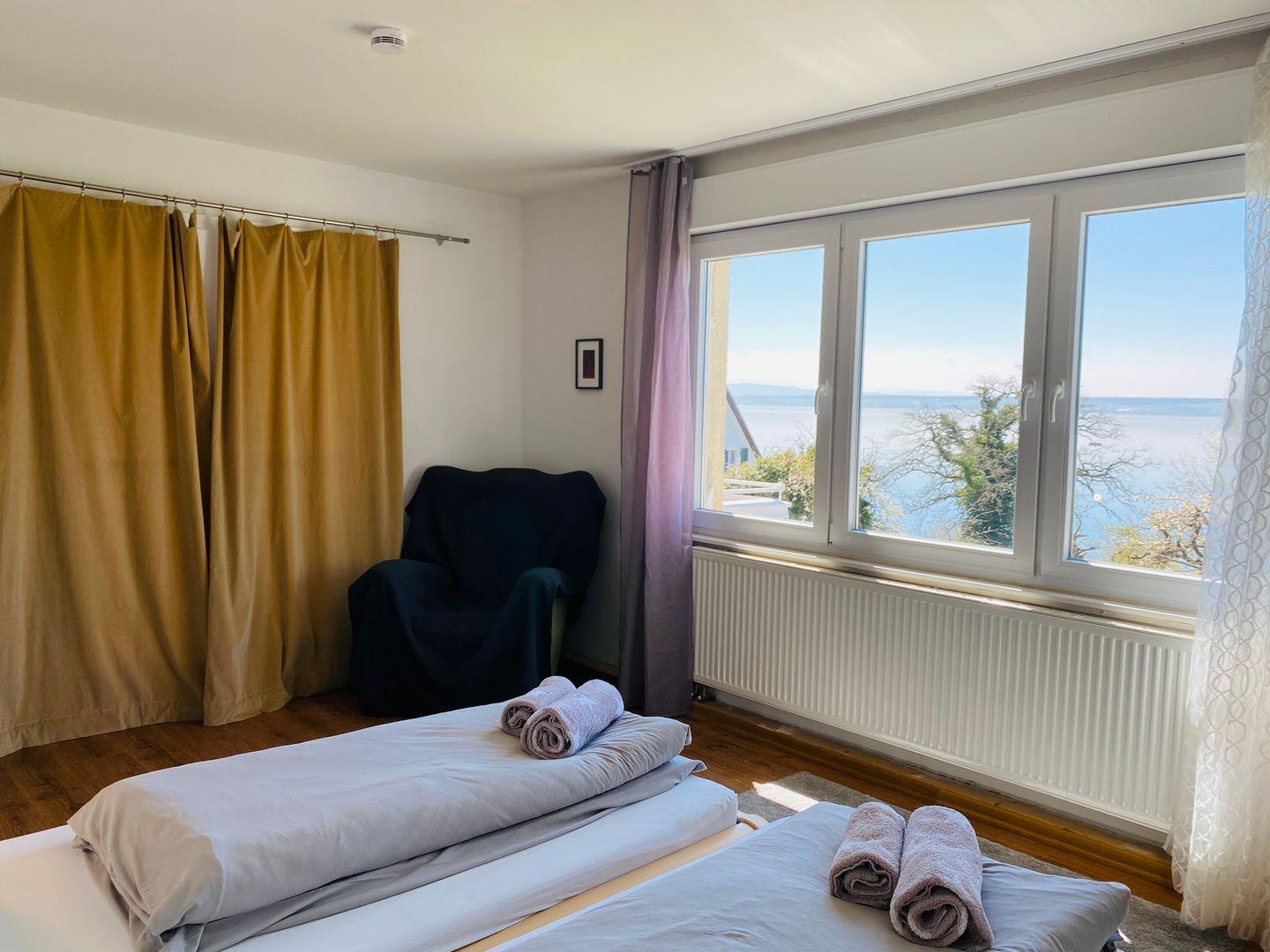 Die einladende Ferienwohnung im 1. Obergeschoss bietet einen atemberaubenden Seeblick und direkten, öffentlichen Zugang zum Bodensee. Das rustikale Ambiente der Wohnung schafft eine gemütliche Atmosphäre. Der Balkon lädt dazu ein, den direkten Blick auf den See und die umgebende Natur zu genießen. Zwei großzügige Schlafzimmer mit komfortablen Doppelbetten bieten erholsamen Schlaf. Der Wohn- und Essbereich verfügt über eine einladende Wohnlandschaft.. Zusätzlich steht eine Liegewiese im Außenbereich zur Verfügung, wo Sie die Natur in vollen Zügen erleben können.