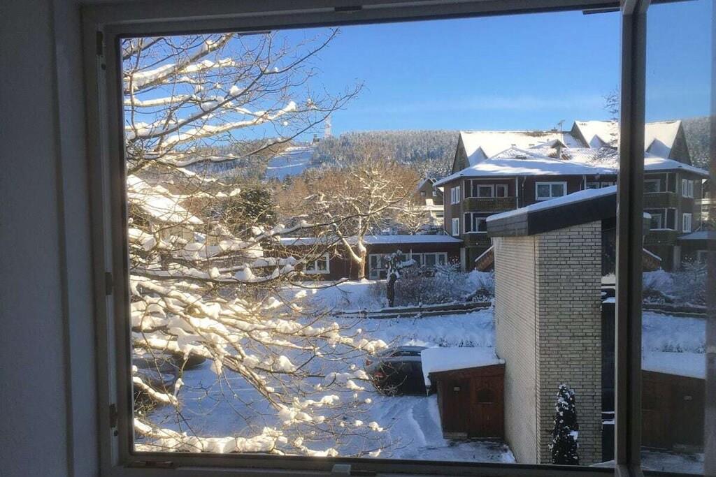 Denne moderne, lyse og kærligt møblerede ferielejlighed er meget komfortabel og har plads til op til 5 personer. Fra begge soveværelser kan du nyde en vidunderlig udsigt over Bocksberg, især om vinteren, eller fra balkonen en udsigt over Kranichsee (sideudsigt over søen). Ferielejligheden har den nyeste teknologi, herunder et 48-tommer fladskærms-tv og Wi-Fi. Den hurtige internetforbindelse giver dig mulighed for at se film via download (f.eks. Amazon Fire TV). Ferielejligheden består af: Stue med åbent køkken udstyret med stor opvaskemaskine, keramisk komfur og ovn, samt mikrobølgeovn, kaffemaskine, brødrister, elkedel osv. Soveværelse med dobbeltseng og stort skab Lille soveværelse/børneværelse med dobbeltseng og en ekstra enkeltseng, der kan trækkes ud (under dobbeltsengen), hvilket giver plads til op til tre børn. Lyst og friskt badeværelse Entré Balkon (plads til 4 personer) Spisebordet har plads til 4-6 personer, og der er en højstol til rådighed. Der er også en barneseng til rådighed.