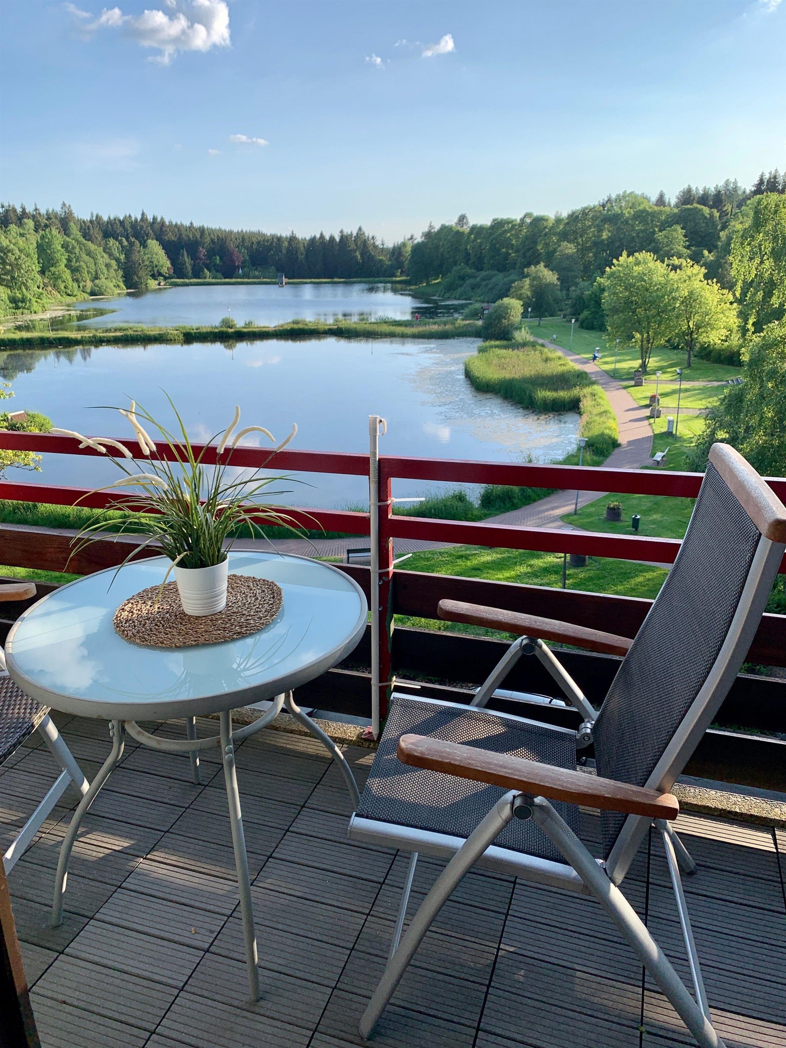 Genießen Sie von Ihrem Balkon aus den Blick auf den Kranichsee und den Kurpark. In dem gemütlich eingerichteten Apartment im Haus Vier Jahreszeiten verbringen Sie einen erholsamen Urlaub in Hahnenklee.