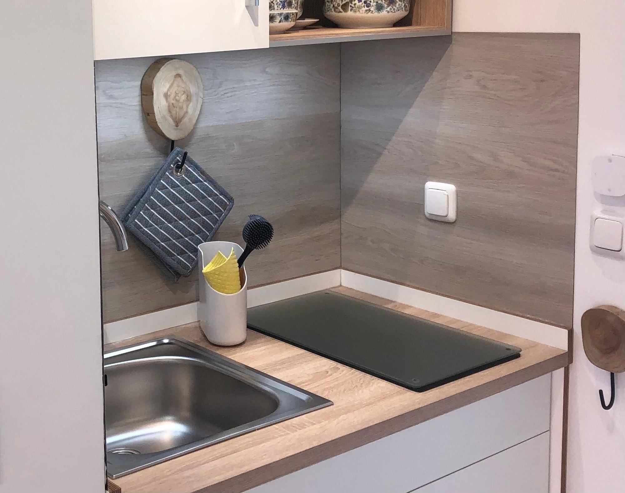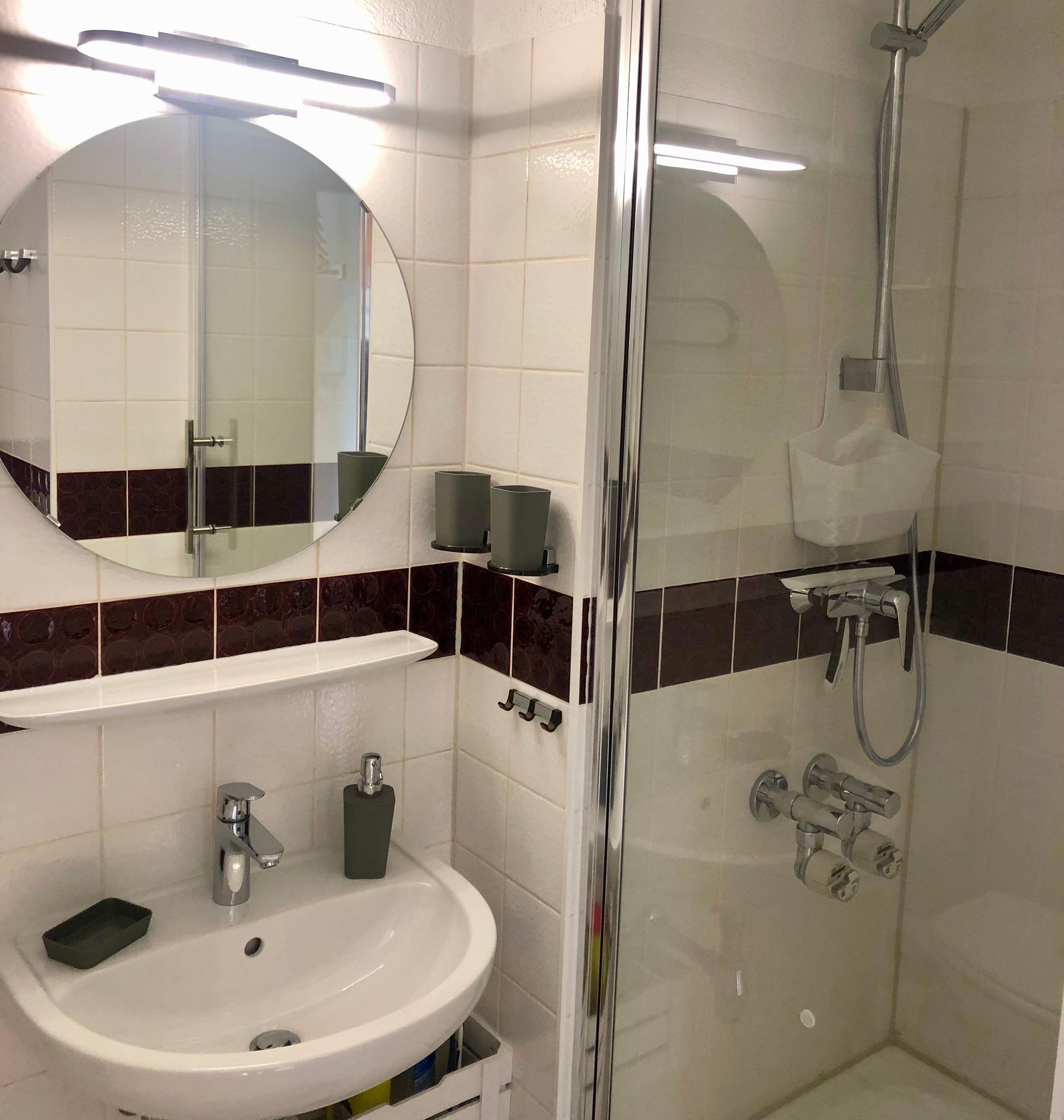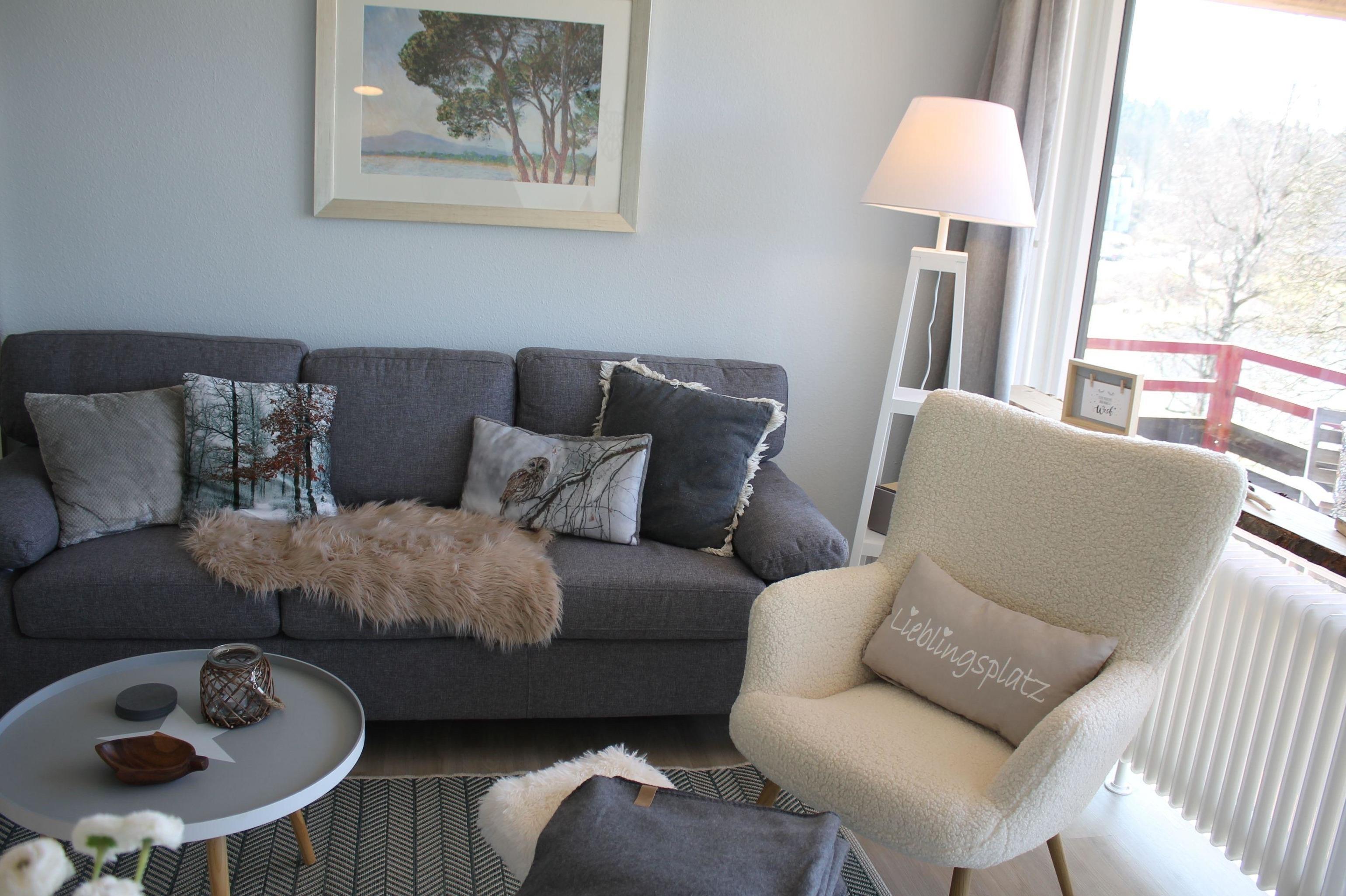 Wir laden Sie herzlich ein in unser kleines Apartment mit Balkon und Panoramablick auf den See. Sie finden hier alles was Sie für einen entspannten Urlaub benötigen, einschließlich bezogenen Betten und Handtüchern. Der Balkon, mit zwei Stühlen und einem Tisch, hat schon früh Sonne und am Abend geht diese hinter den Tannen unter. Das große Bett hat eine Liegefläche von 180x200 cm. Das Sofa und ein gemütlicher Sessel laden zum Relaxen ein. Die Küche hat ein zweier Ceranfeld, einen kleinen Geschirrspüler, einen Kühlschrank, einen Gastrobackofen und alles was man so in einer Küche benötigt.