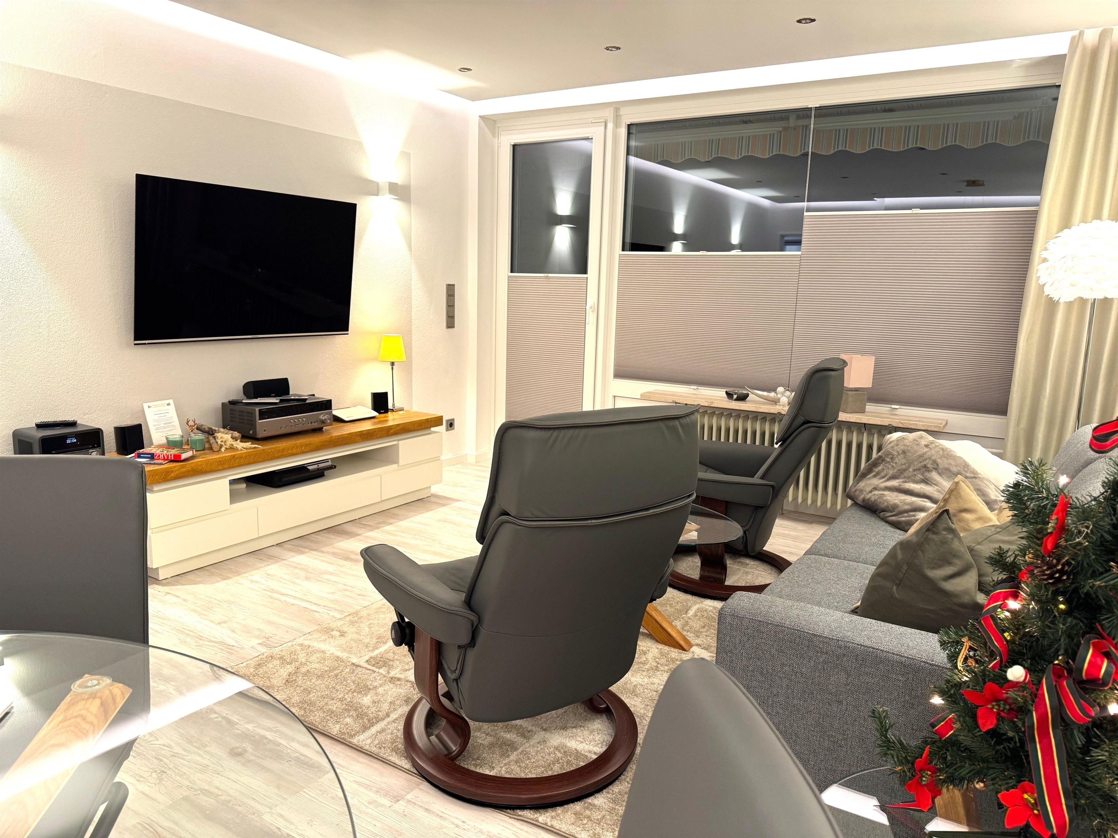 Sie verfügen in der gesamten Fewo über Highspeed-Internetanschluss via WLAN (kostenfrei), einen Flachbild-TV, Dolby-Surround-Heimkinosystem, PlayStation 3 mit CD-/DVD- und BluRay-Player - falls es mal nieselt draußen oder für die Lieblingsserie im Urlaub.