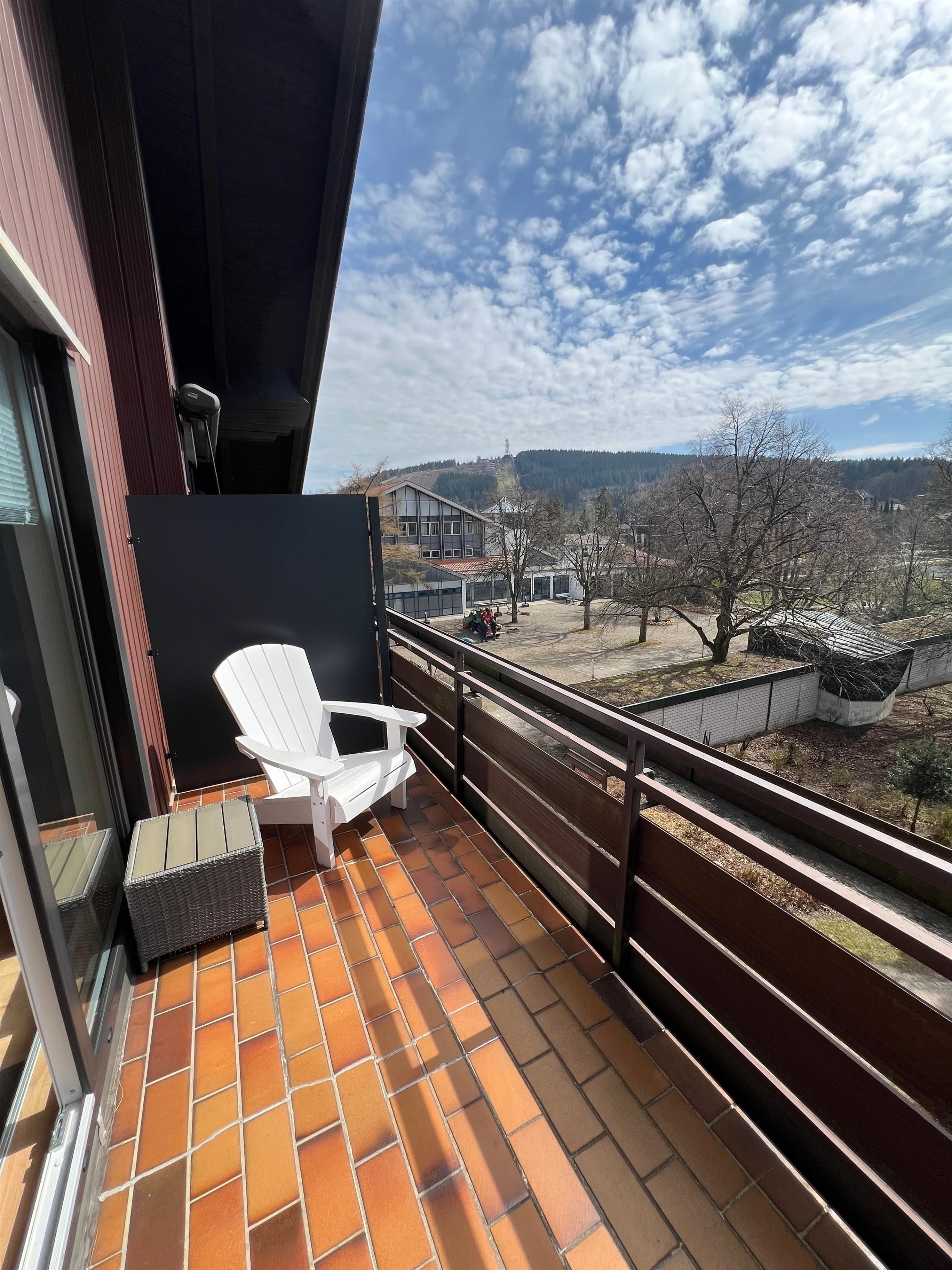 Frisch renovierte, hochwertige Panorama-Ferienwohnung mit großem Balkon und Treppenlift, ca. 46 qm für 1- 4 Personen + Baby.