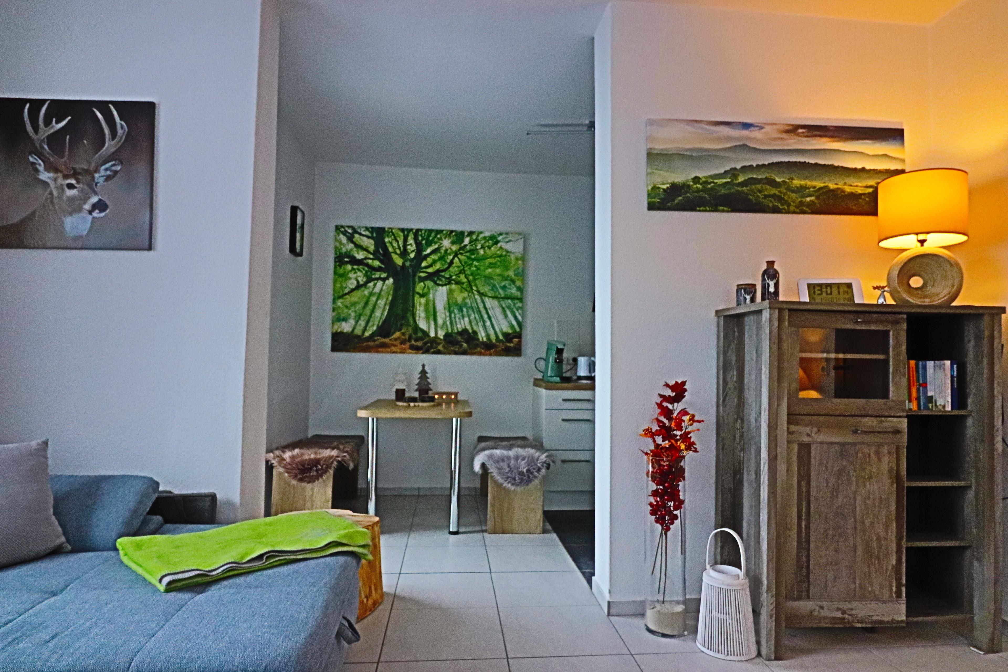 Unsere Zweizimmerwohnung ist im Erdgeschoss eines Mehrfamilienhauses. Den Parkplatz haben Sie direkt vor der Tür. Im Haus sind nur Zweitwohnungen und Ferienwohnungen.
