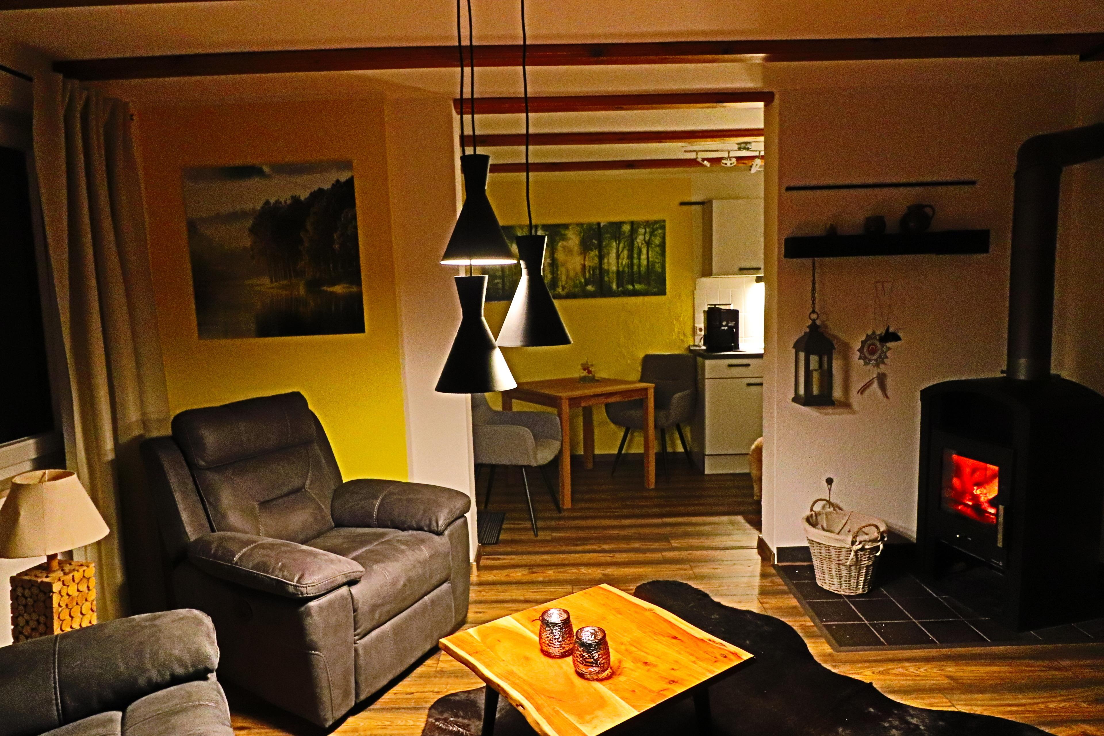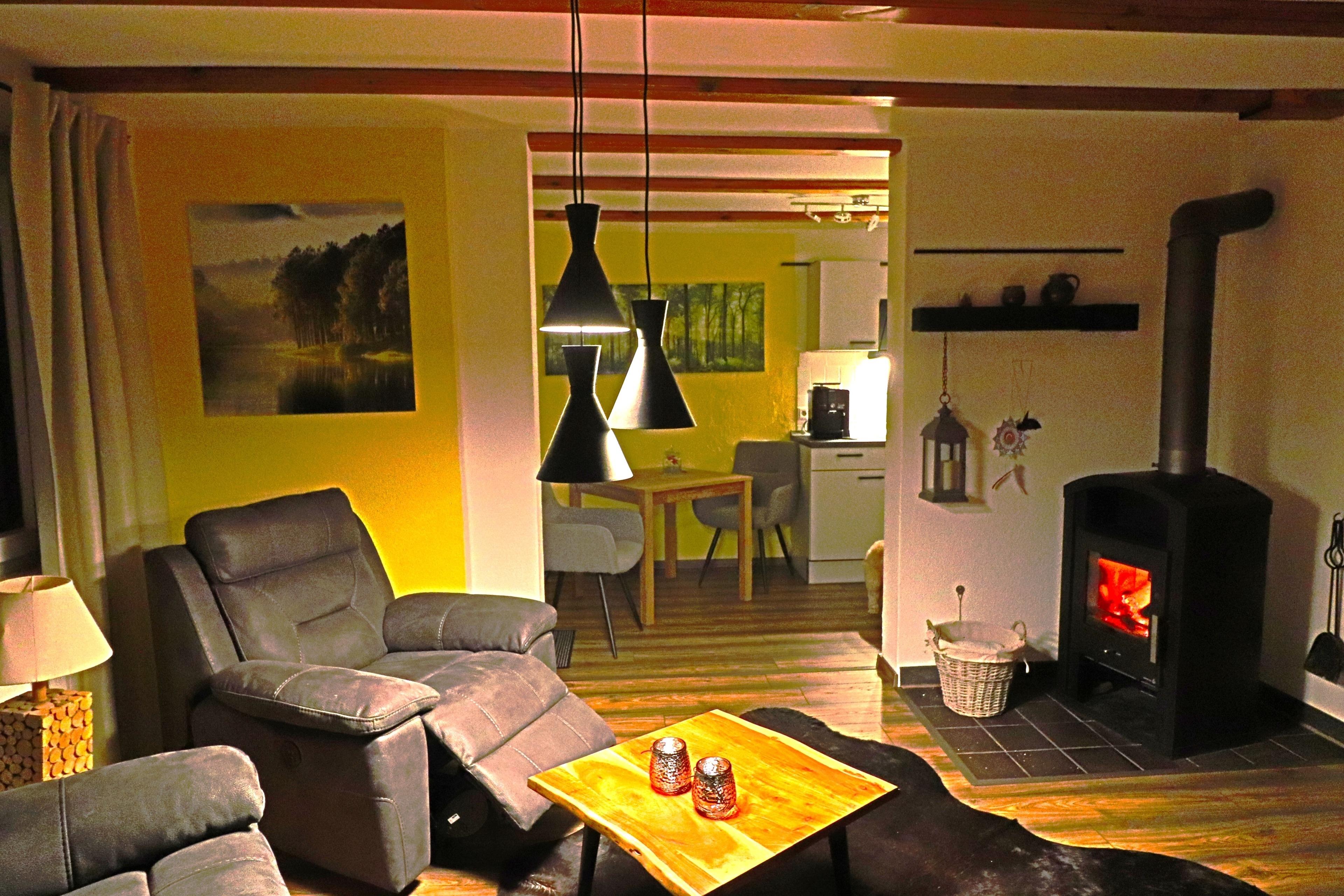 WLAN ist frei. Im Wohnzimmer stehen die neue Couch und der neue Sessel mit Relax-Funktion, wo Sie die Kaminwärme entspannt nutzen können. Das 160 cm breite Bett im Schlafzimmer lässt Sie herrlich ruhen.