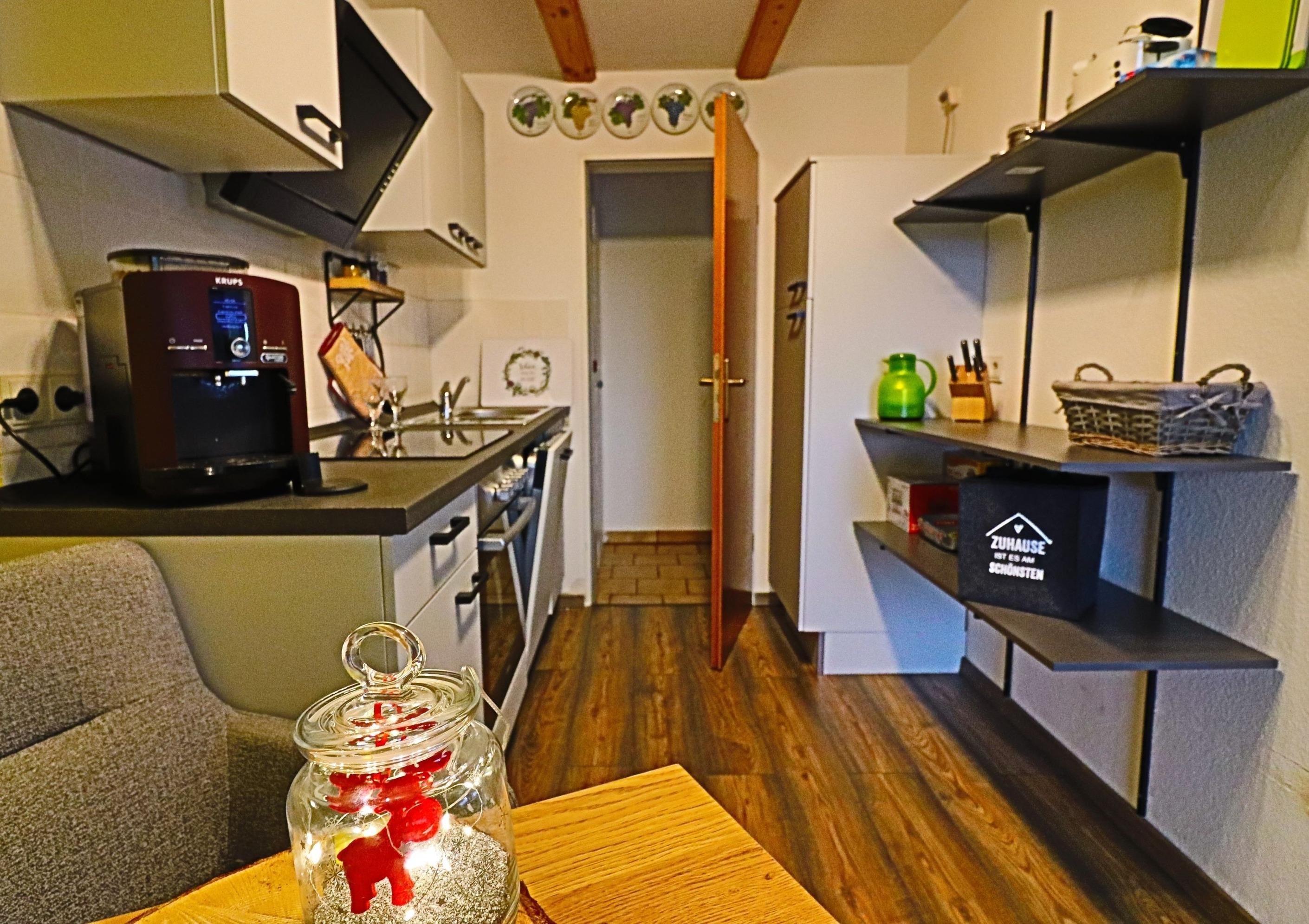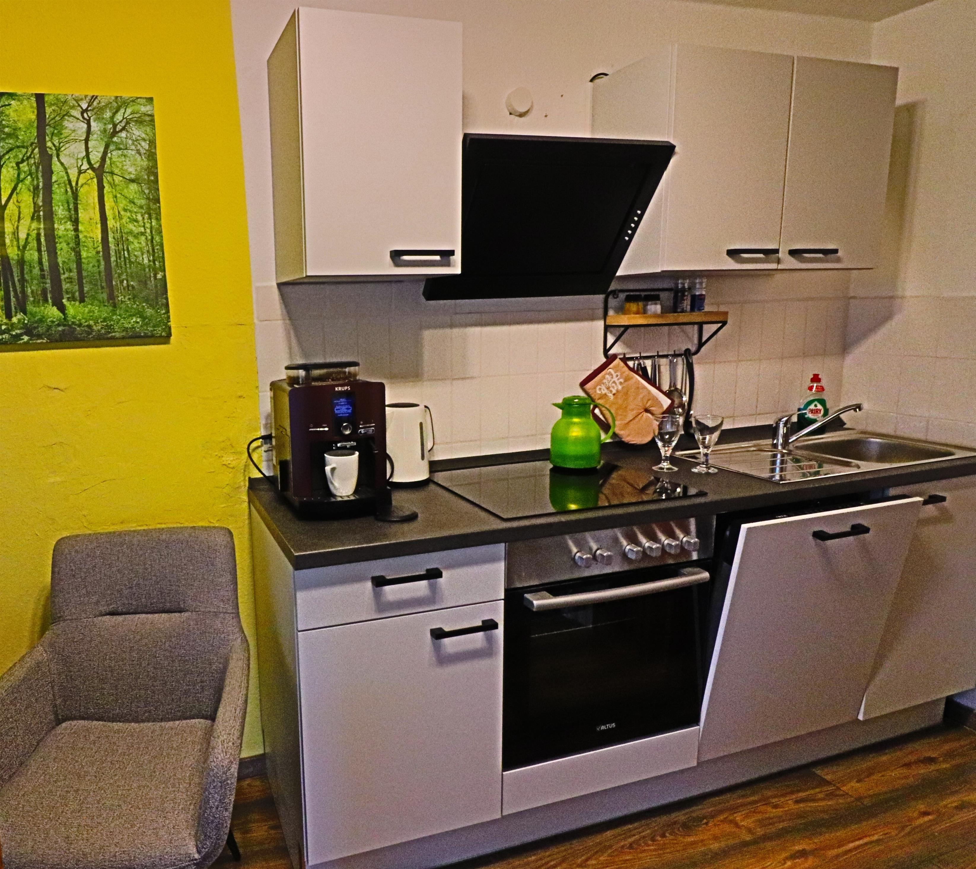 Die Küche ist neu und komplett ausgestattet mit Geschirrspüler, Kaffee Vollautomat und normaler Kaffeemaschine, 4-Flammen-Kochfeld, Backofen, Toaster und allen Küchenutensilien, die Sie benötigen.