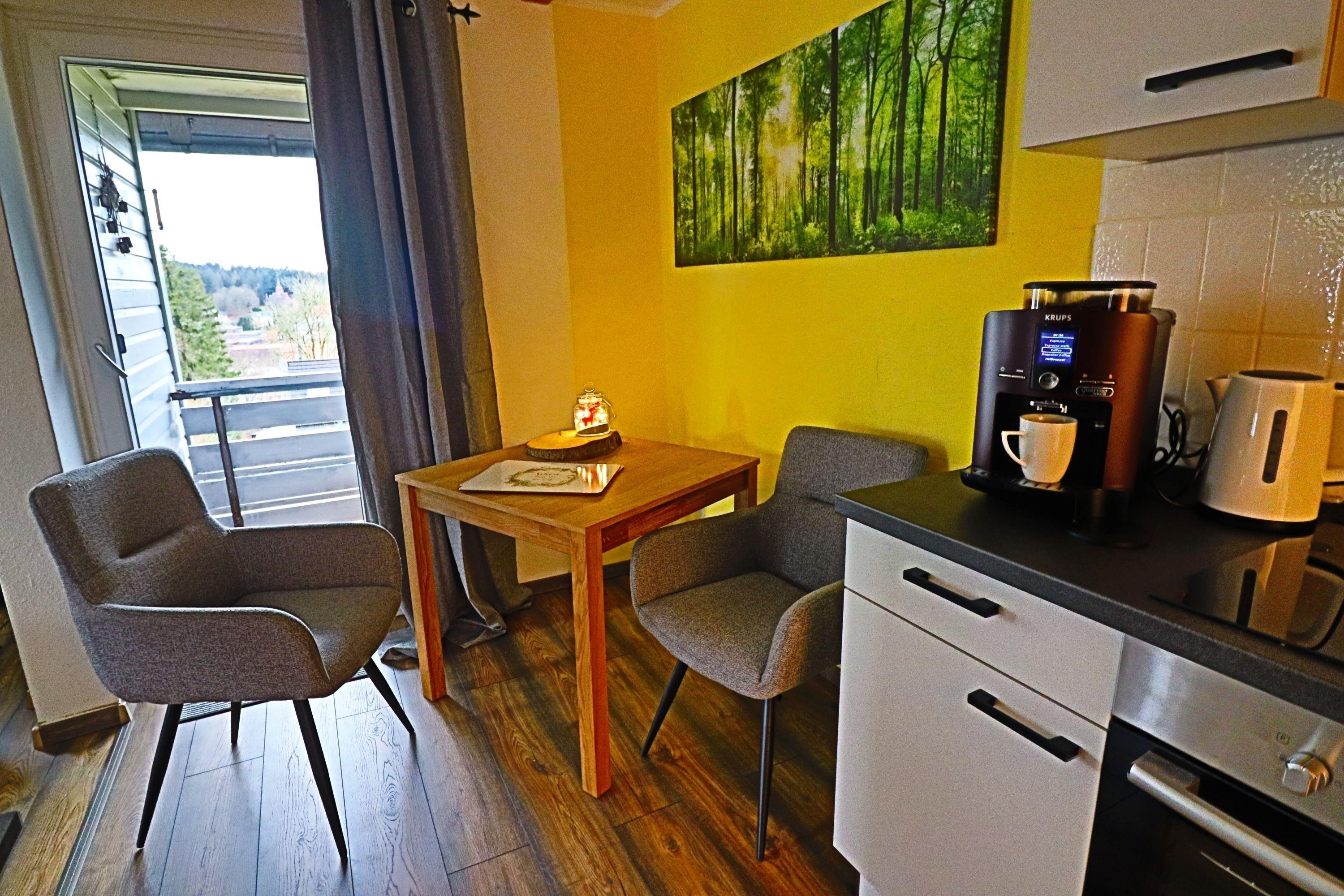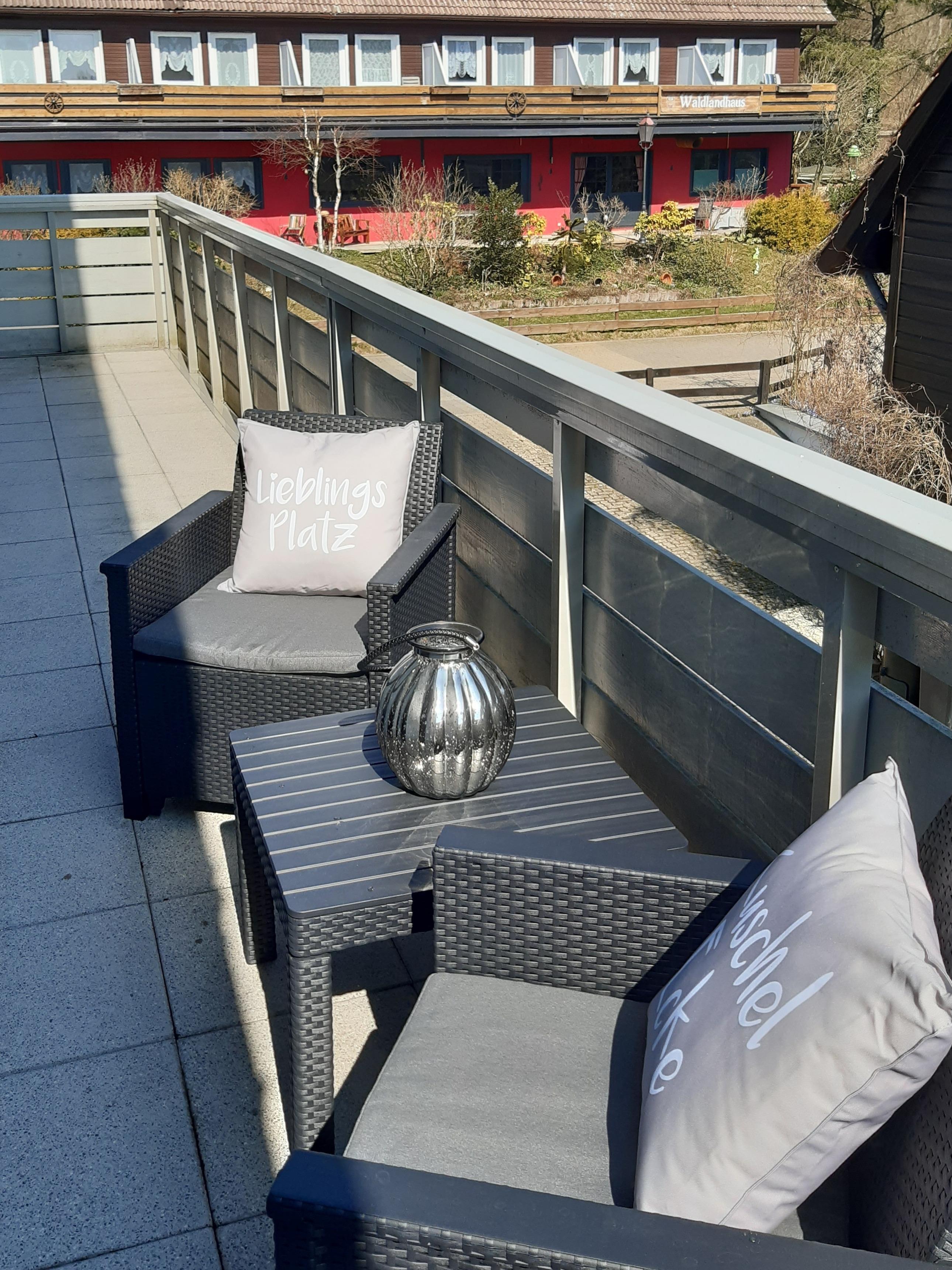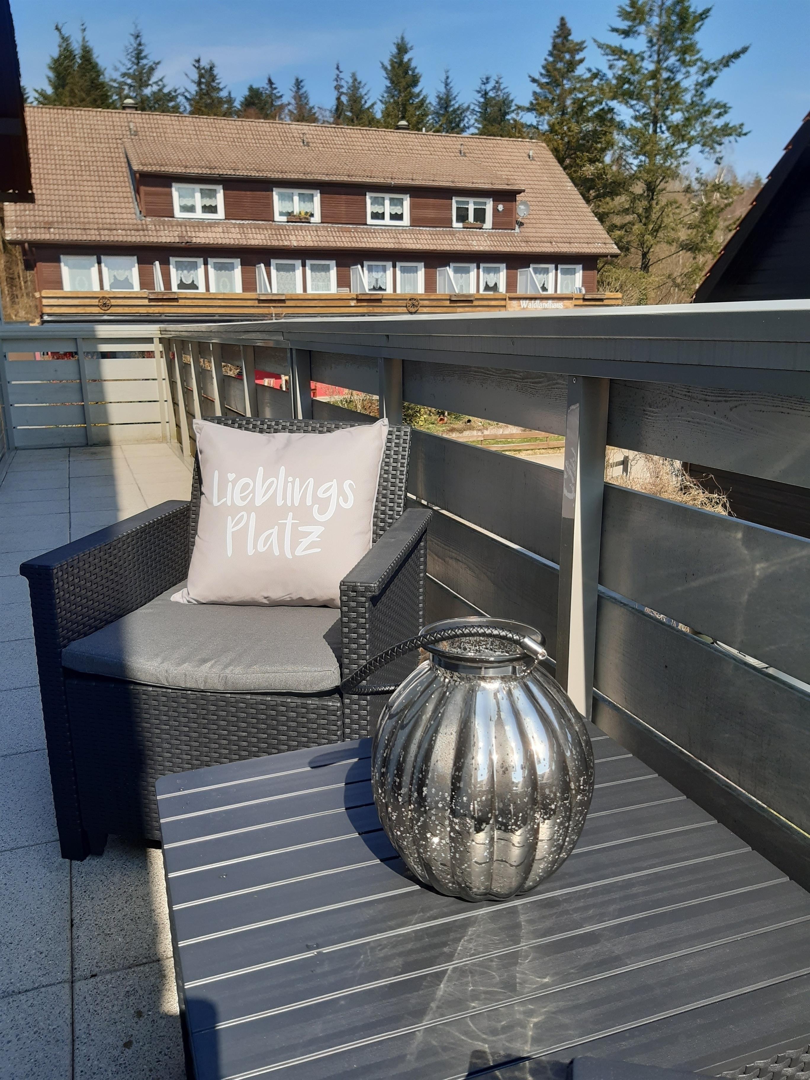 Sie kommen rein, nehmen sich einen Kaffee oder Tee, setzen sich auf die kleine Süd-Loggia und sind sofort entspannt. Ihr Blick gleitet über den ganzen Ort; vom Ski Hang Bocksberg über die Stabkirche bis zum Wald. Ihr Hund ist willkommen und liegt auf dem Kissen. So schön kann Urlaub sein!