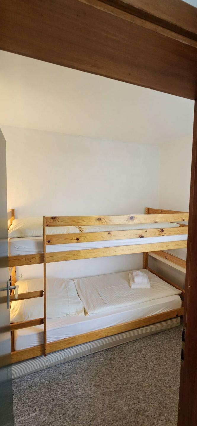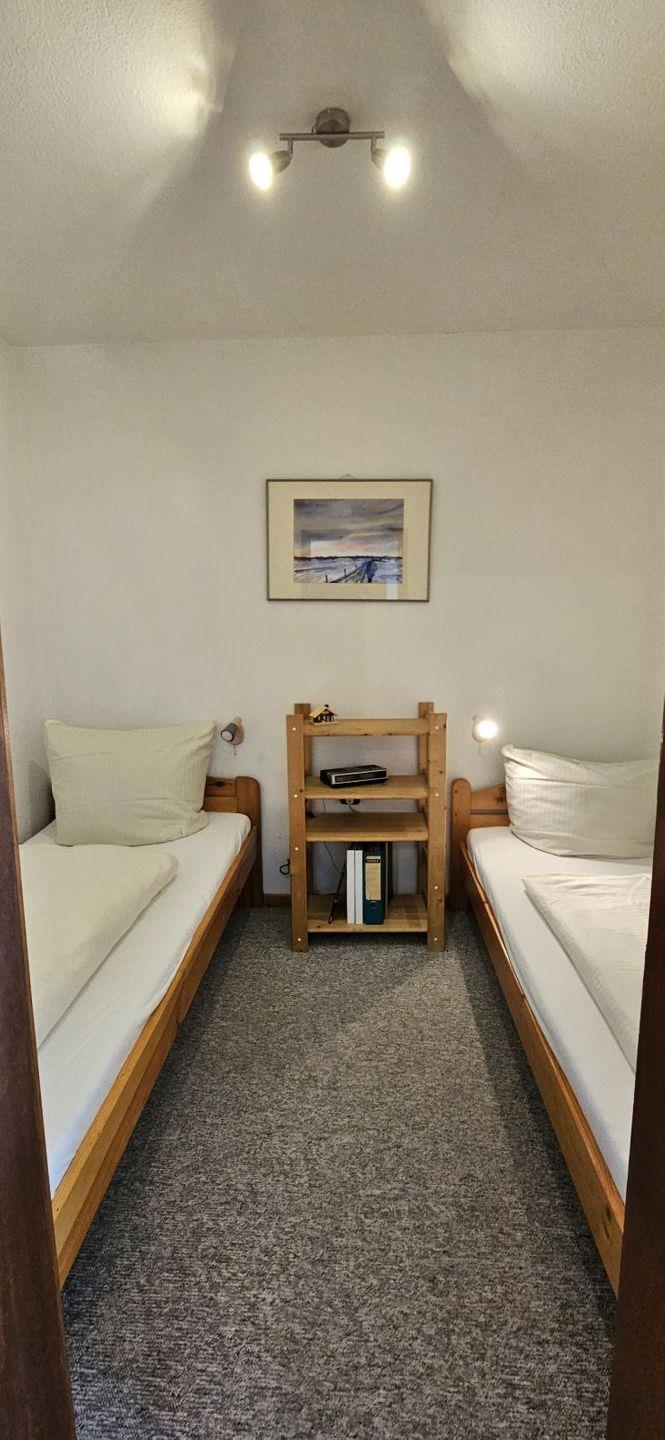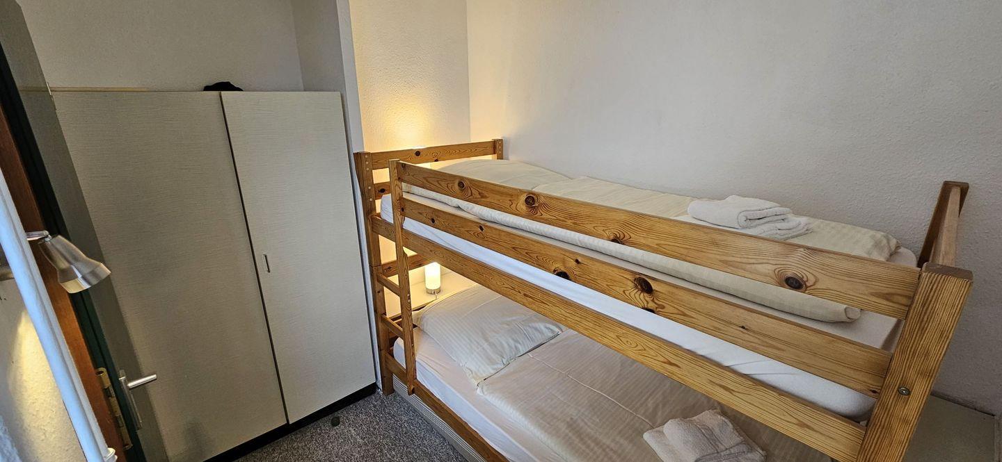 Für erholsame Nächte stehen zwei Einzelbetten in dem einen Schlafzimmer sowie ein Etagenbett in dem anderen Schlafzimmer bereit.