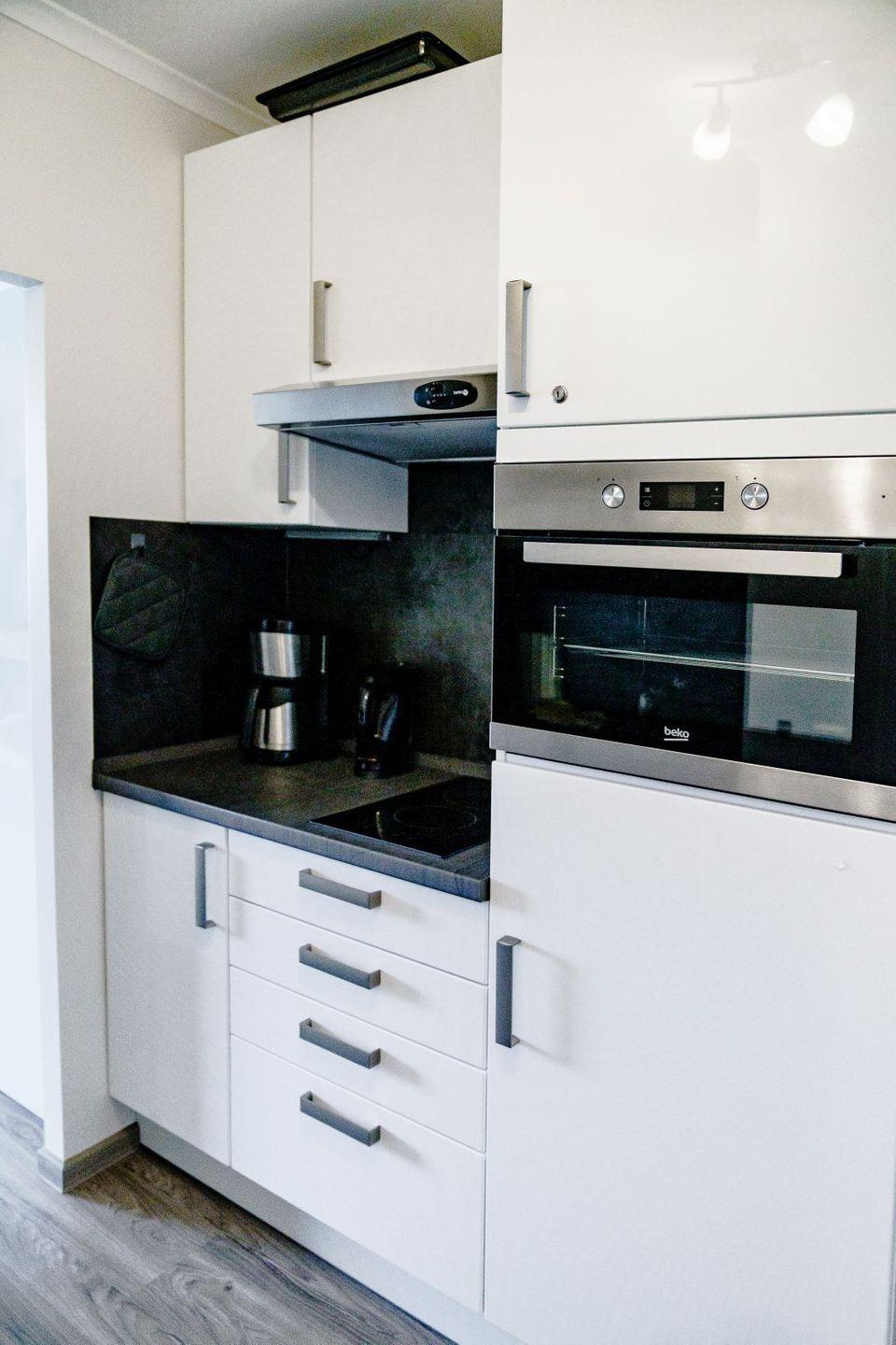 -Küche inkl. 2-Plattenherd, Kühlschrank, Wasserkocher, Kaffeemaschine, Toaster, Mikrowelle und Spülmaschine