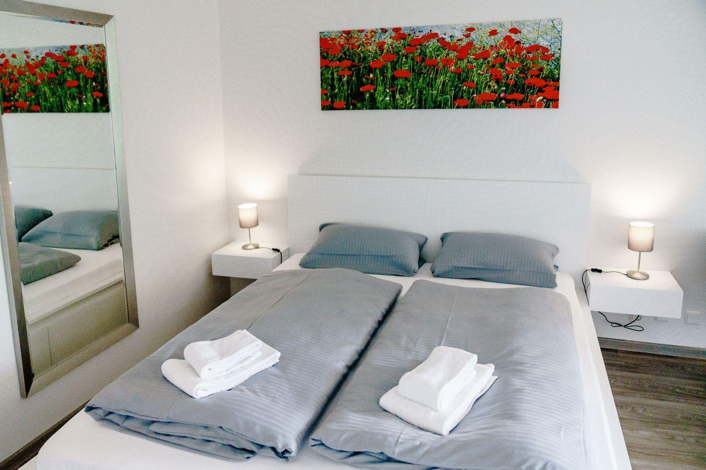 -Doppelbett 1,80x2m und Schlafcouch (Erstaustattung Bettwäsche & Handtücher)