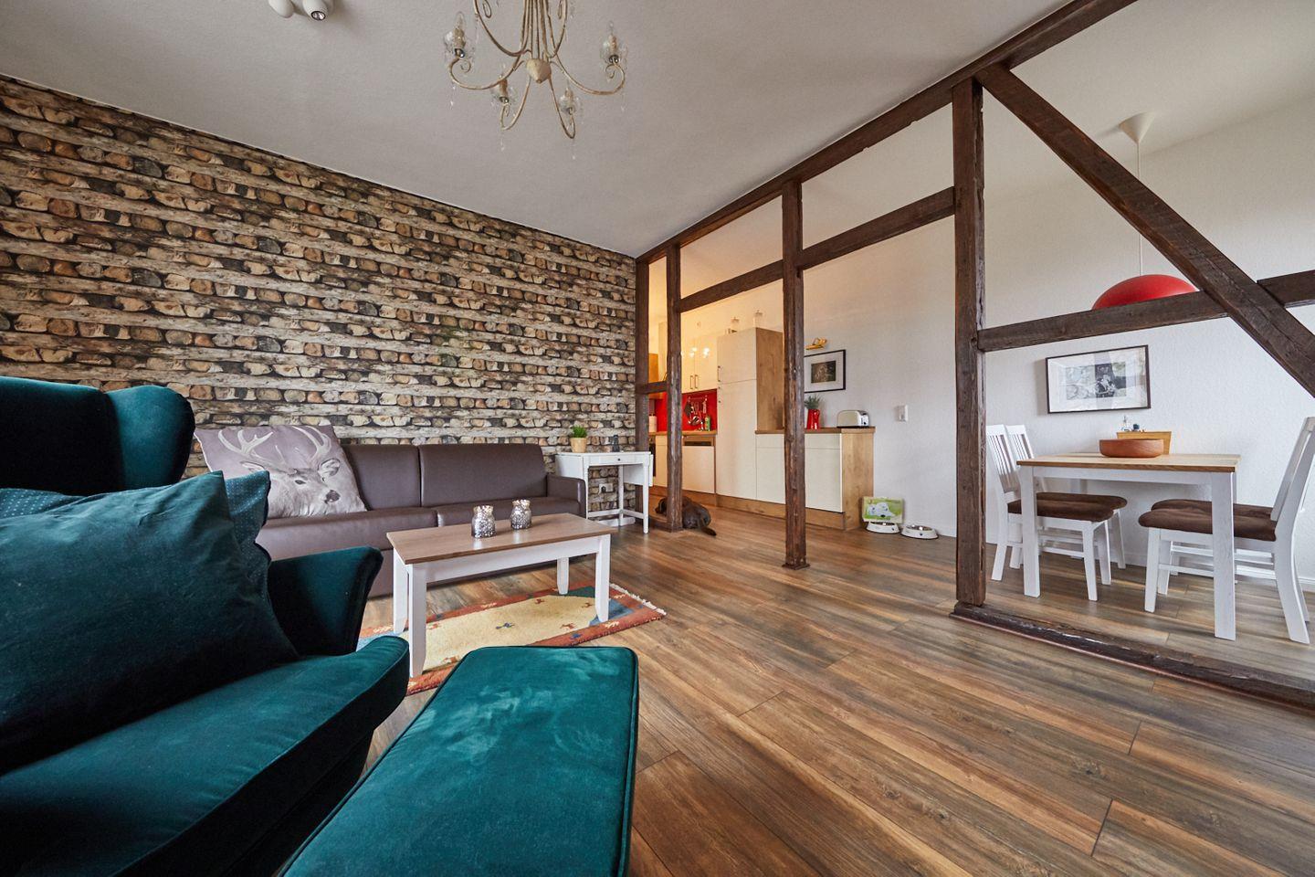 Diese Wohnung verfügt über ein großzügiges Wohnzimmer mit offener Küche und Balkon, einer gemütlichen