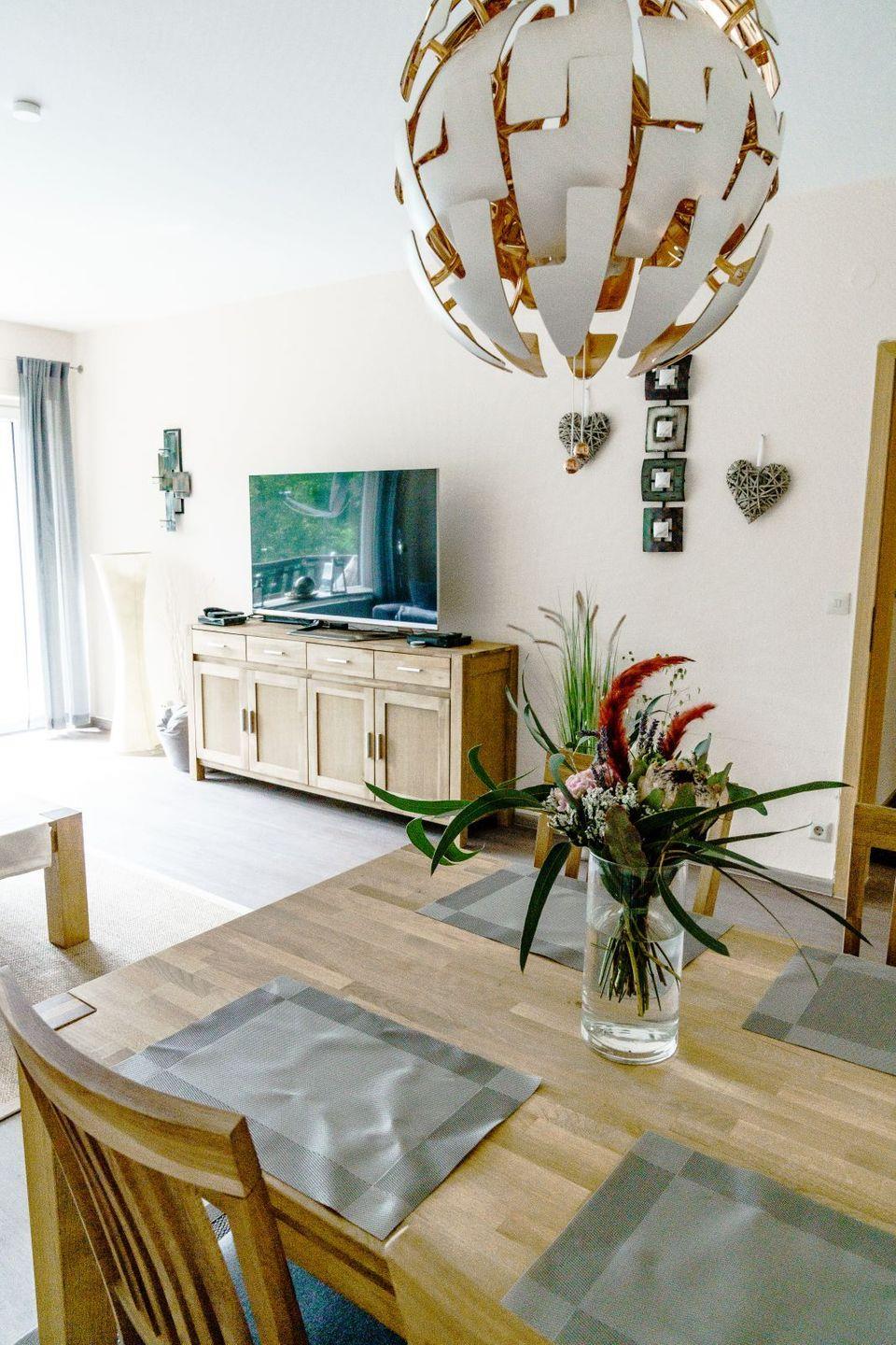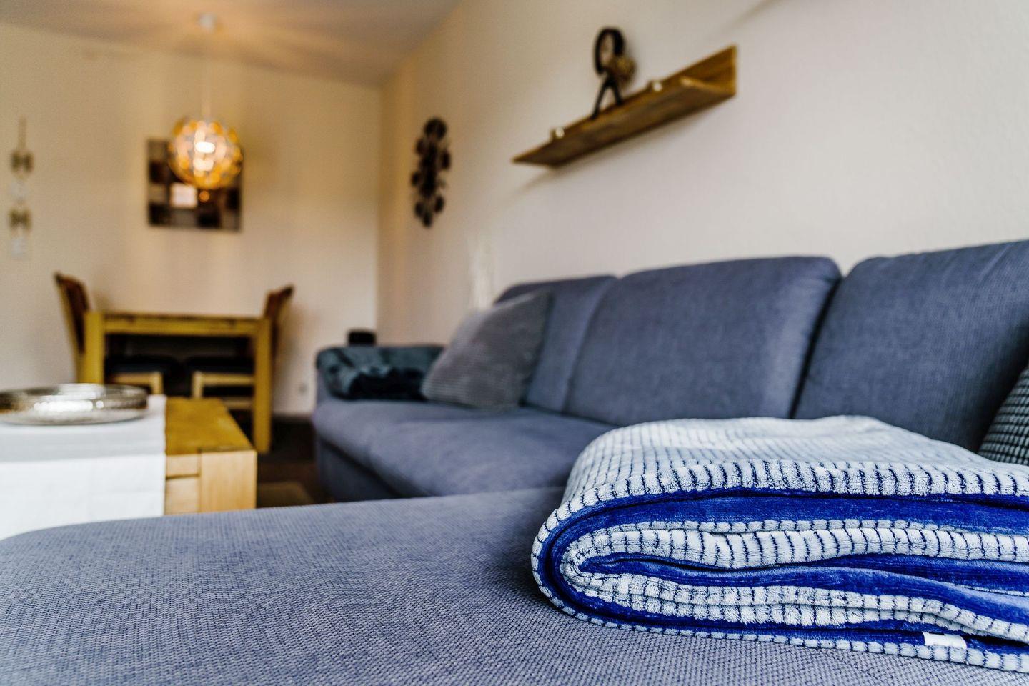 Die Maisonette liegt im 2. Stock und besticht durch ihre offene Raumgestaltung, die sowohl Gemütlichkeit als auch modernsten Komfort vereint. Der helle Wohnbereich lädt zum Entspannen ein und verfügt über eine Sofaecke sowie einen Esstisch. Entspannen Sie sich beim Fernseher oder genießen Sie Spieleabende an der Spielekonsole. Für Ihre Unterhaltung sind diverse Spiele, Bücher und sogar eine CD- und DVD-Sammlung vorhanden, sodass Langeweile hier kein Thema ist.