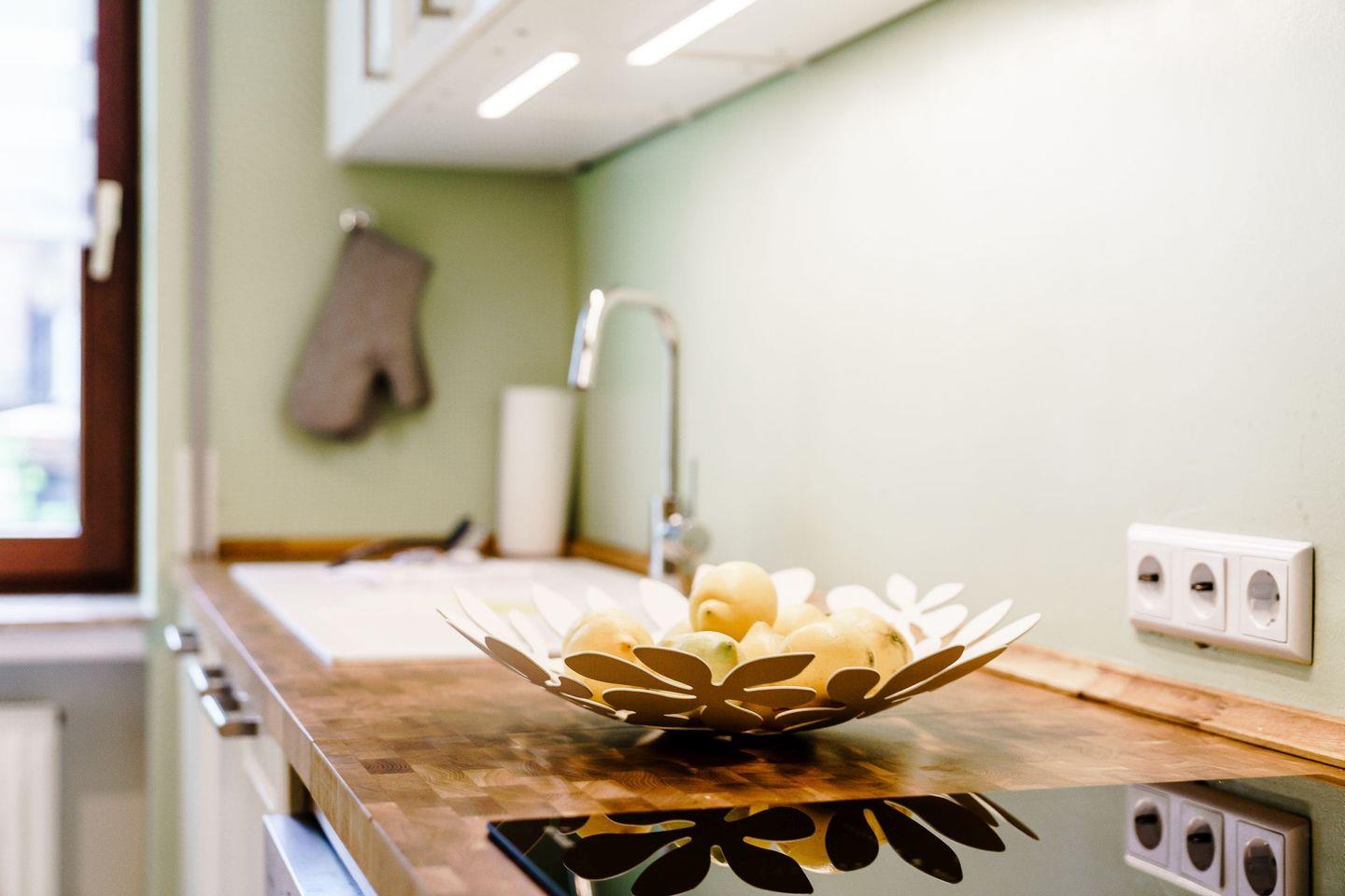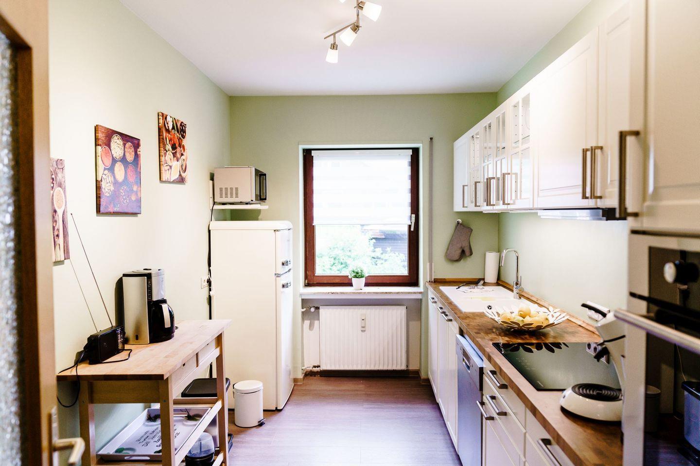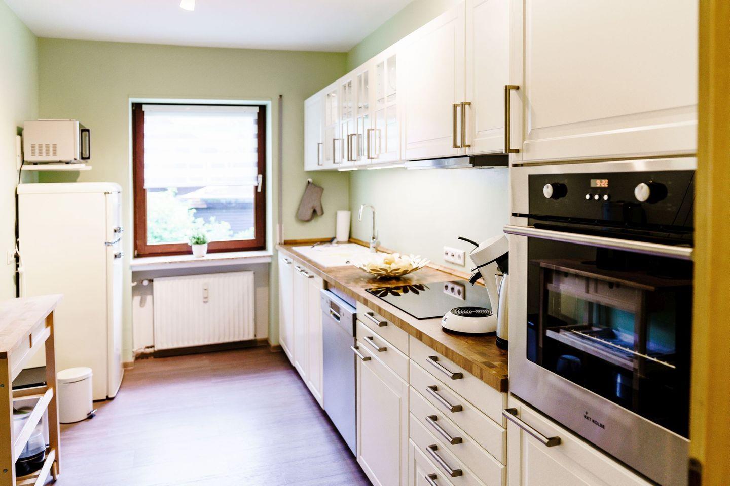 In der voll ausgestatteten Küche, die harmonisch zum Wohnzimmer übergeht, finden Sie alles, was Sie zum Kochen benötigen. Dazu gehören moderne Geräte wie ein Induktionsherd, Backofen, Mikrowelle, Kühlschrank mit Gefrierfach und eine Spülmaschine. Genießen Sie Ihre selbst zubereiteten Mahlzeiten auf dem Balkon, während Sie die frische Bergluft und die Aussicht auf die umliegende Natur genießen.