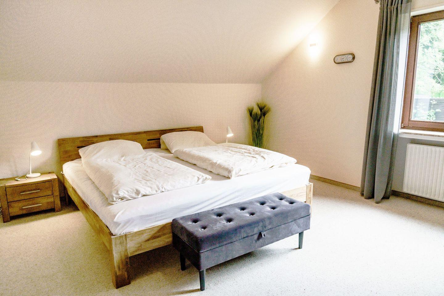 Die Wohnung verfügt über ein komfortables Schlafzimmer, das Ihnen erholsame Nächte verspricht. Das Badezimmer ist modern und bietet eine Dusche mit Wanne – ideal für entspannende Bäder nach einem erlebnisreichen Tag in der Natur. Außerdem sind ein Haartrockner, ein Bügeleisen und ein Wäscheständer vorhanden, um Ihren Aufenthalt so angenehm wie möglich zu gestalten.