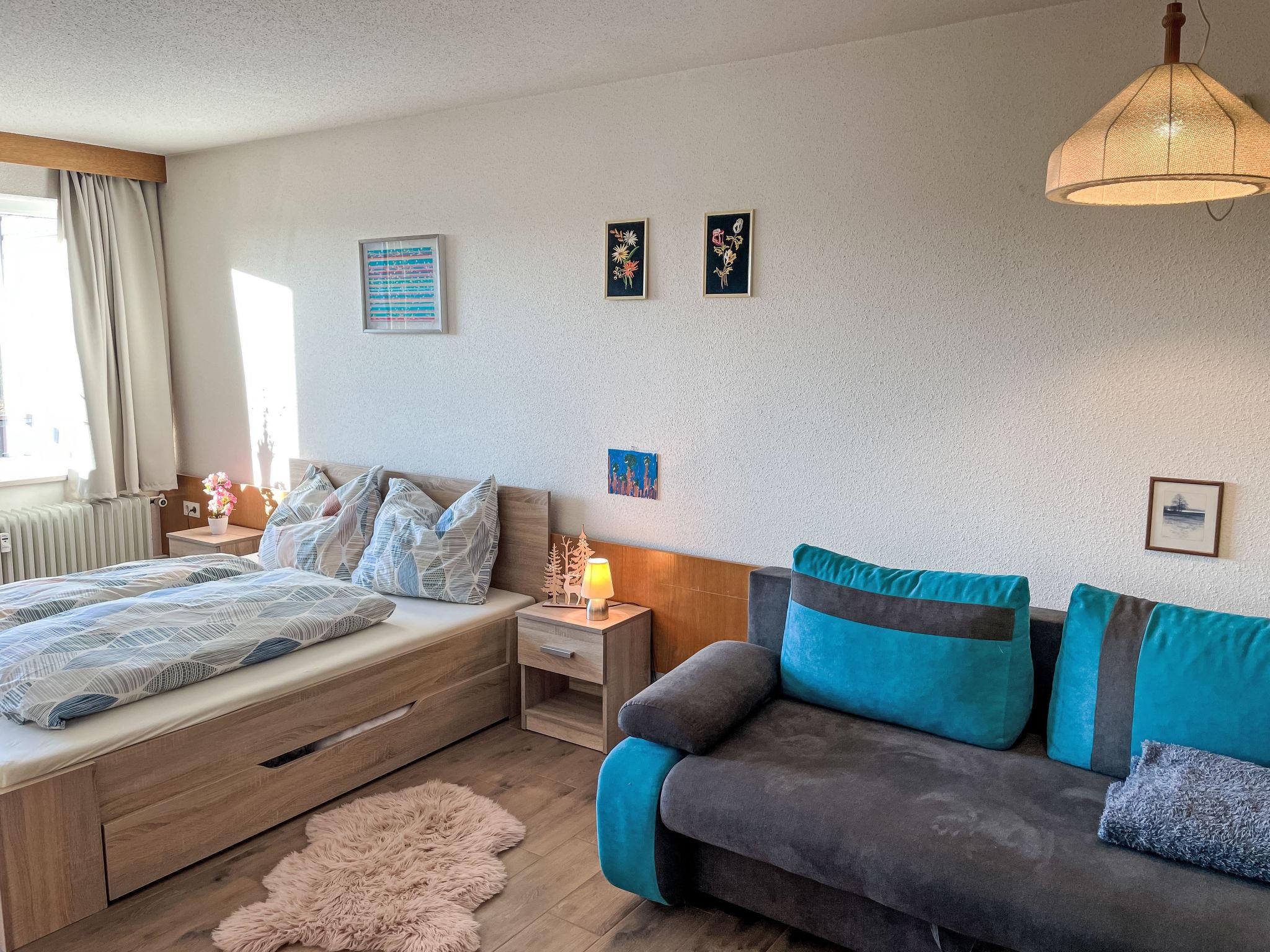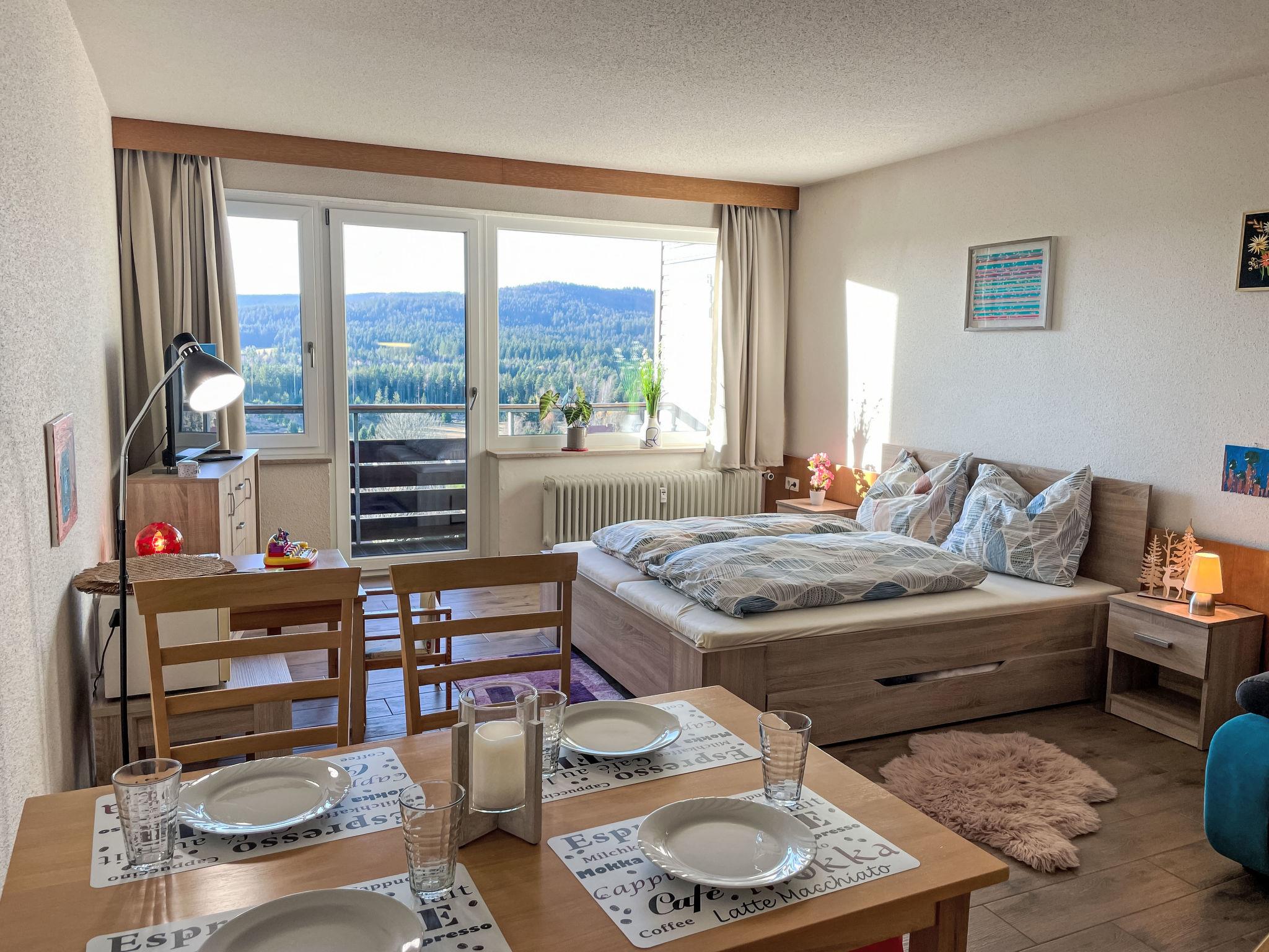 1-room apartment 40 m2 on 4th floor, west facing position. Renovated in 2016, practical furnishings: living/sleeping room with 1 sofabed (160 cm, length 200 cm), 1 double bed (180 cm, length 200 cm), TV and flat screen. Exit to the balcony. Small kitchen (2 hot plates, microwave, electric coffee machine, Capsules for coffee machine (Dolce Gusto) extra) with dining table. Shower/WC. Heating. Small balcony. Balcony furniture. Distant view. Facilities: Internet (WiFi, free). Please note: fridge without freezer, non-smokers only. Smoke alarm.