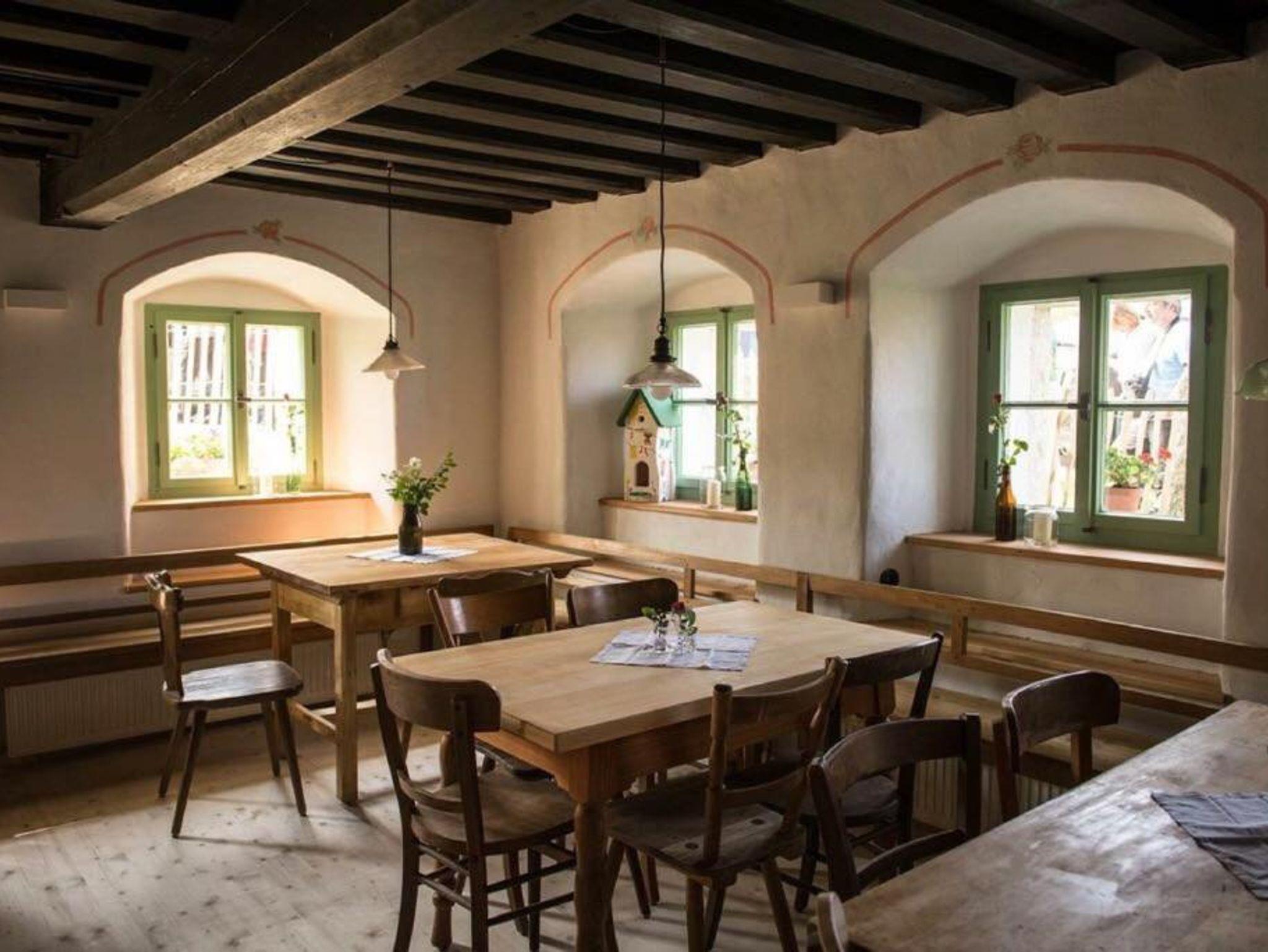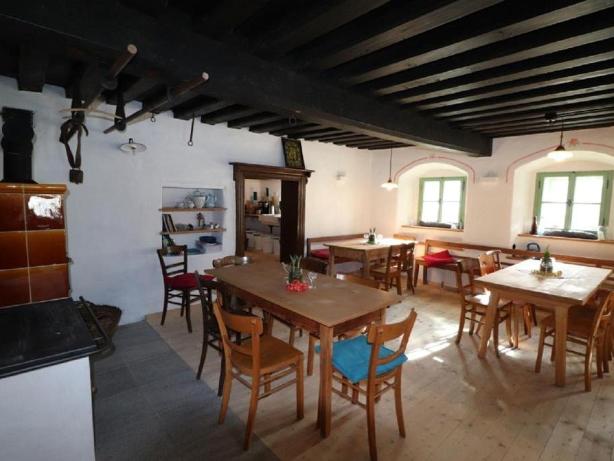 „Stube“: 6 Tische, Stühle, Wirtshausbänke (bis 40 Personen), Küchenbuffet, Sesselofen