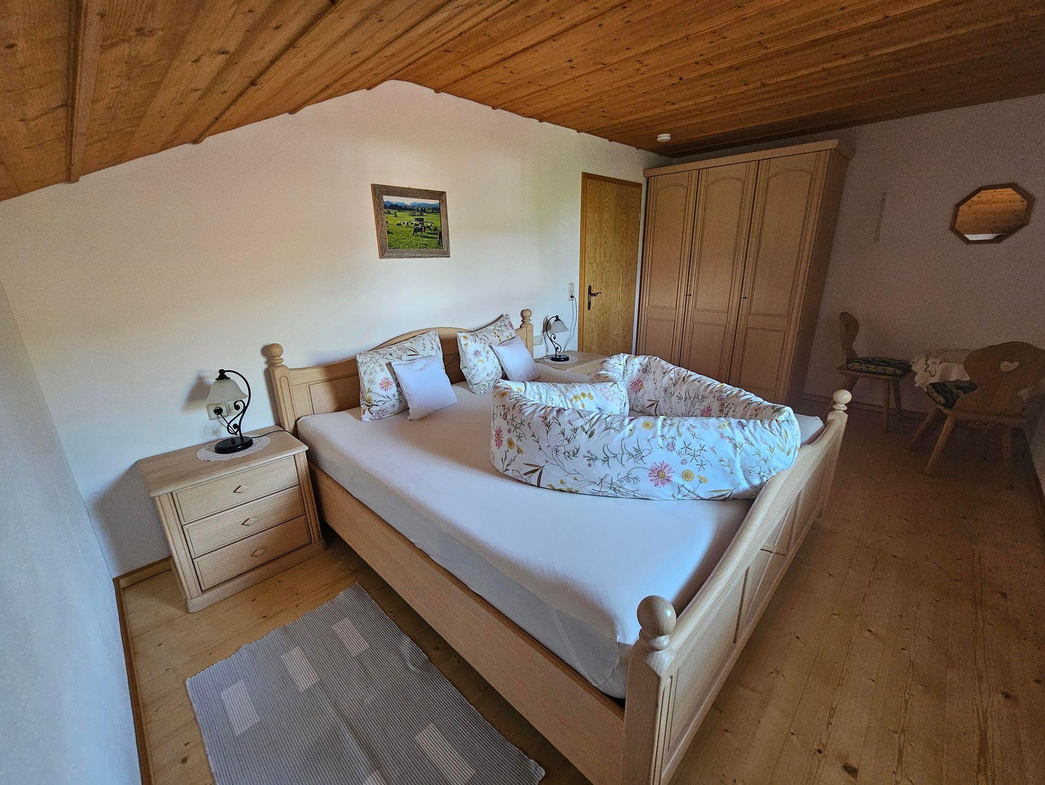 Unser Bauernhof liegt ruhig mit Panoramablick auf die Alpenkette. Die Ferienwohnung befindet sich im Nebenhaus im OG mit Balkon und lädt Sie ganzjährig zu einem erlebnisreichen Urlaub ein. Der Ortsteil Ostern nahe dem Illasbergsee ist einer der vielen idyllisch gelegenen Weiler der Gemeinde Halblech. Traumhafte Südhanglage und herrlichen Blick auf die Alpenkette. Erholen und entspannen Sie sich bei Fahrradtouren, Wanderungen und Natur pur. Ab Haus gibt es viele Möglichkeiten zum Radeln und Wandern. Sei es ein Spaziergang oder eine Klettertour, es ist für jeden etwas dabei. Sie erwartet ein für die Region typischer Allgäuer Bauernhof. Der landwirtschaftliche Familienbetrieb bewirtschaftet einen Grünlandbetrieb mit Milchviehhaltung. Wir freuen uns auf Ihren Urlaub bei uns.