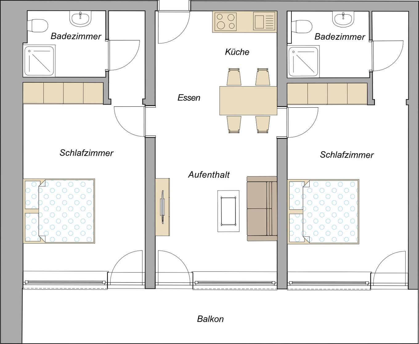 Dieses exklusive Apartment ist in zwei gemütliche Schlafzimmer mit jeweils eigenem Bad aufgeteilt, sodass Sie und Ihre Mitreisenden viel Privatsphäre und Komfort genießen können. Die Badezimmer sind neu und modern gestaltet und bieten alles, was Sie für Ihren Aufenthalt benötigen. Der große Wohn- und Essbereich lädt zum Verweilen ein. Hier finden Sie eine neue, voll ausgestattete Küche, die das Kochen zum Vergnügen macht, sowie einen gemütlichen Sitzbereich, in dem Sie entspannte Stunden verbringen können. Große Fenster lassen viel Tageslicht herein und bieten einen herrlichen Blick auf die umliegenden Allgäuer Berge. Der Balkon mit Südausrichtung ist der perfekte Ort für gemütliche Stunden im Freien. Genießen Sie hier den Blick auf die malerische Natur bei einer Tasse Kaffee am Morgen oder einem guten bayerischen Bier am Abend.