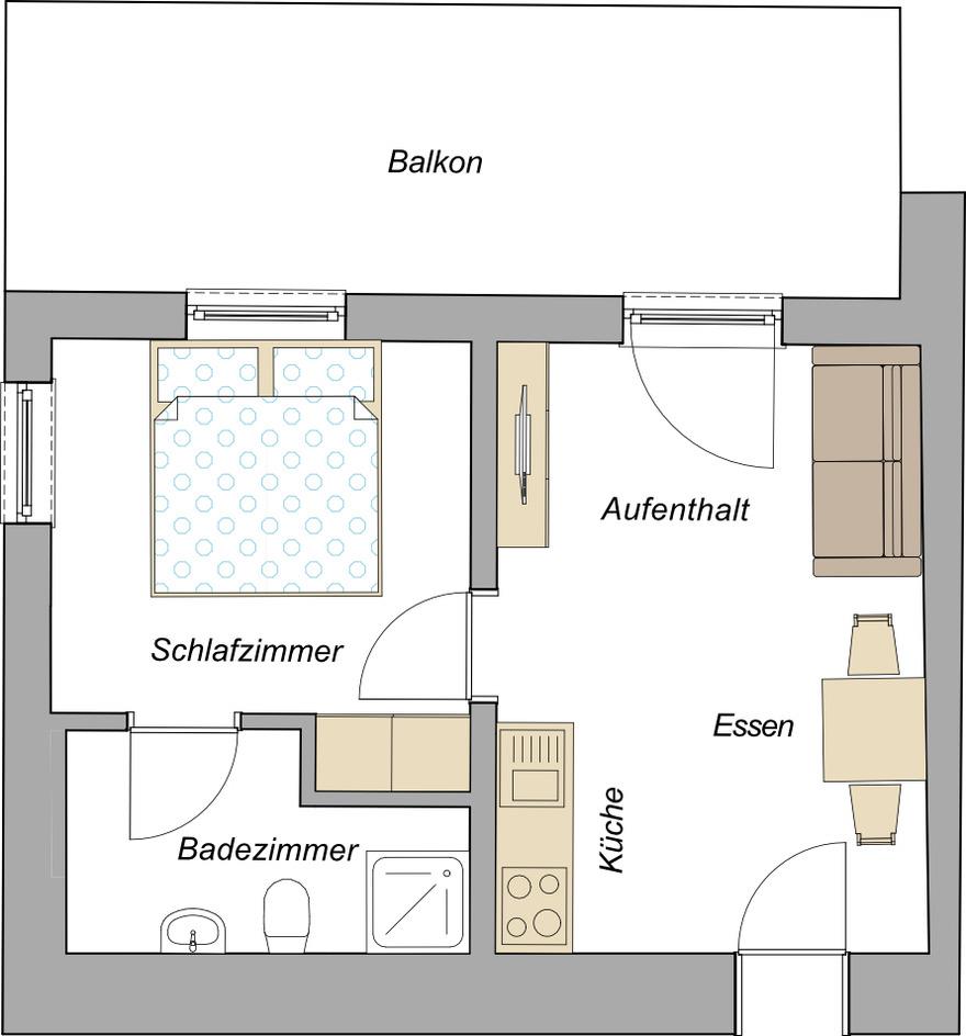 Dieses charmante Apartment mit Balkon bietet Ihnen alles, was Sie für einen unvergesslichen Aufenthalt in unserem schönen Allgäu benötigen. Das Apartment ist in einen komfortablen Schlafbereich mit Doppelbett und direktem Zugang zum Badezimmer aufgeteilt. Das Schlafzimmer lädt zum Erholen ein und sorgt für erholsamen Schlaf nach einem Tag voller Entdeckungen. Das frisch renovierte Bad ist stilvoll gestaltet und bietet alles, was Sie für Ihren Komfort brauchen. Der offene Wohn- und Essbereich ist hell und einladend, mit einer neuen vollwertigen Küche, die das kochen zum Vergnügen macht. Hier können Sie entspannen, gemeinsam essen oder einfach die Ruhe genießen. Der große Balkon lädt dazu ein den Morgen mit einem tollen Frühstück zu starten oder den Abend gemütlich ausklingen zu lassen.
