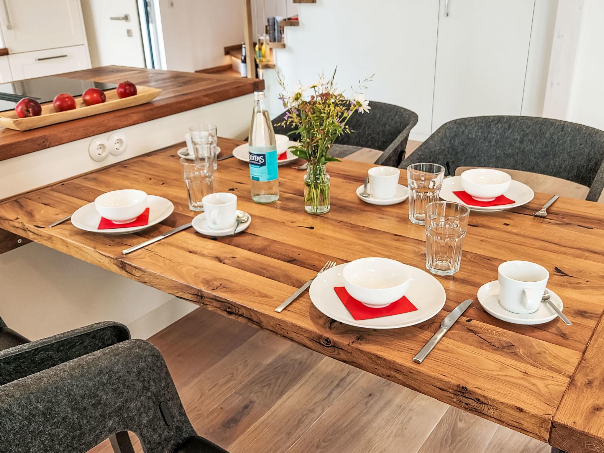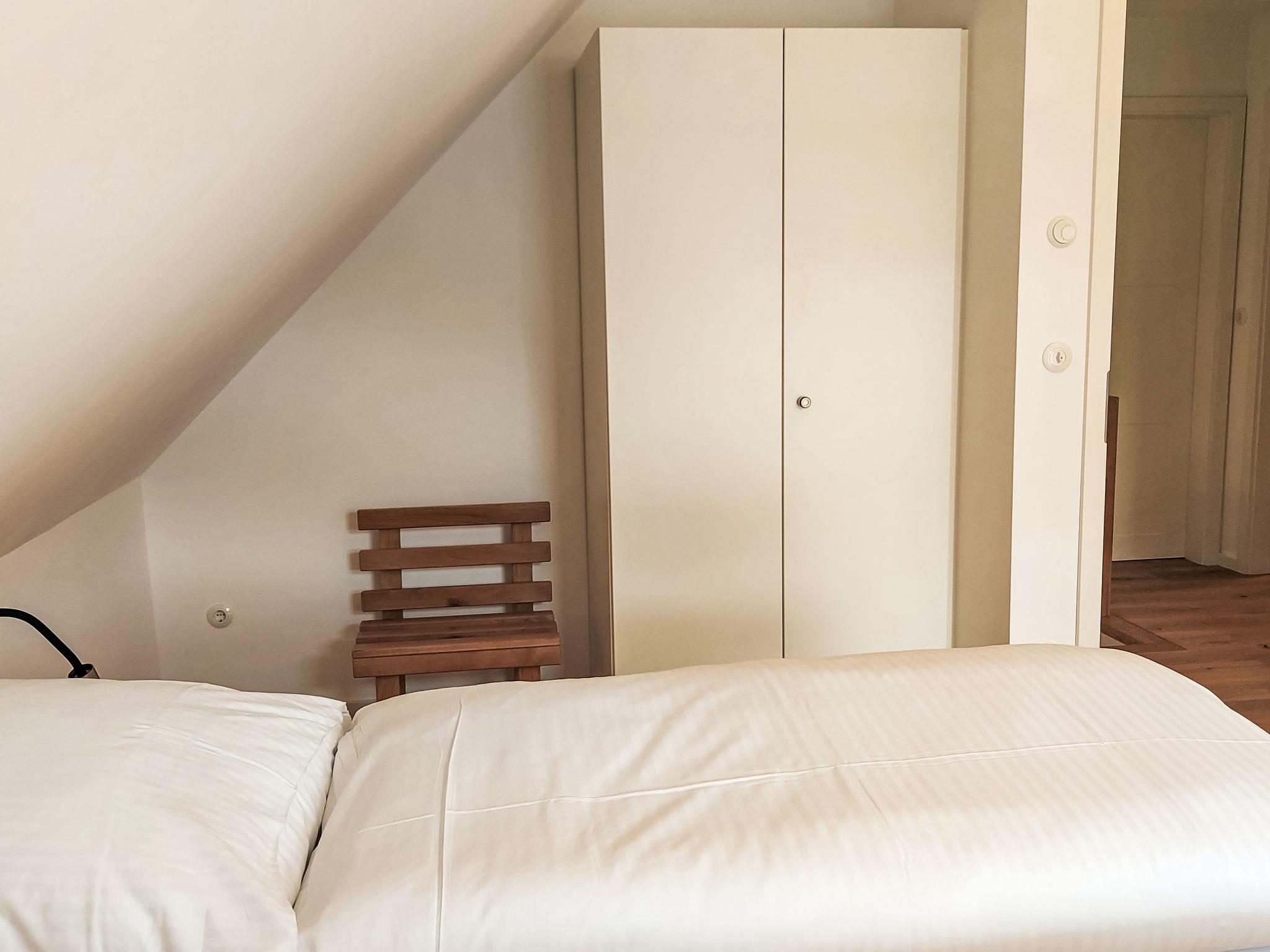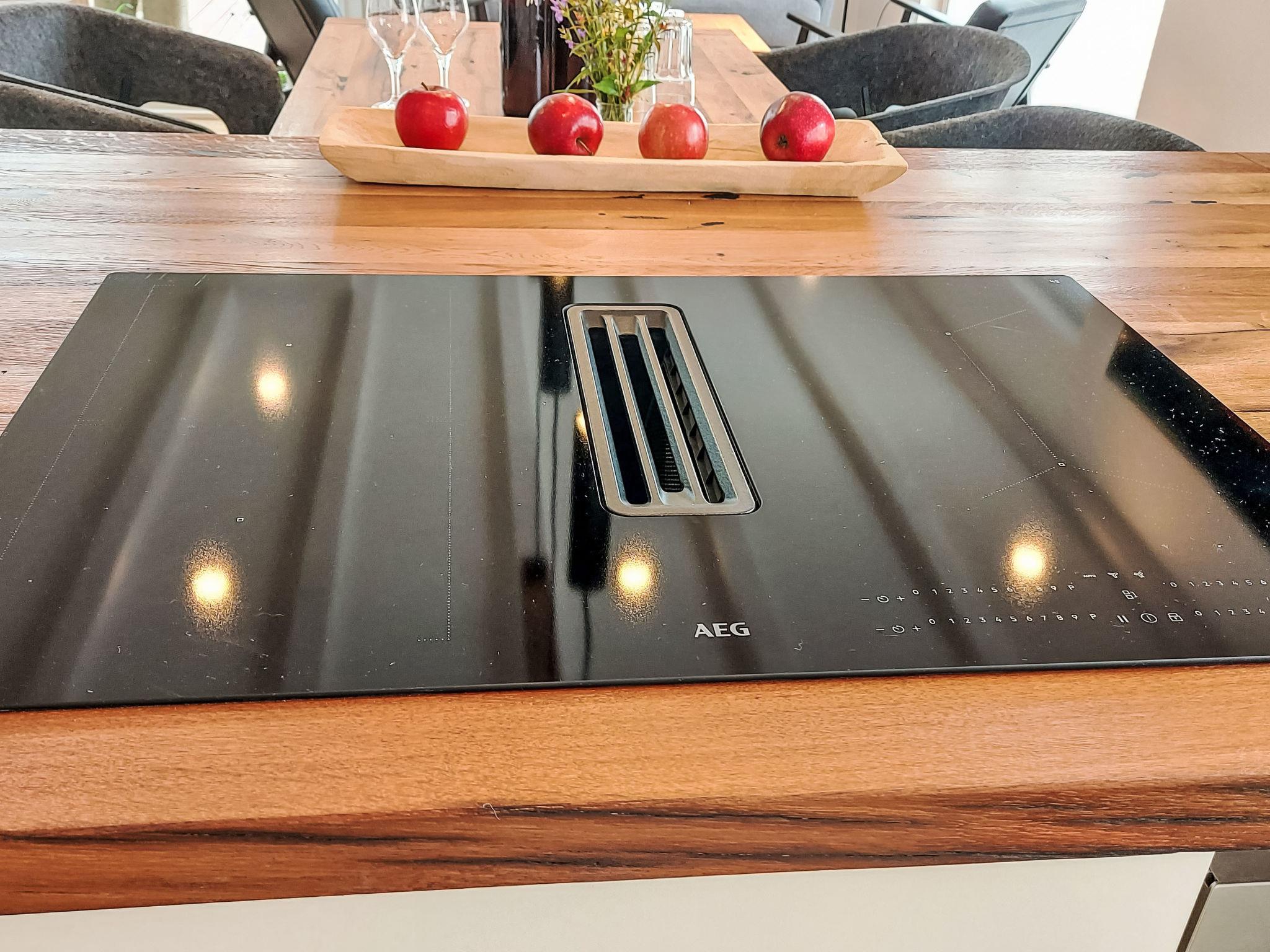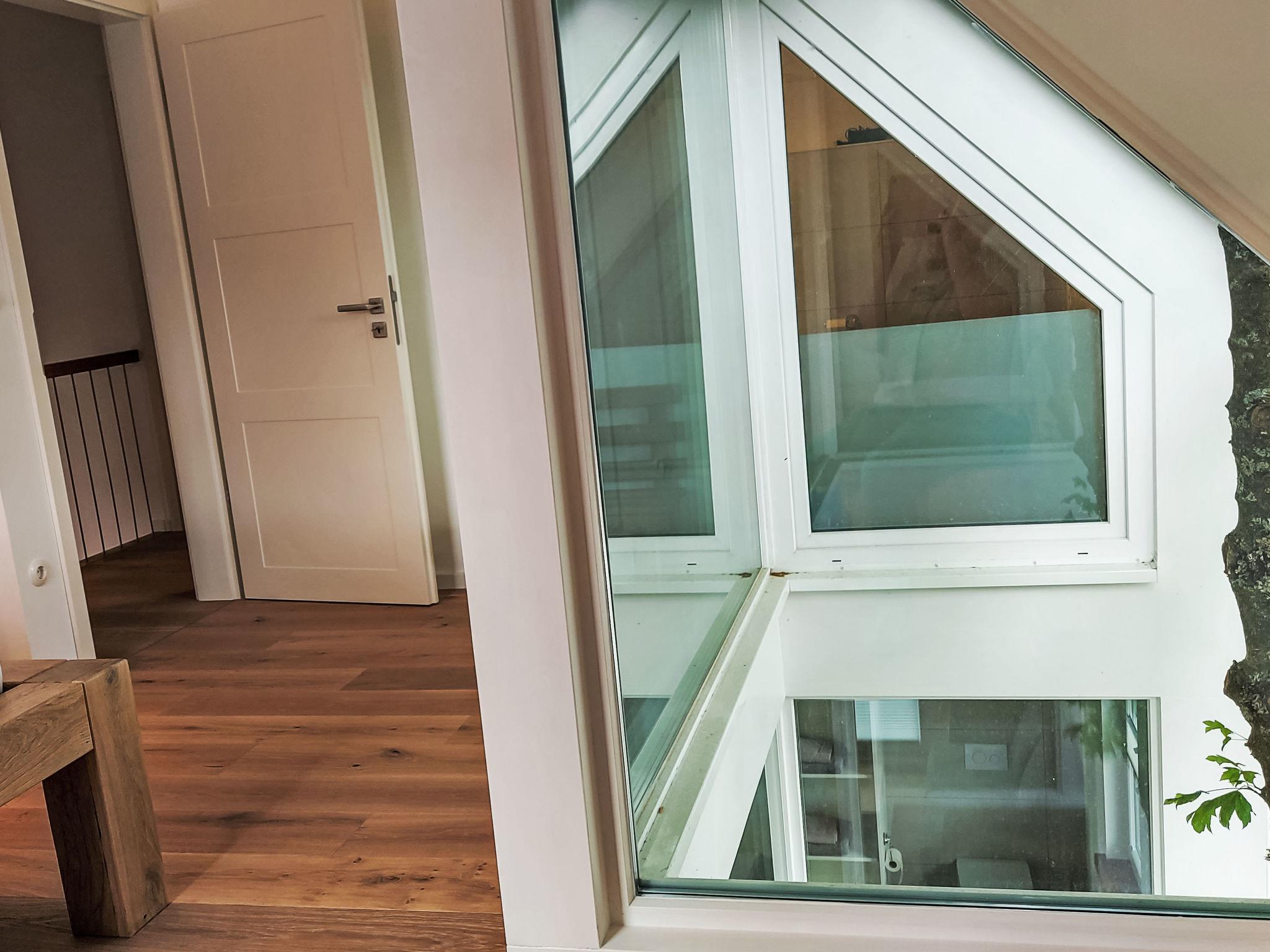 3-room house on 2 levels. Spacious and bright, very modern and tasteful furnishings: living/dining room with satellite TV (flat screen). Exit to the terrace. Open kitchen (dishwasher, 4 ceramic glass hob hotplates, toaster, kettle, microwave, freezer). Shower/WC, Sauna. Upper floor: 1 room with 1 double bed and satellite TV (flat screen). 1 room with 1 double bed. Shower/WC. Electric heating. Wooden floors. Terrace 20 m2. Terrace furniture, barbecue. Facilities: children's high chair, baby cot, hair dryer. Internet (WiFi, free). Parking at the house. Please note: non-smoking house. Smoke alarm, fire extinguisher. A special feature of the house is that it was built around a 60-year-old maple tree.