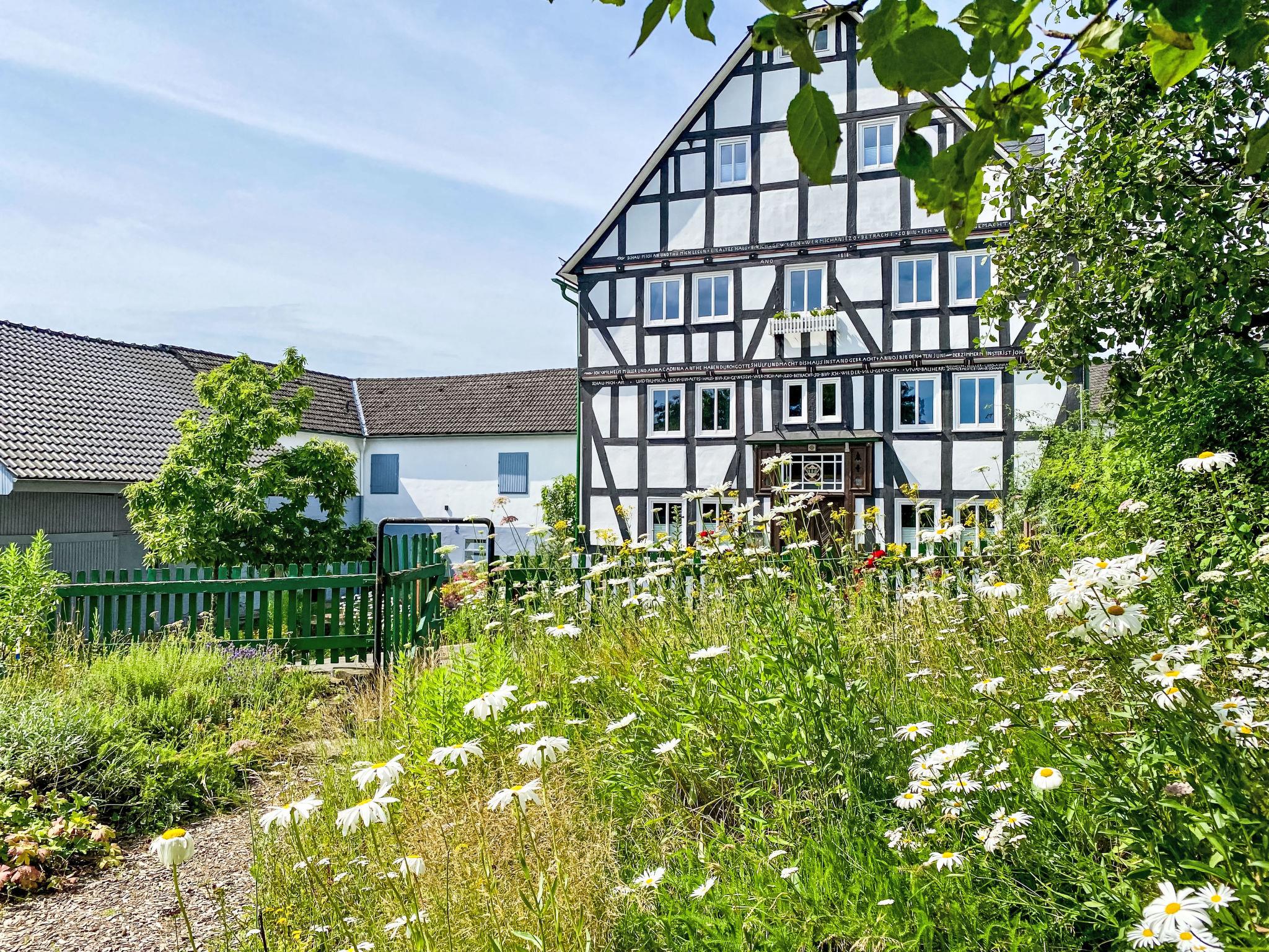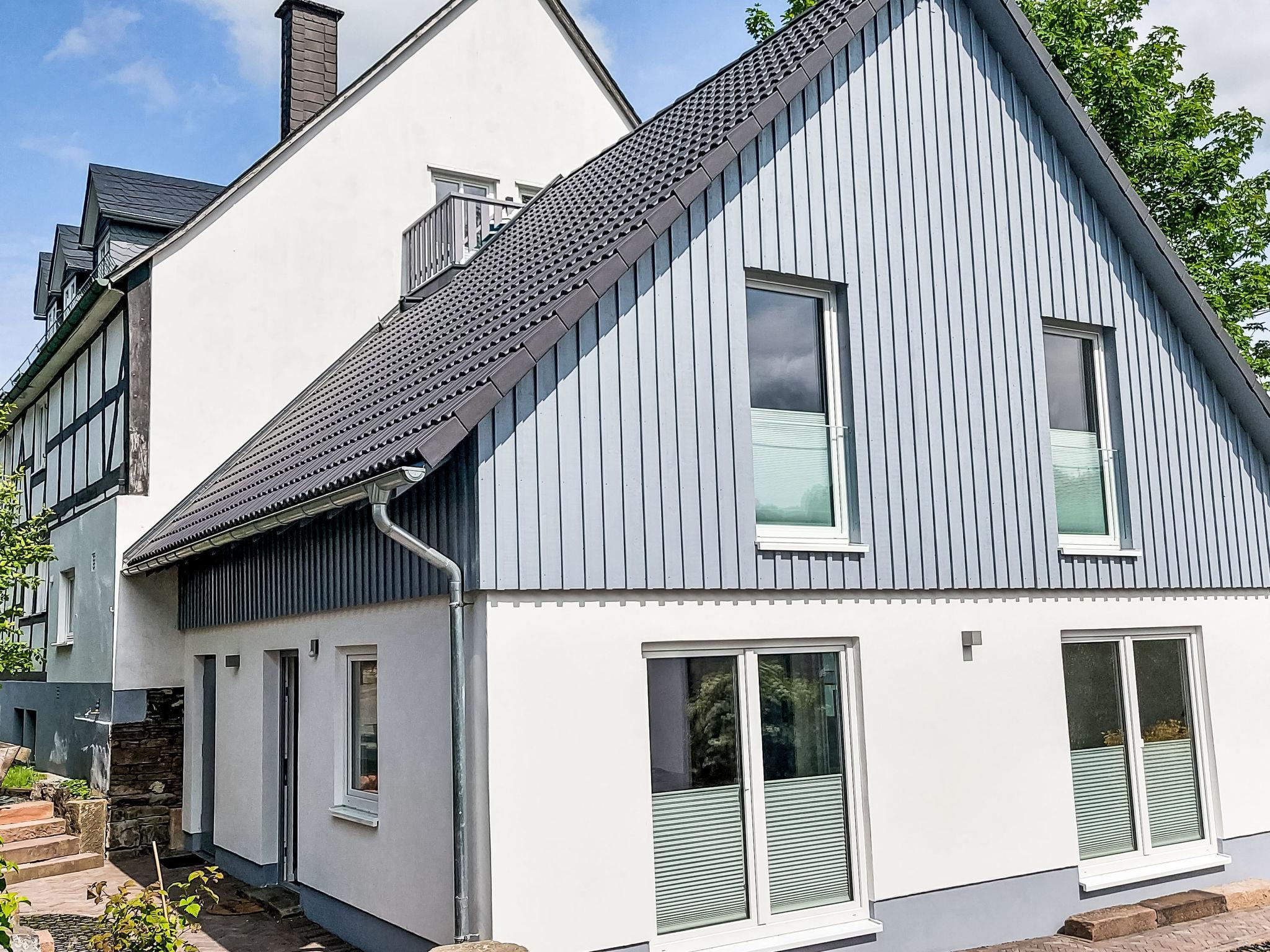 Modern, beautiful single-family house "Waldkauz", built in 2024. In the centre, in a quiet, sunny position. In the house: storage room for bicycles, storage room for skis. Breakfast on request (extra). Supermarket 350 m, restaurant 150 m, bus stop 100 m, railway station "Frankenberg" 15 km, outdoor swimming pool 1.3 km, indoor swimming pool 700 m. Golf course (9 hole) 12 km, sled run 11 km, cross country ski track 6 km. Well-known ski regions can easily be reached: Winterberg 12 km. The house is part of a 400-year-old, listed building, a farmer's house. It also houses a bed and breakfast and a small brewery that offers brewing courses and tours.
