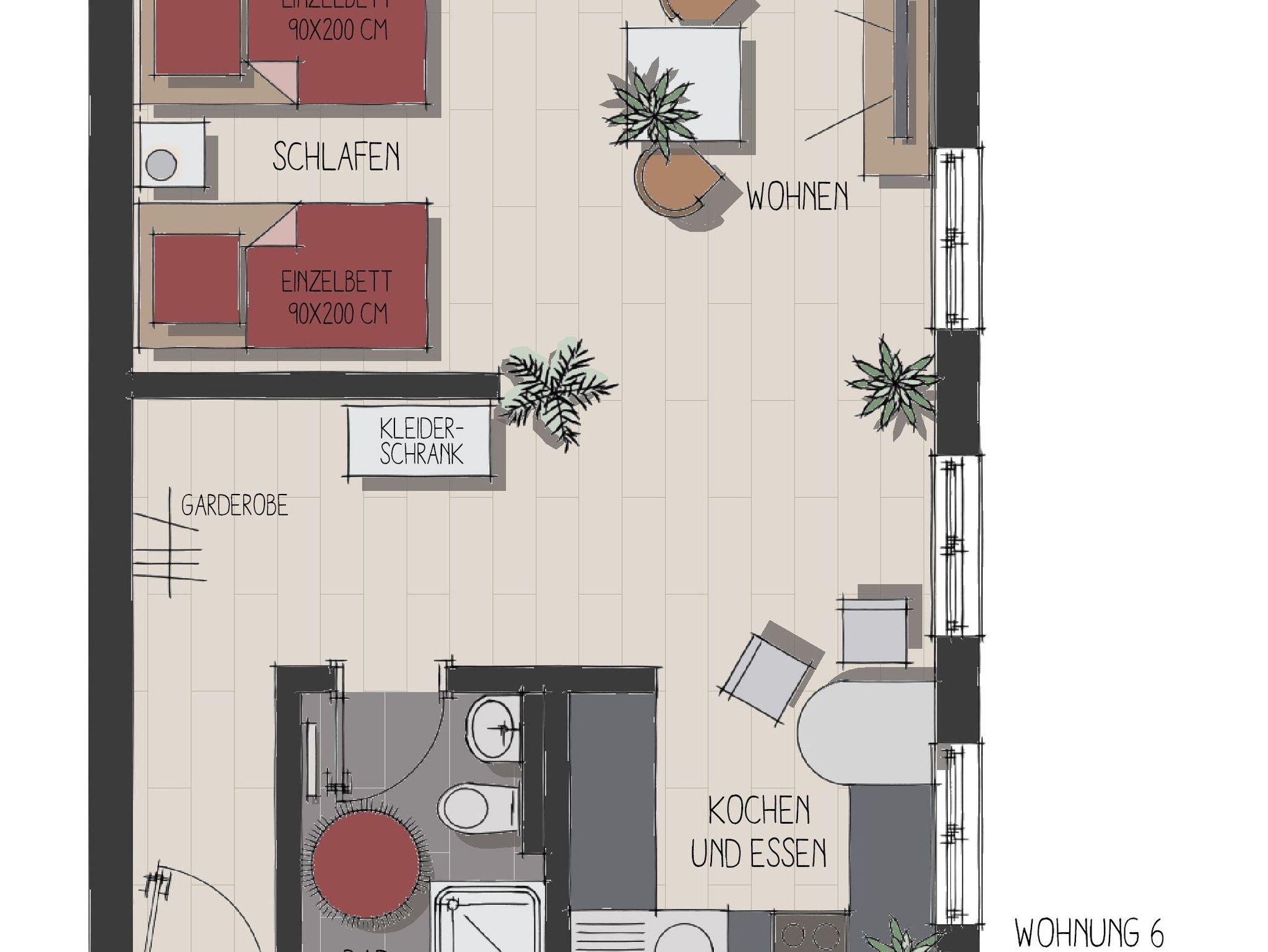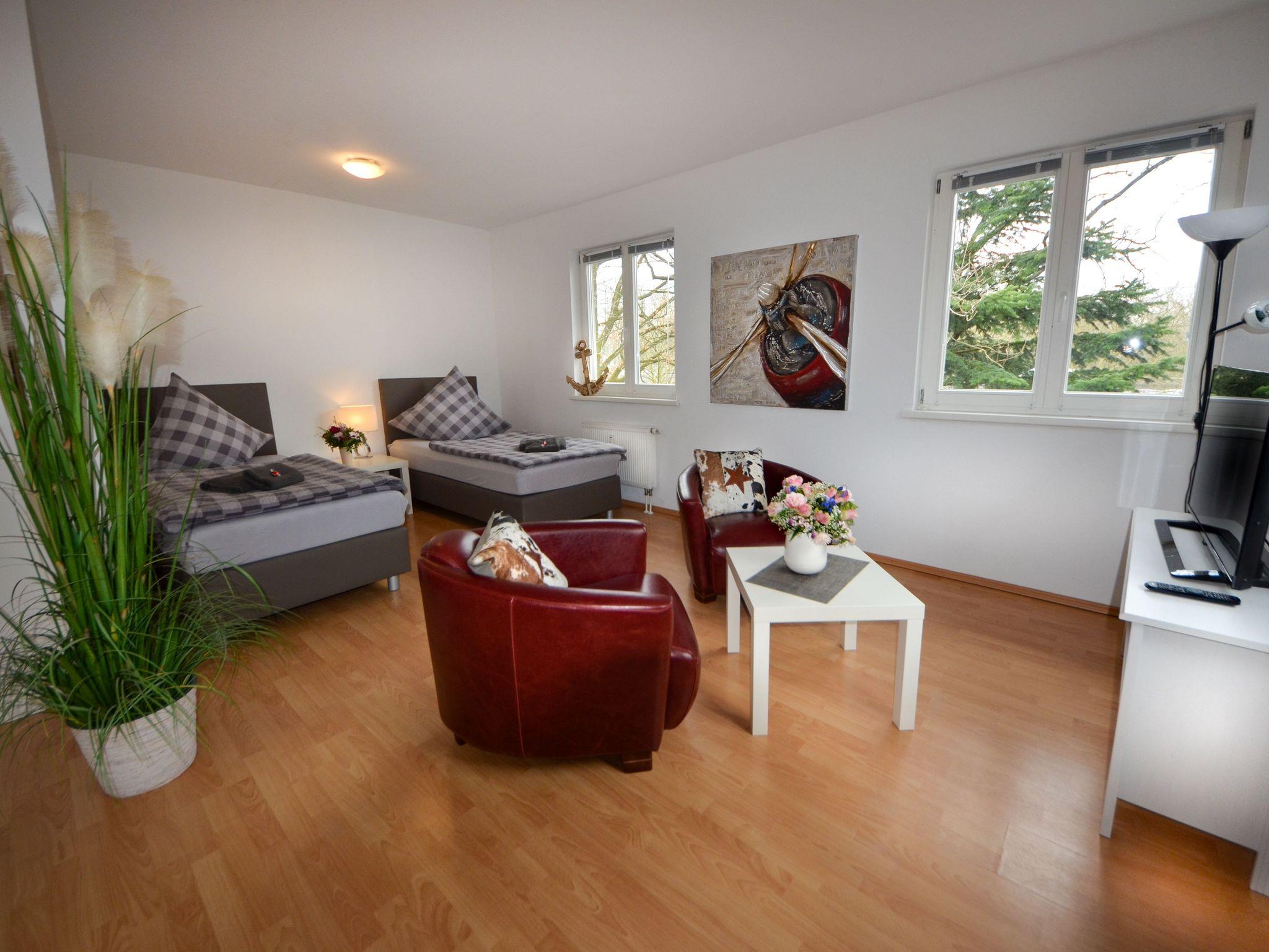 Die neu sanierte 1-Zimmer-Ferienwohnung befindet sich im 2. Obergeschoss des Ferienhauses Marienthal. Bis zu zwei Personen können hier Urlaub machen und schlafen. Der Wohn- und Schlafbereich mit zwei Einzelbetten ausgestattet. Ein großes Duschbad und eine Wohnküche mit allem, was man auch im Urlaub nicht vermissen möchte, passen sich perfekt ins hochwertige gemütliche Wohnensemble ein. Kostenfreie Parkplätze und W-LAN sind selbstverständlich für uns.