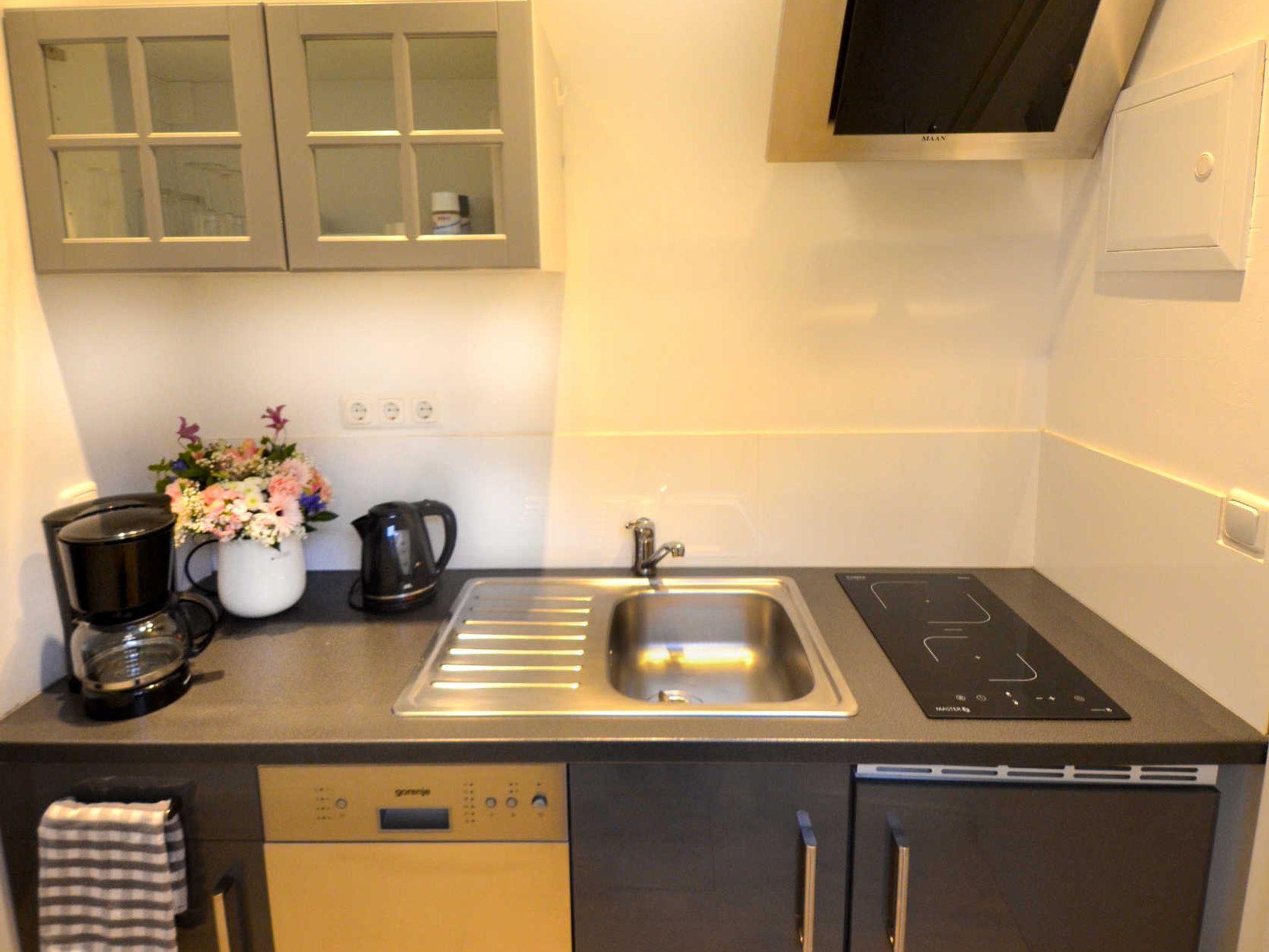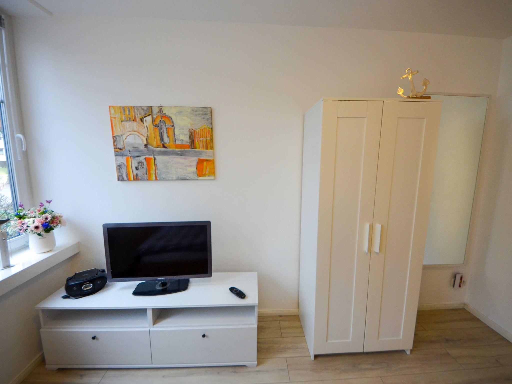 Unser 1-Zimmer-Appartment W1 in Hamburg Horn verfügt über alle Annehmlichkeiten, die einen im Urlaub nichts vermissen lassen. Ein schönes Duschbad aus Granit und eine Einbauküche mit Geschirrspüler fügen sich perfekt ein in die gemütliche Wohnlandschaft, die schlicht Ton in Ton eingerichtet ist. Gemütlich lädt ein Esstisch mit Cocktailsesseln für zwei Personen zum Verweilen ein – alles in nordisch schlichter Eleganz. Die zwei Einzelbetten im Schlafbereich lassen sich zusammenschieben.