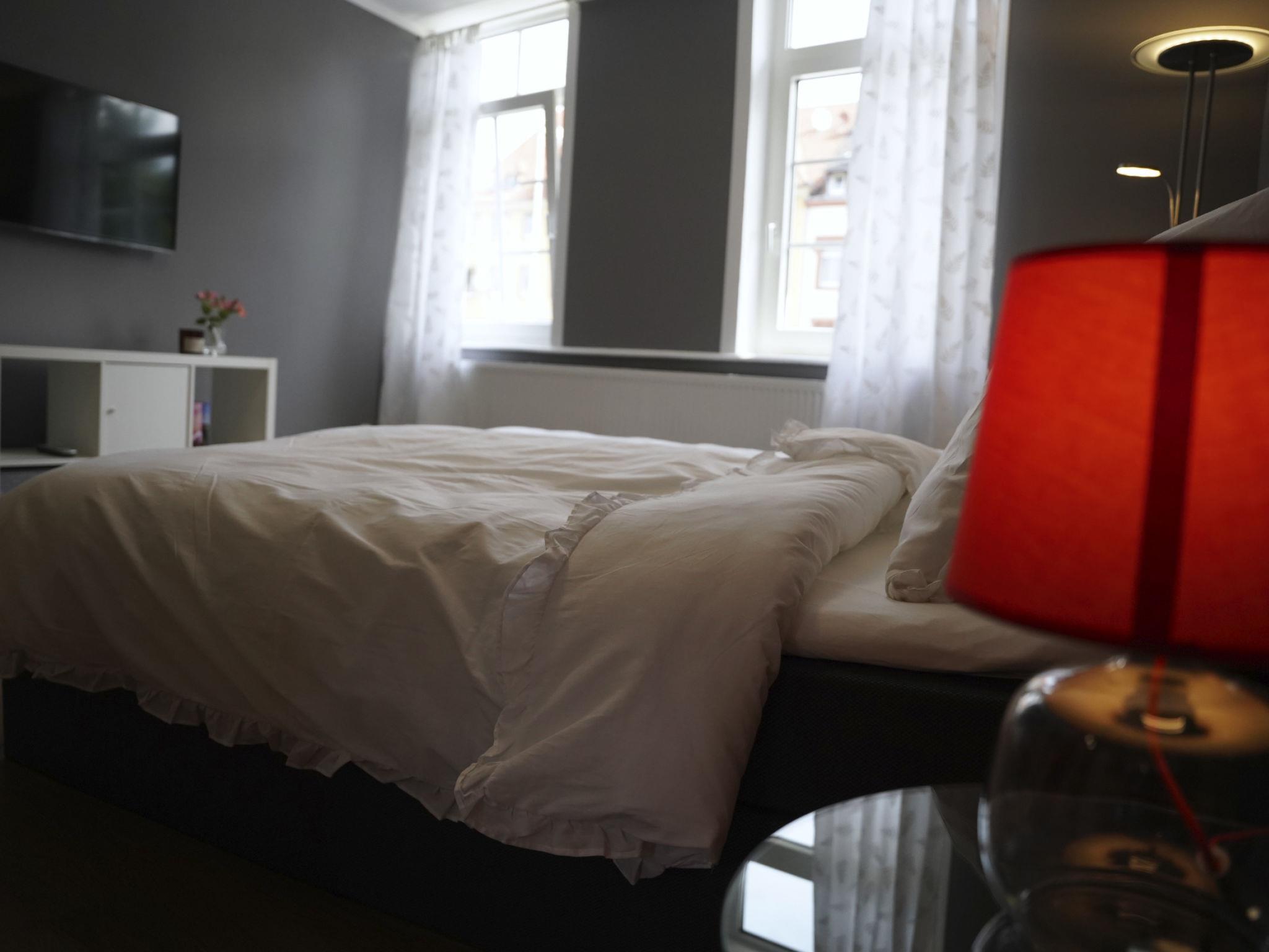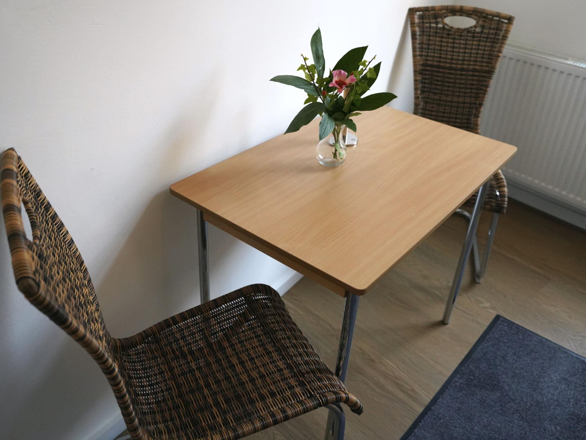 Cosy little studio flat with its own bathroom and kitchenette. The flat has a double bed (140x200) and a wardrobe for hanging up your clothes. It is furnished with a table and two chairs, as well as a TV set. The kitchen consists of a small kitchenette with dishwasher and fridge. It is equipped with crockery for two people. A kettle and a coffee machine (filter coffee). An oven and two hobs including cookware are also available. The bathroom has a shower, WC and washbasin. Here you will find towels and a hairdryer. The flat is located in the attic on the 1st floor. It is ideal for two people who want to enjoy a short holiday in Hamelin or have to work here for a short period of time.
