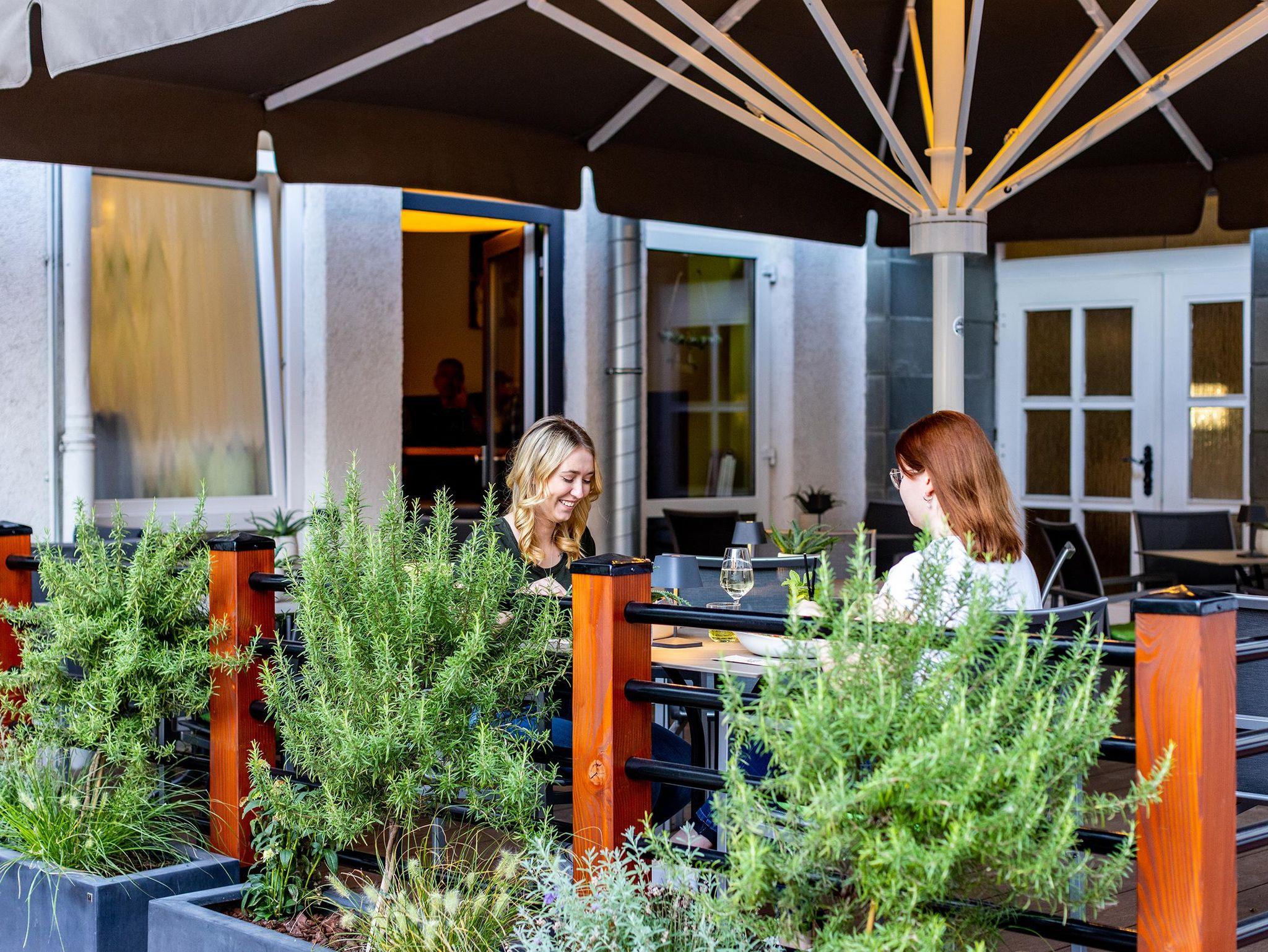 Die Lage ist gut, das Abendessen auf der Terrasse war lecker und die Wirtin abends an der Rezeption war nett und hilfsbereit, aber das Hotel bedarf einer Grundsanierung. Die Handtücher fransen schon aus und sind grau, an der Heizung im Bad blättert die Farbe ab und Rost schaut raus.