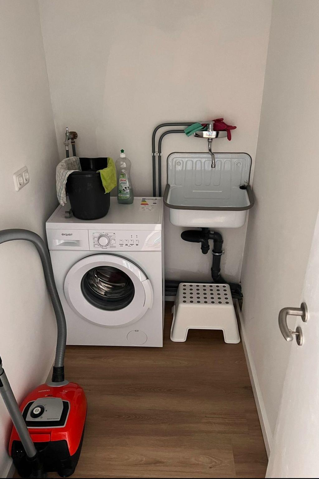 A washing machine, clothes horse, ironing board and iron are hidden away here. The seat cushions of the lounge furniture also spend the night here. There is also a suitcase car park.