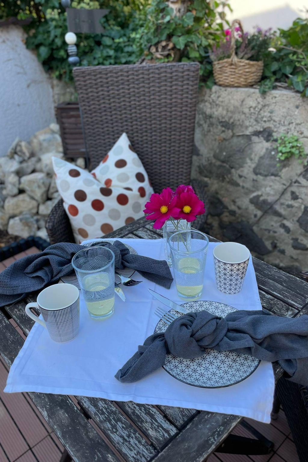 An electric cooker with four hotplates, oven, microwave and fridge-freezer are available for this purpose. A large dishwasher takes care of the washing up.