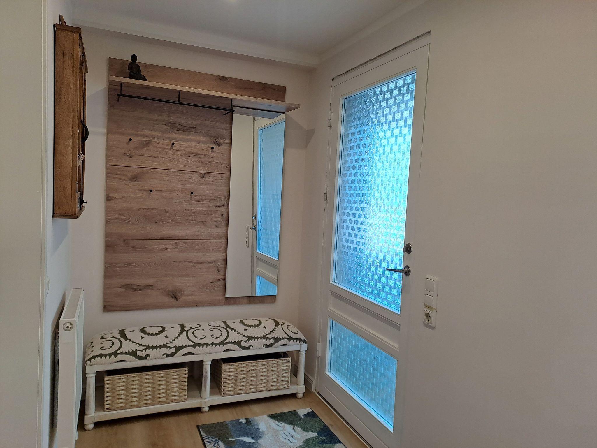 Die Vermieterin führt gleich nebenan eine Fußpflegepraxis, in der kosmetische und medizinische Fußpflegen und Massagen mit ätherischen Ölen gebucht werden können.