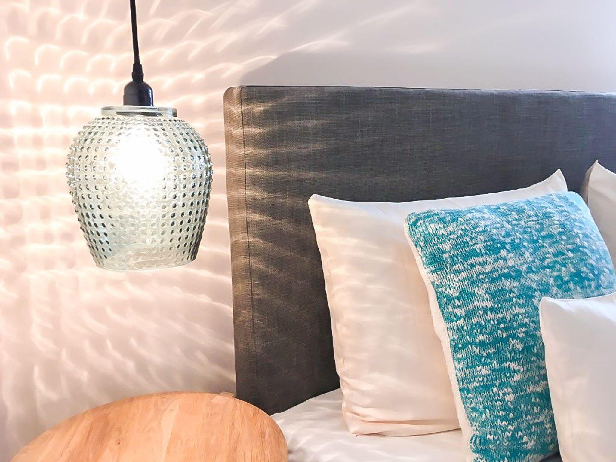 Schlafzimmer: Mit Boxspringbett (2,00m x 1,60m), Flat-TV, Schreibtisch, Sessel und Kleiderstange, Verdunkelungsvorhänge.